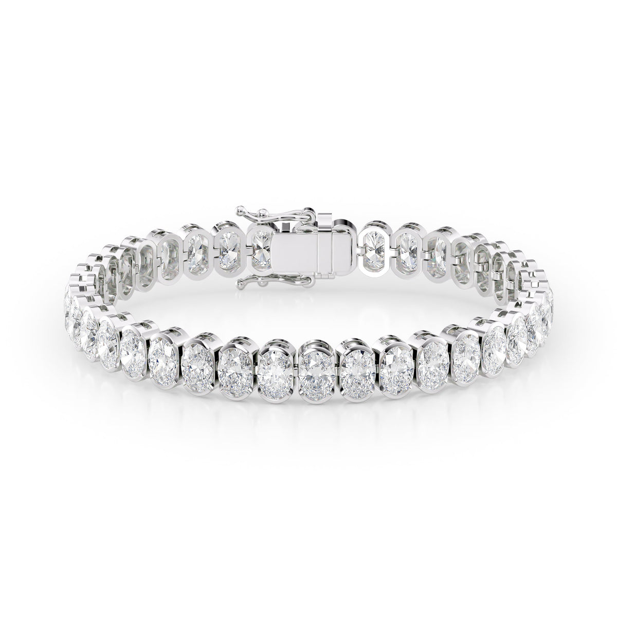 18CTW Oval Cut Diamond Half Bezel Set Moissanite Tennis Bracelet