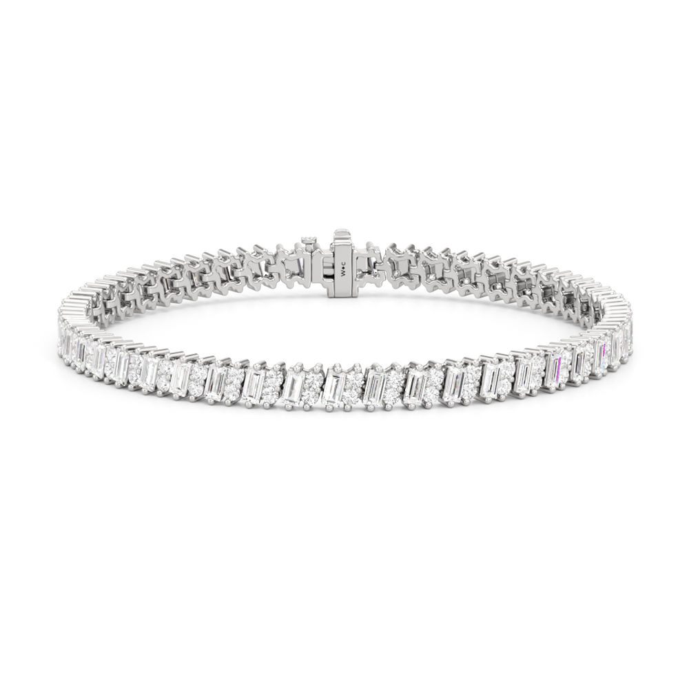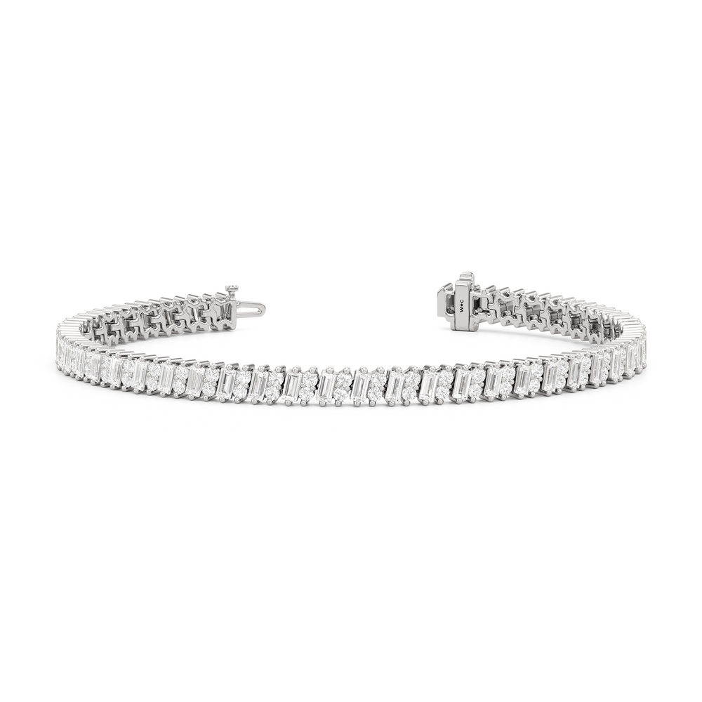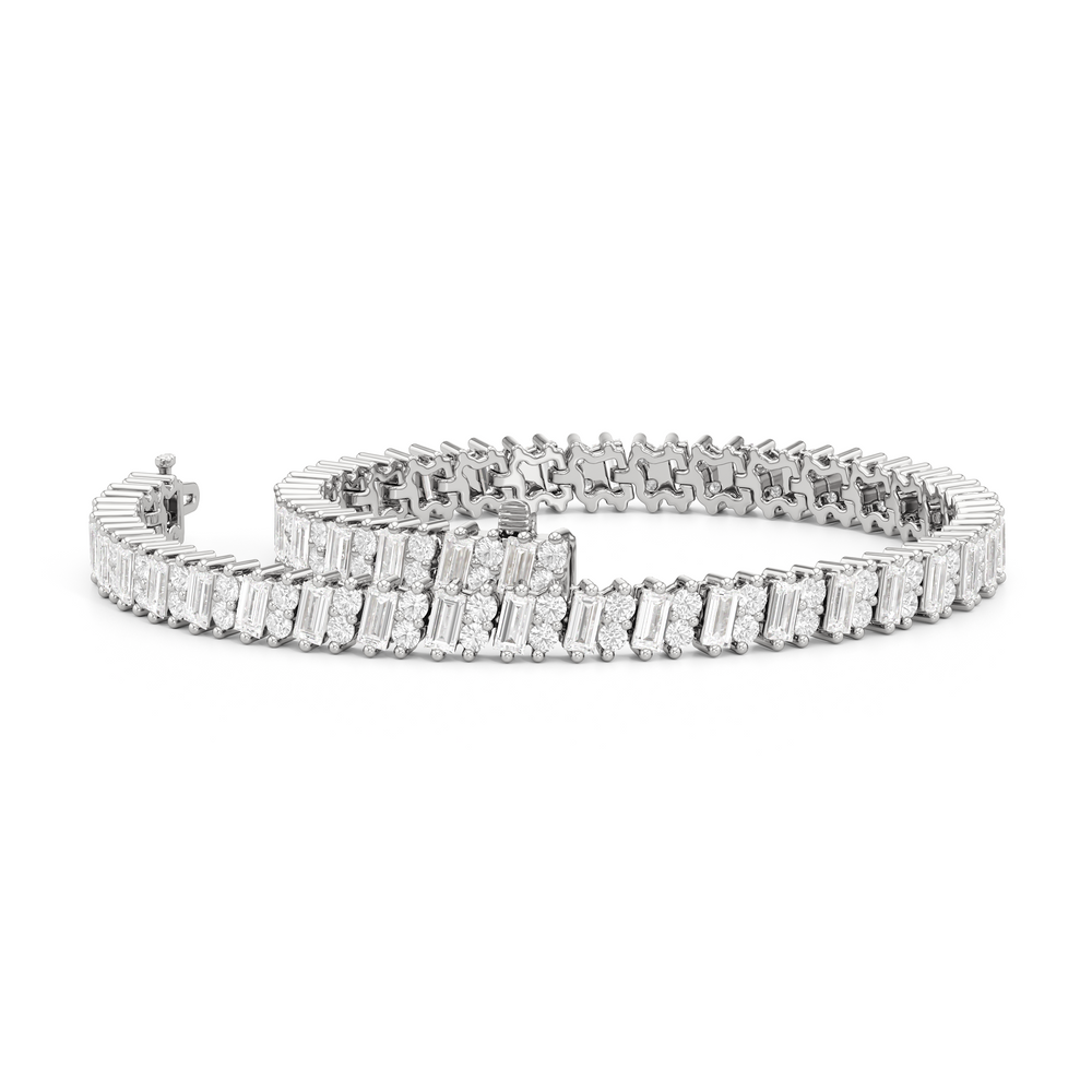 Baguette & Round Cut Diamond Moissanite Tennis Bracelet