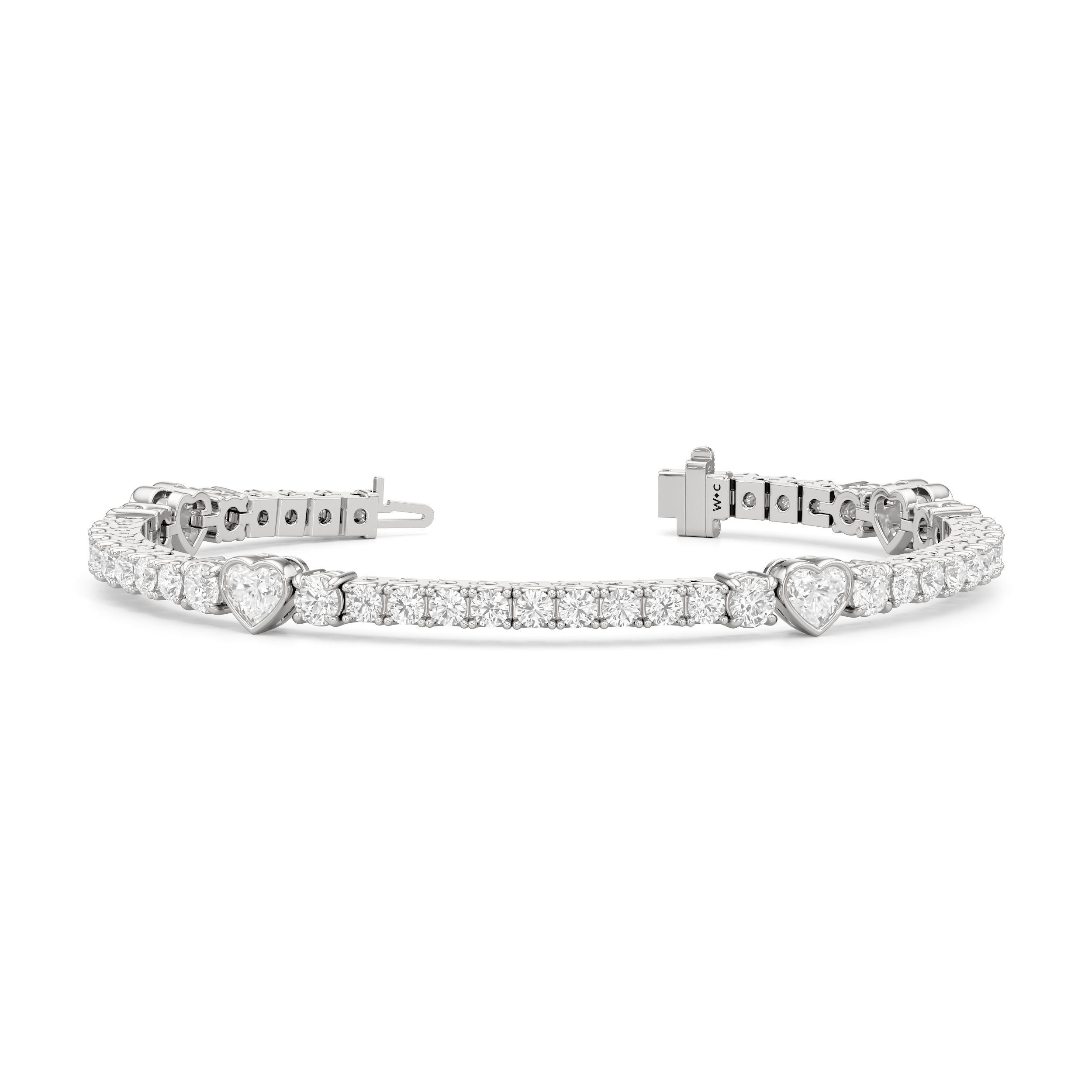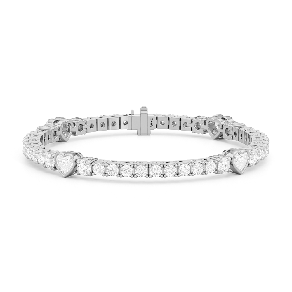 Bezel Set Heart Cut With Round Cut Diamond Tennis Wedding Bracelet