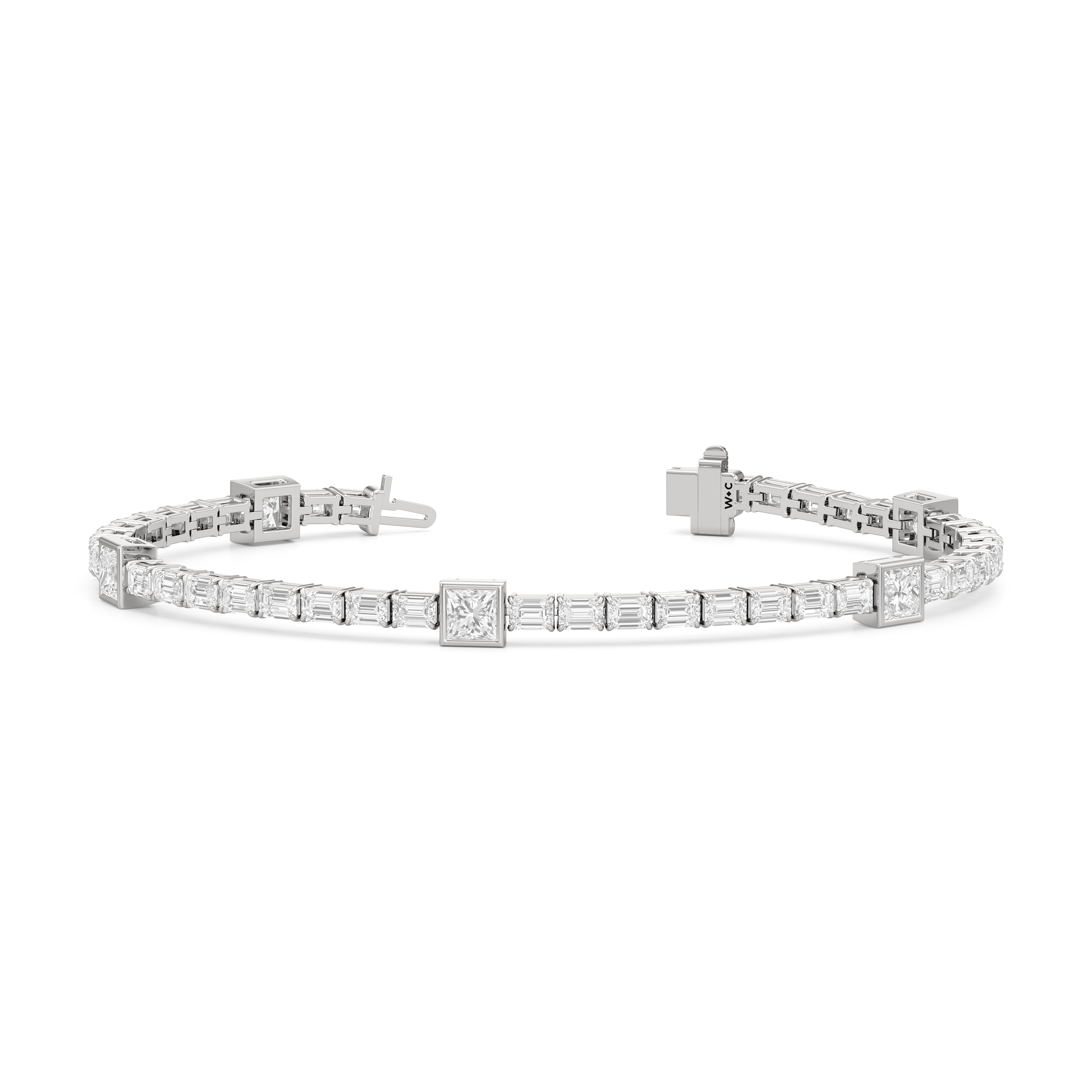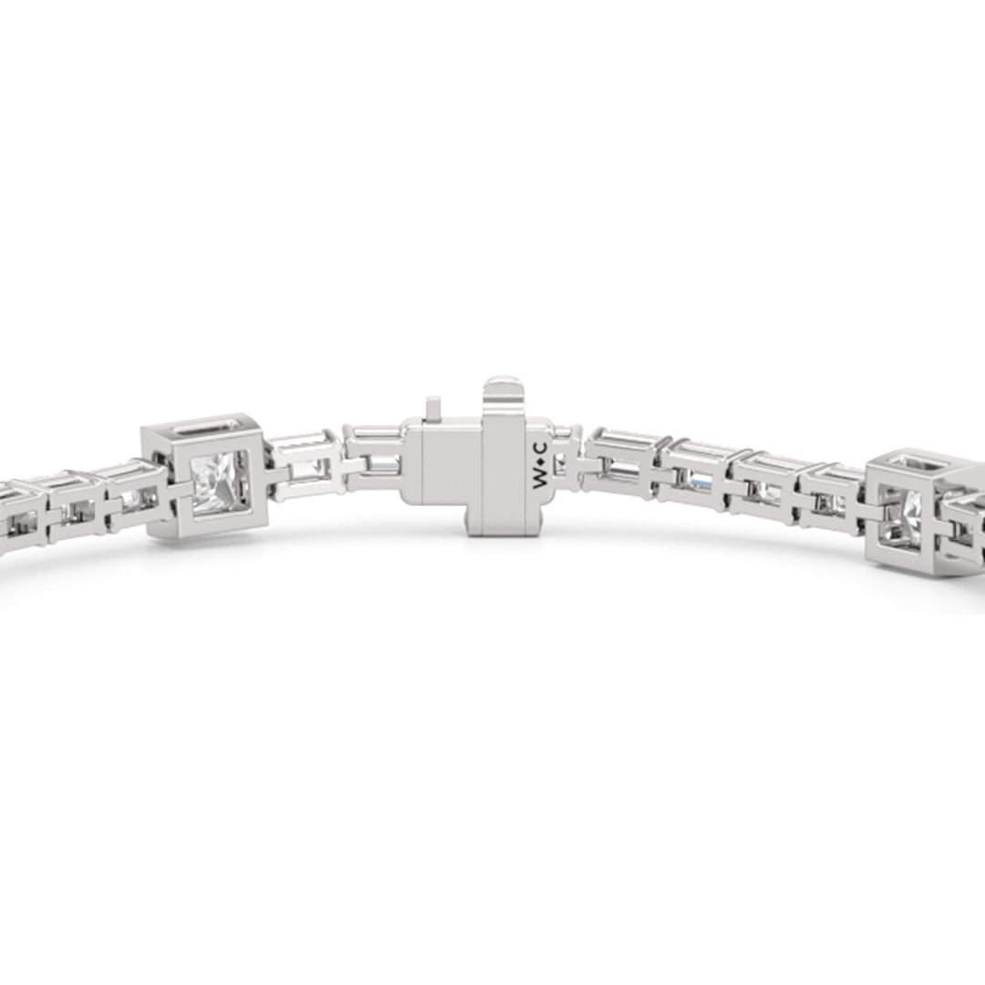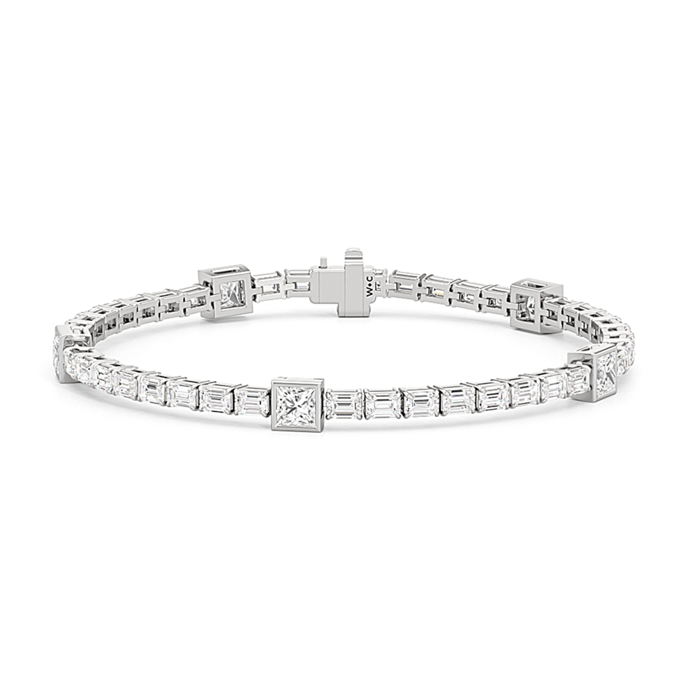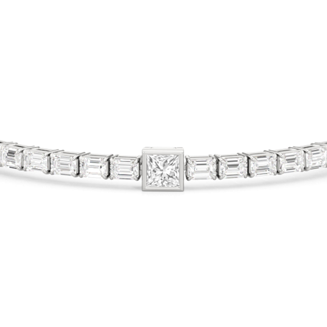 East-West Emerald Cut & Princess Cut Bezel Set Diamond Tennis Bracelet