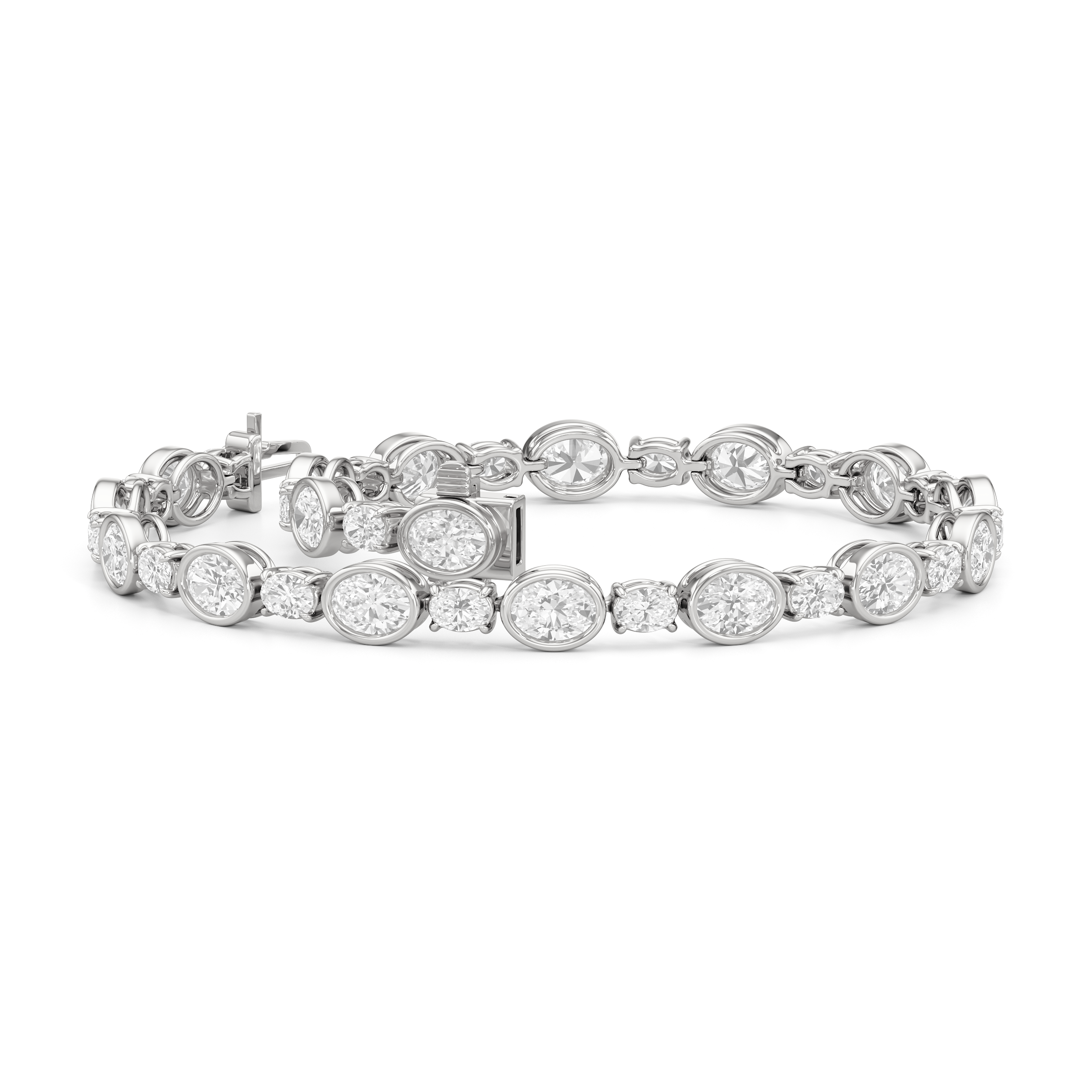 ✥The image features a refined East-West Oval Cut Bezel Setting moissanite tennis bracelet, designed to blend modern style with timeless sparkle. Each Oval Cut moissanite is set horizontally in a sleek Bezel Setting, offering a smooth, secure finish while maximizing brilliance. The east-west orientation gives this classic bracelet a fresh, contemporary twist, perfect for those who love subtle uniqueness. Ideal for both everyday luxury and formal wear, this Moissanite Tennis Bracelet adds effortless elegance to any look. With its clean lines and radiant shine, it’s a rising favorite in minimalist fine jewelry trends.