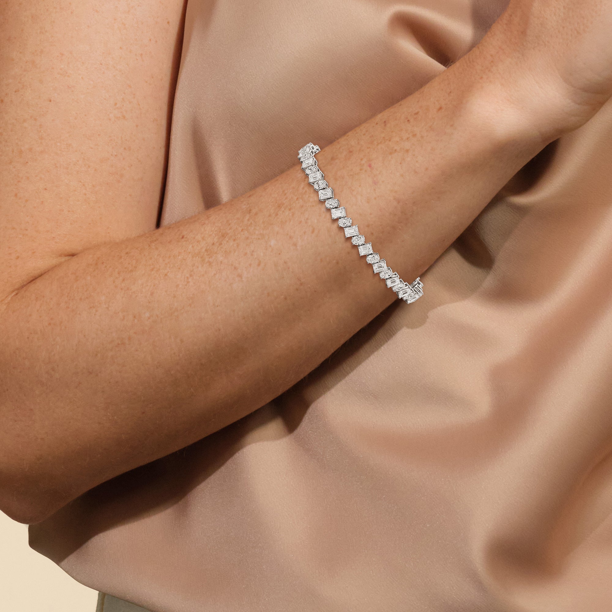 ✥The image features a stunning Emerald & Oval Cut Diamond Moissanite tennis wedding bracelet, designed to captivate with elegant contrast and radiant sparkle. Alternating sleek Emerald Cut and graceful Oval Cut stones create a dynamic interplay of geometric and soft shapes. Expertly crafted, this bracelet highlights the brilliance of both diamonds and moissanites, making it perfect for weddings or special occasions. This luxurious Moissanite Tennis Wedding Bracelet symbolizes enduring love and sophisticated style. A rising favorite, it adds timeless elegance and dazzling beauty to any jewelry collection.