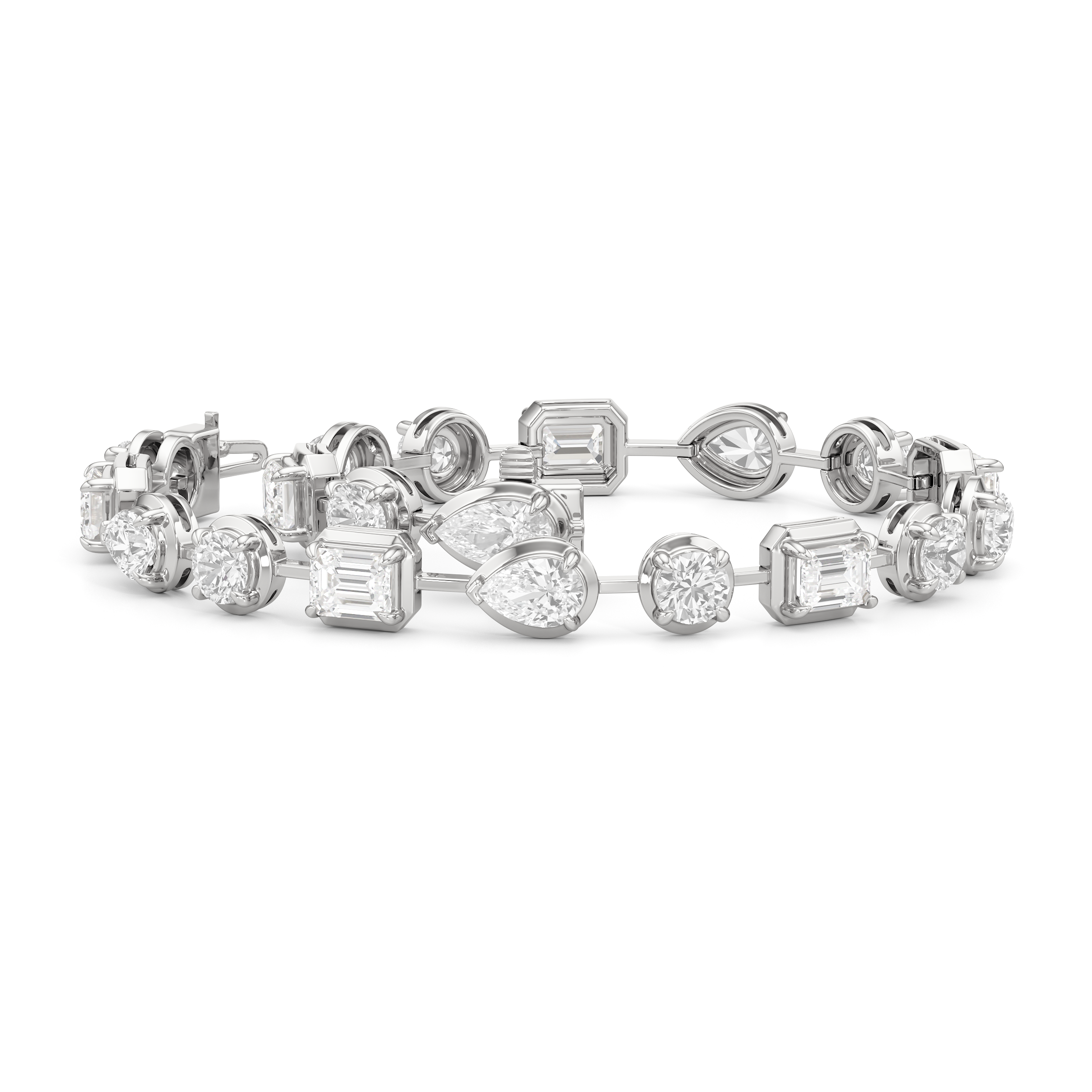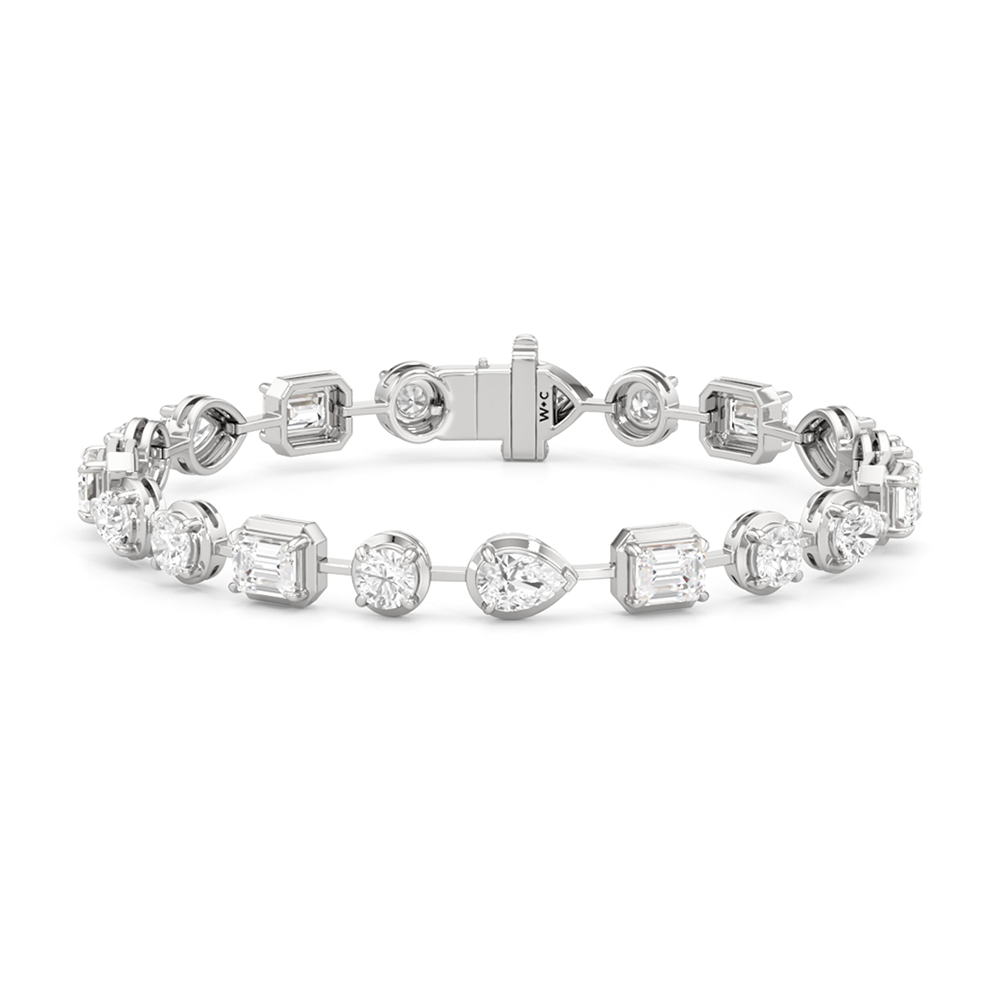 Emerald, Pear & Round Cut Unique Bezel Setting Moissanite Tennis Bracelet