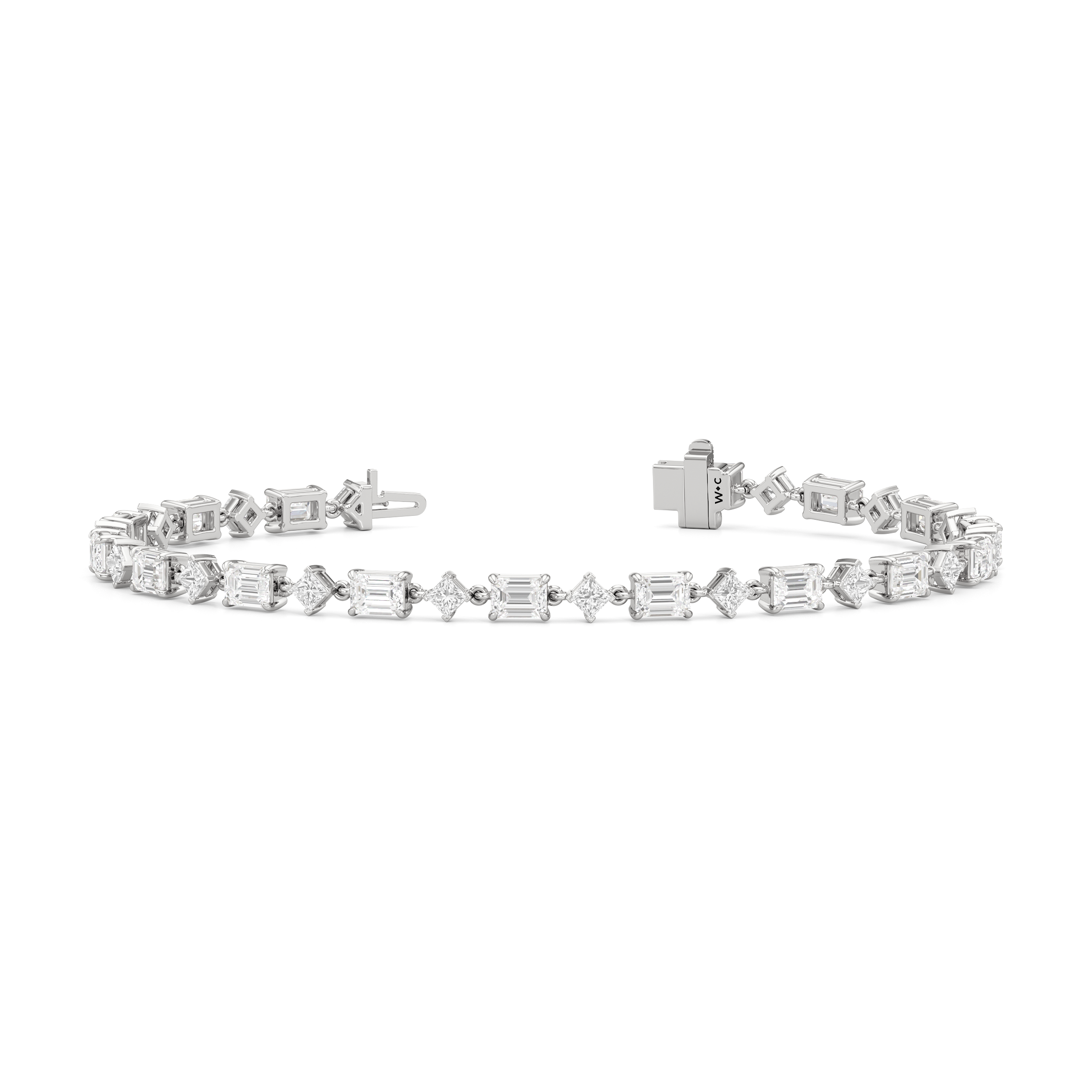 ✥This image showcases the Pear, Emerald & Oval Cut Diamond Moissanite Unique Tennis Bracelet, a captivating blend of shapes and sparkle. Featuring alternating Pear Cut, Emerald Cut, and Oval Cut Moissanite stones, this bracelet creates a dynamic rhythm of brilliance and elegance. The unique combination of cuts adds depth and visual interest, making it a standout piece for any occasion. Crafted with precision and comfort, this tennis bracelet is perfect for those who appreciate artistry and individuality in their jewelry. A timeless symbol of love and refined style.