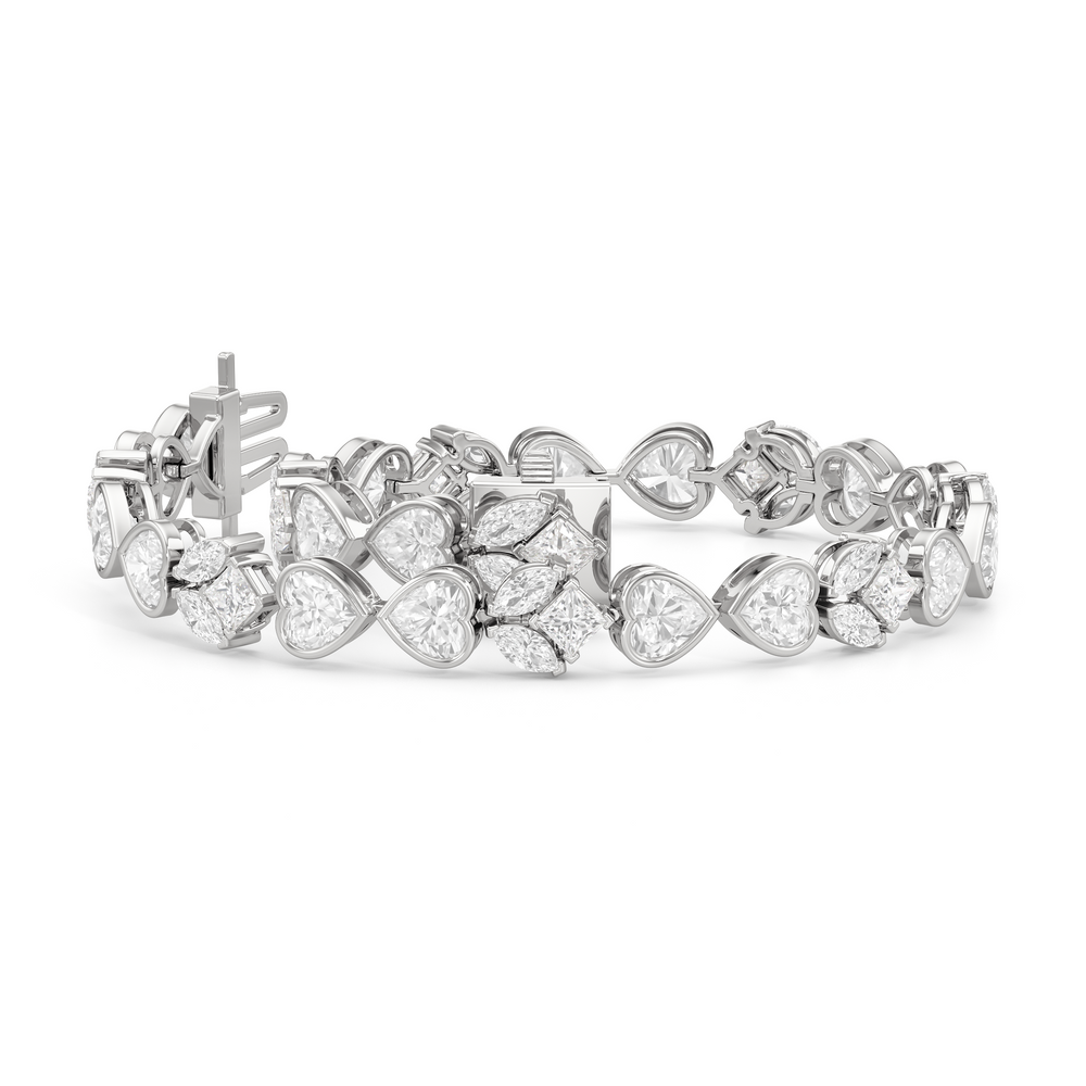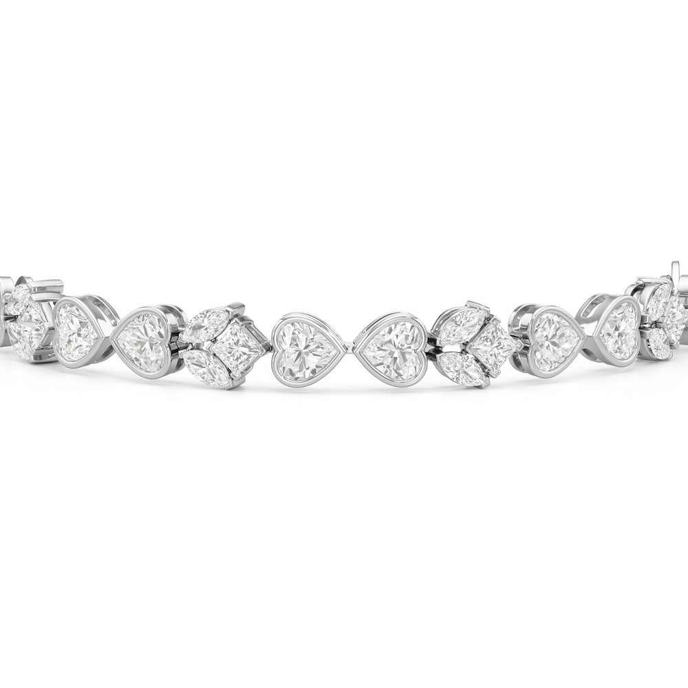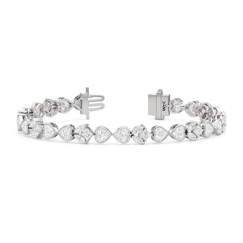 Heart Cut Diamond Bezel Setting Unique Moissanite Tennis Bracelet