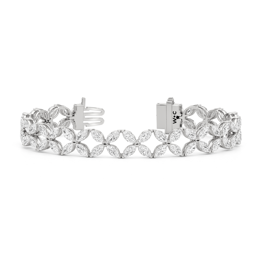 Marquise Cut Diamond Unique Flower Design Moissanite Tennis Bracelet