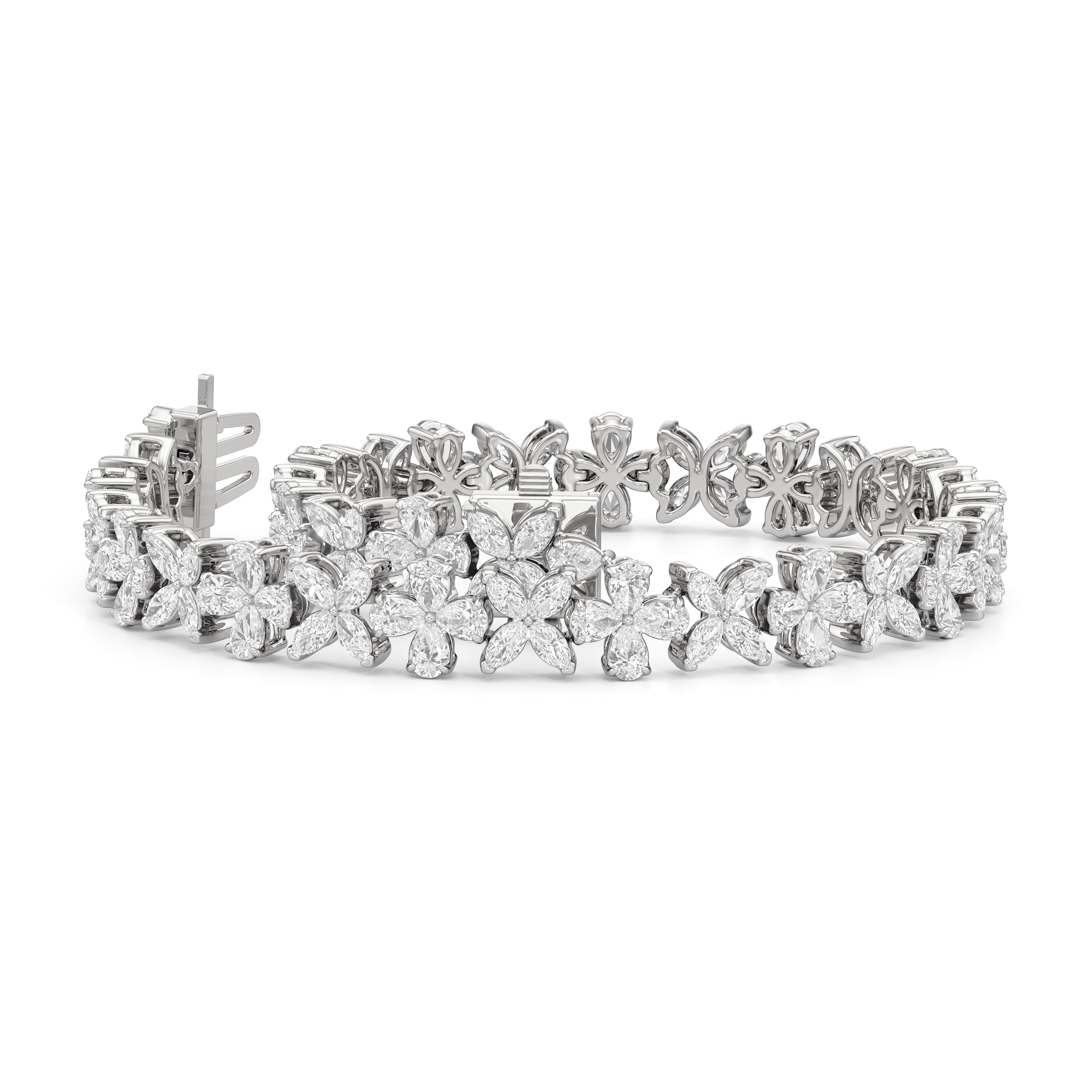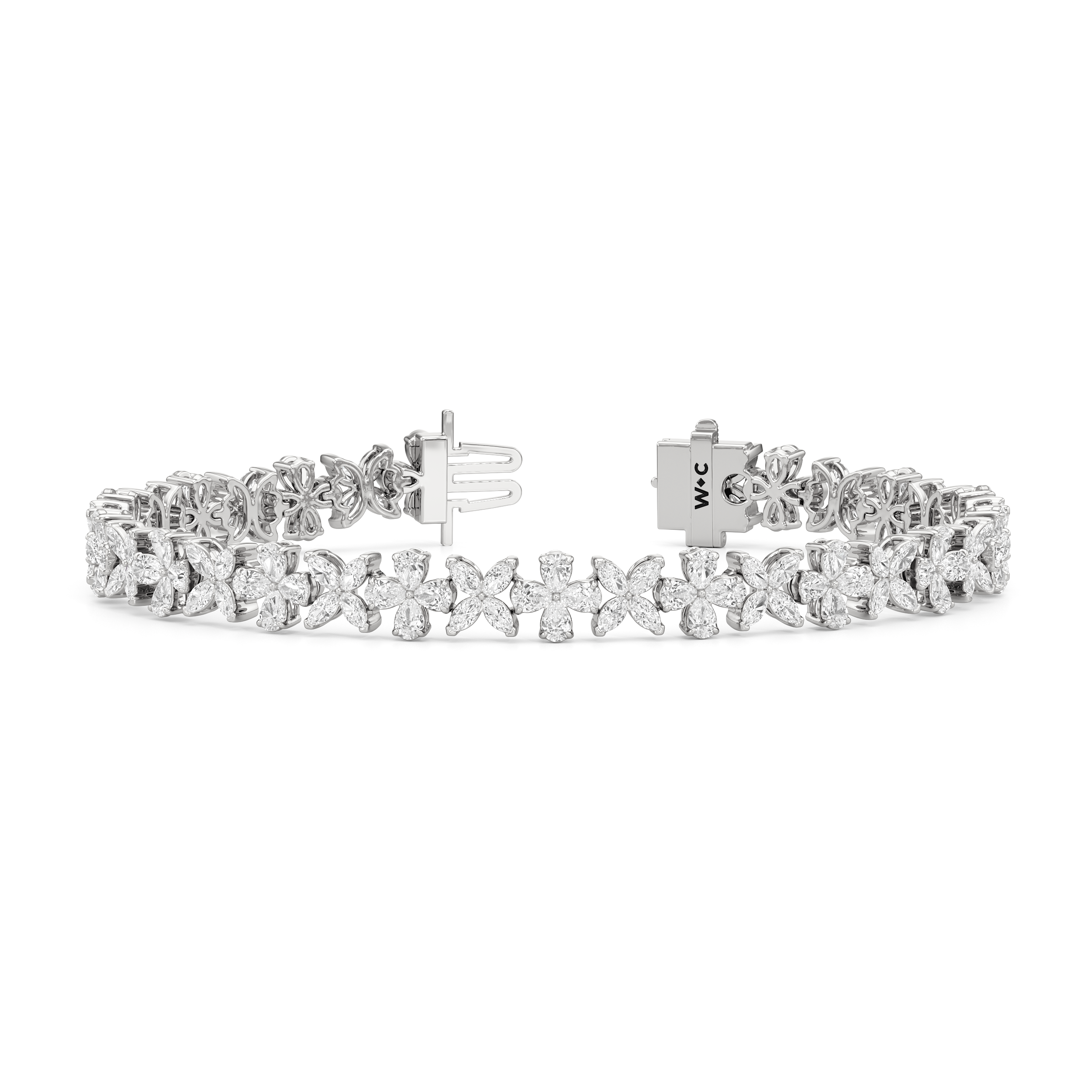 Marquise & Pear Cut Flower Design Moissanite Tennis Bracelet