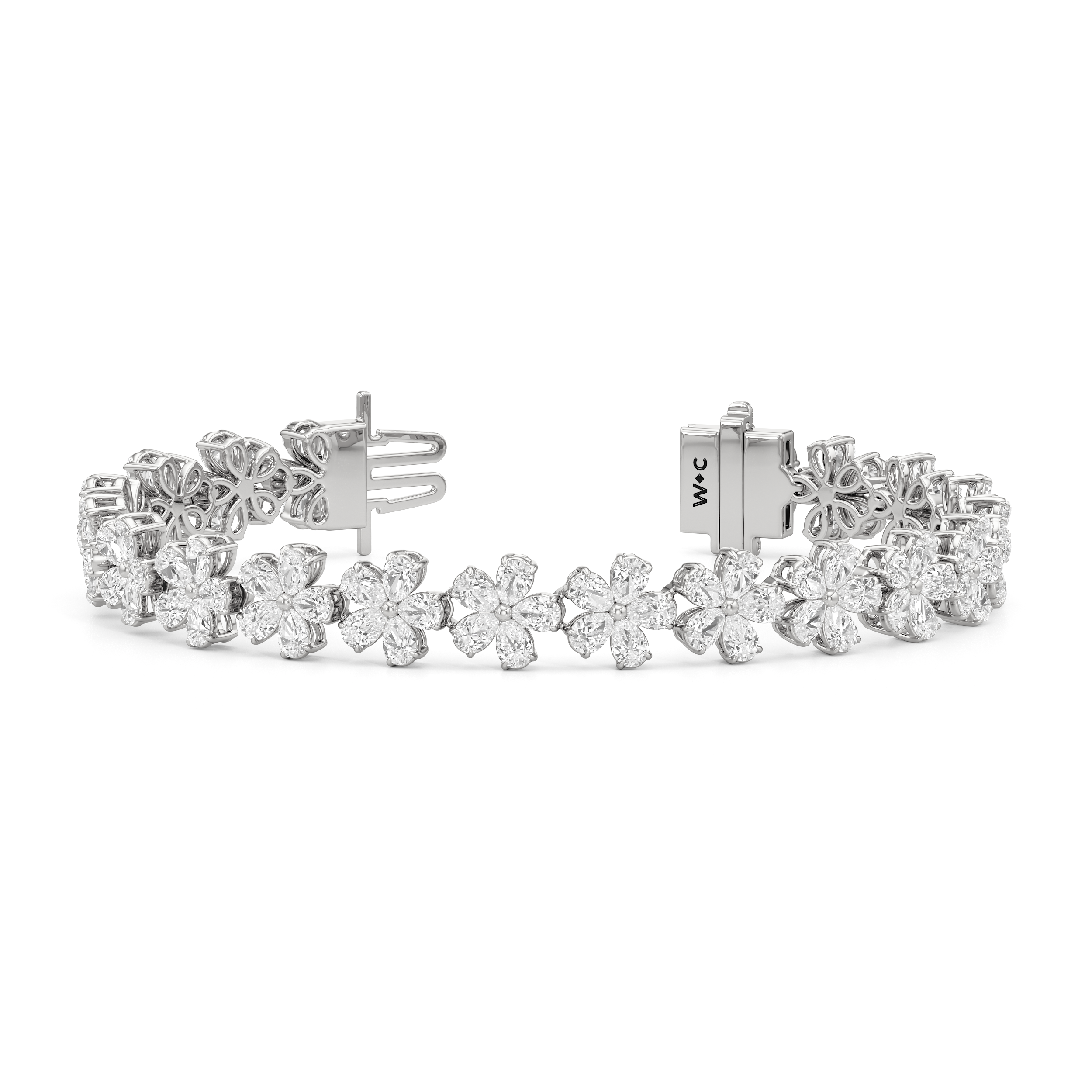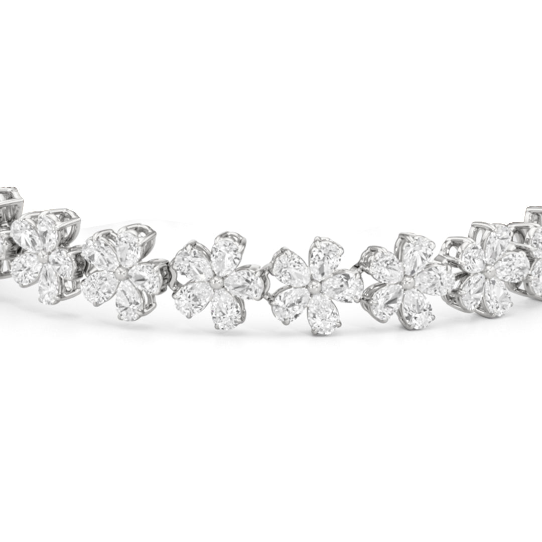 Pear Cut Diamond Daisy Flower Style Moissanite Tennis Bracelet