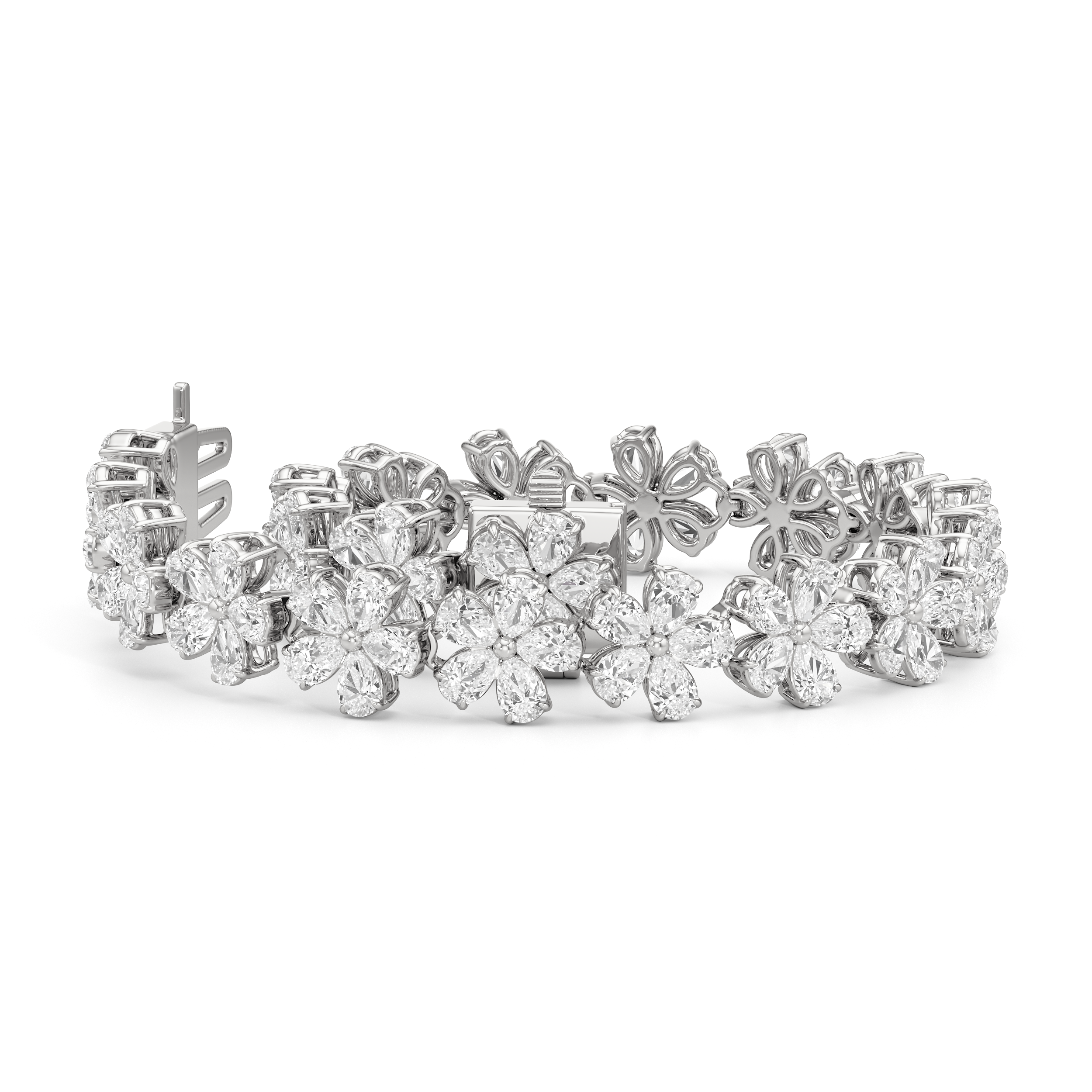 ✥The image features a charming Pear Cut Diamond Daisy Flower Style Moissanite tennis bracelet, inspired by the delicate beauty of blooming florals. Each Pear Cut moissanite is arranged in a graceful Daisy Flower Design, creating a soft, romantic pattern that wraps the wrist in radiant sparkle. This whimsical yet elegant bracelet captures nature’s charm with luxurious brilliance, perfect for weddings, anniversaries, or feminine everyday style. Crafted with care and creativity, this Moissanite Tennis Bracelet is a trending favorite for those who adore floral elegance with timeless appeal.