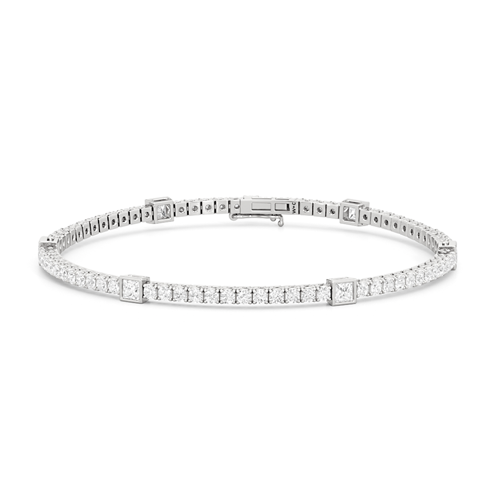 Princess & Round Cut Diamond Moissanite Tennis Bracelet For Her
