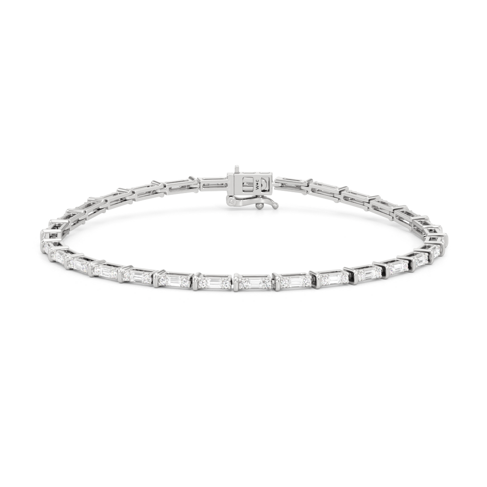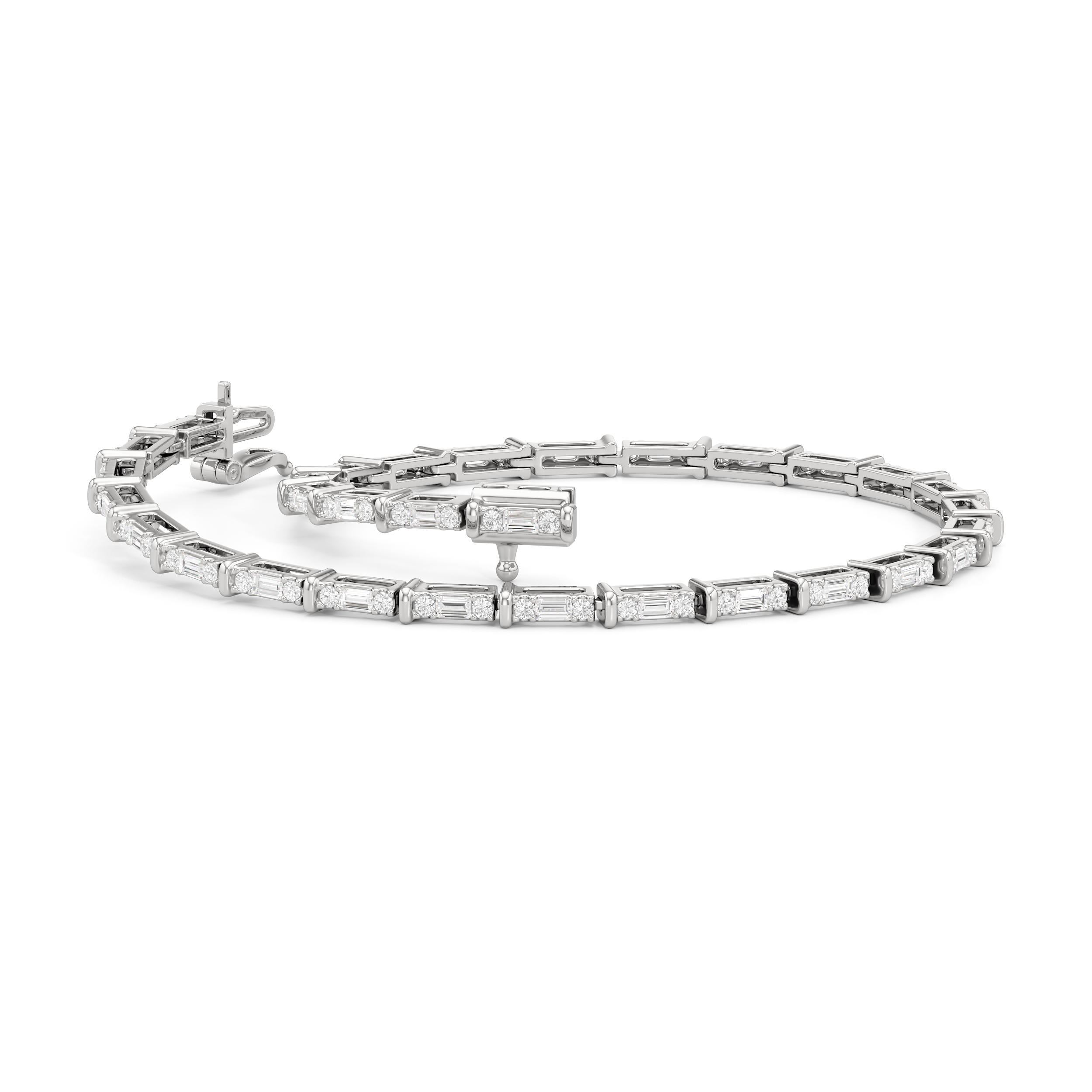 Round & Baguette Cut Moissanite Tennis Bracelet For Her