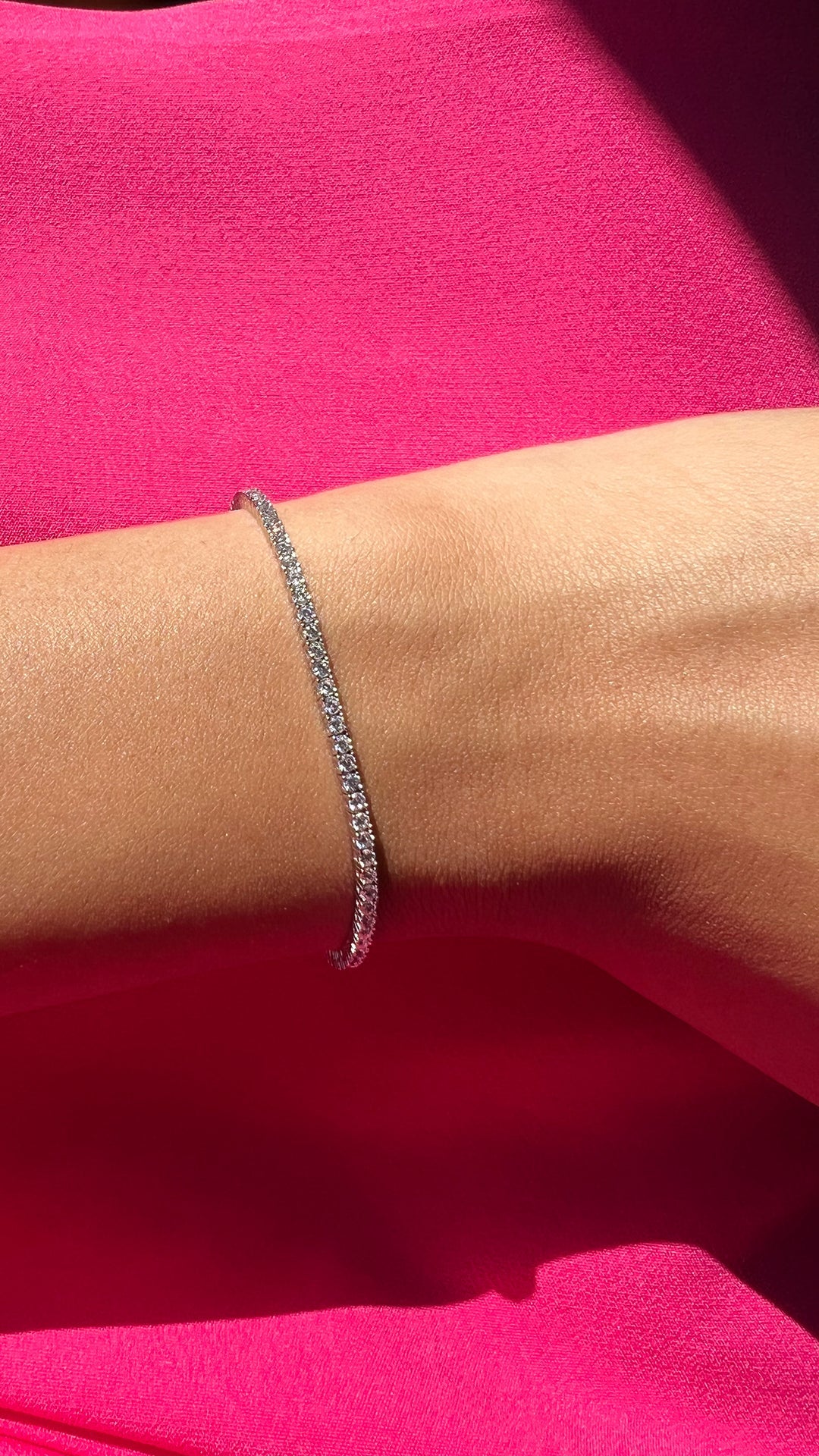 ✥The image showcases an elegant Round Cut Moissanite design in this classic Tennis Bracelet For Her. Featuring perfectly matched round cut moissanite stones that deliver exceptional brilliance and fire, this timeless tennis bracelet offers continuous sparkle around the wrist. Expertly crafted for lasting durability and a secure, comfortable fit, it’s ideal for elevating both everyday style and special occasion looks. Celebrate her elegance and sophistication with this radiant moissanite bracelet designed to be a cherished piece in any jewelry collection.