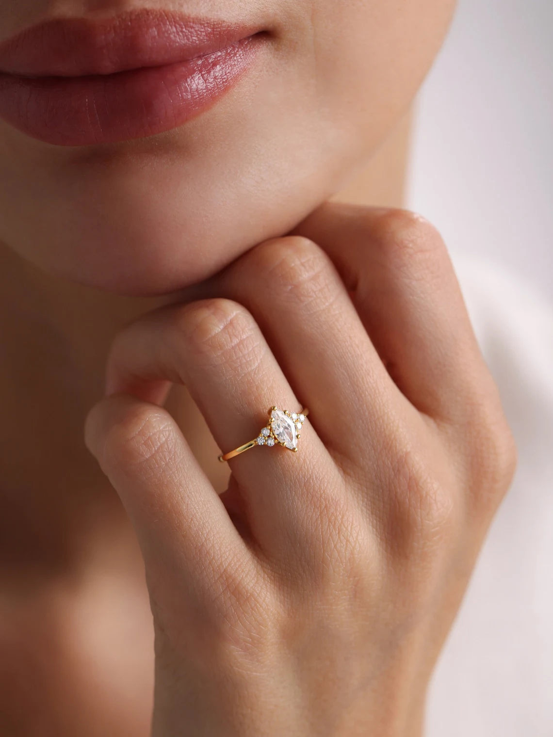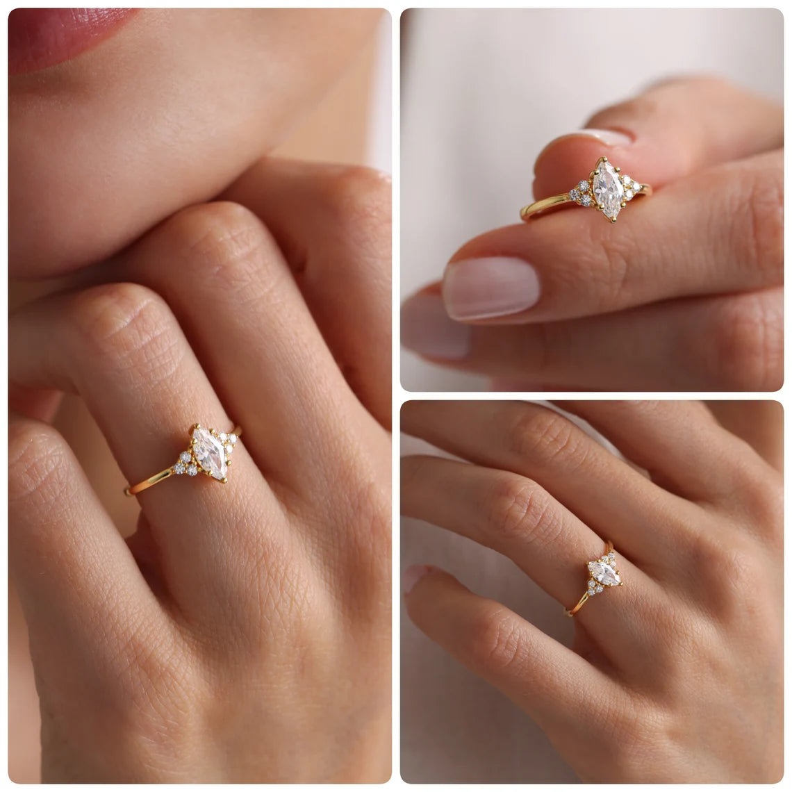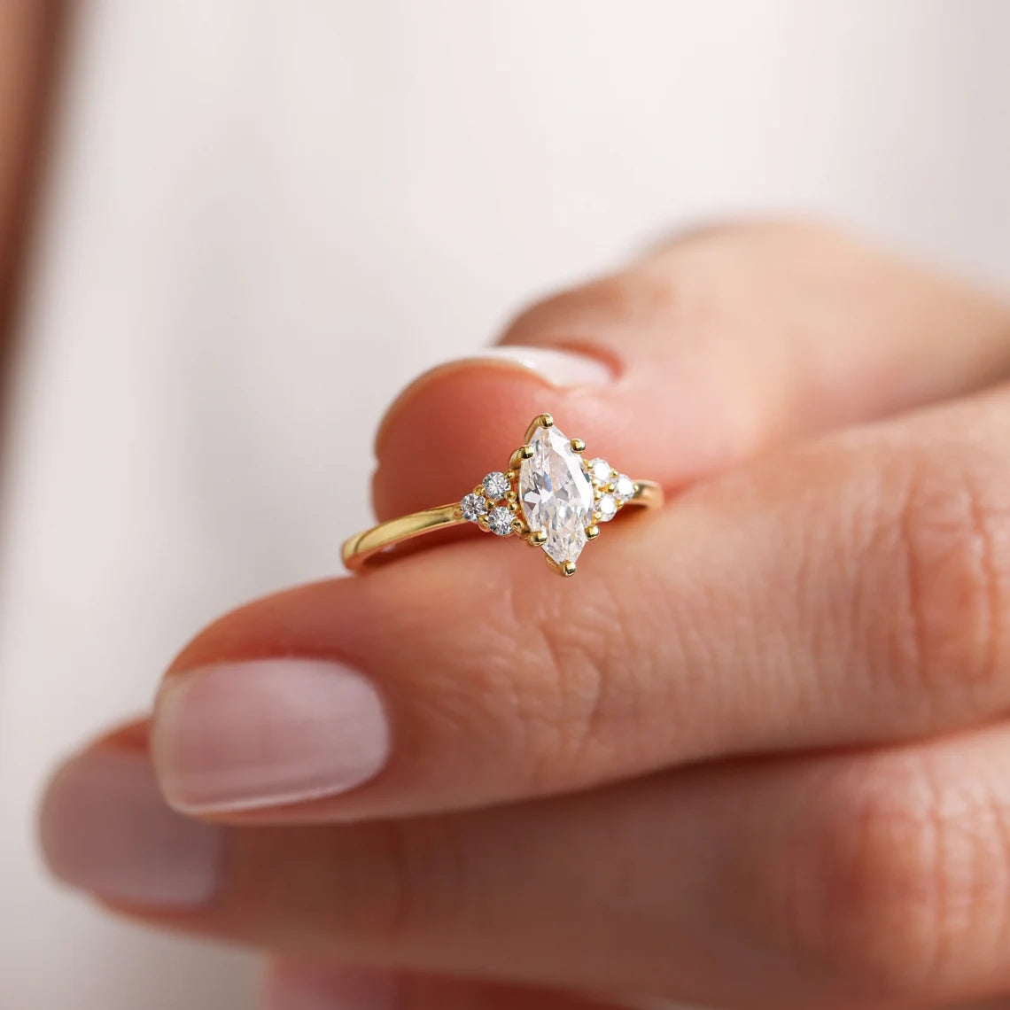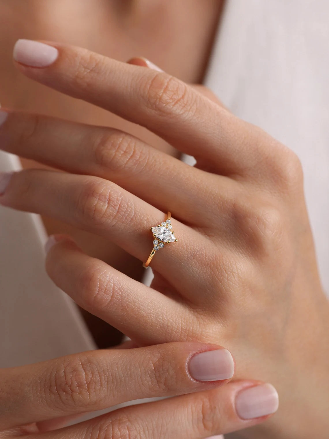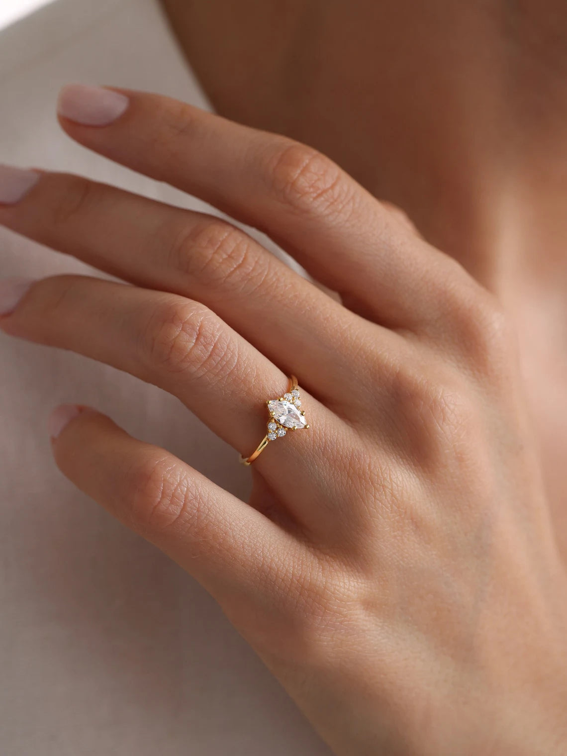 1.0CT Marquise Cut Cluster Diamond Moissanite Engagement Ring