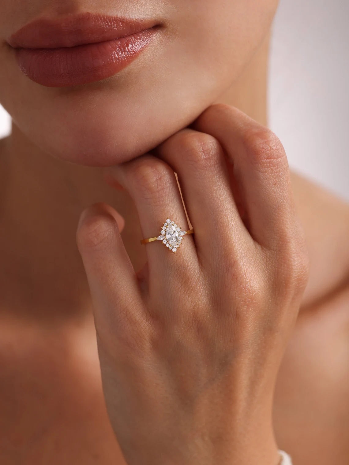 1.0CT Marquise Cut Vintage Style Moissanite Engagement Ring