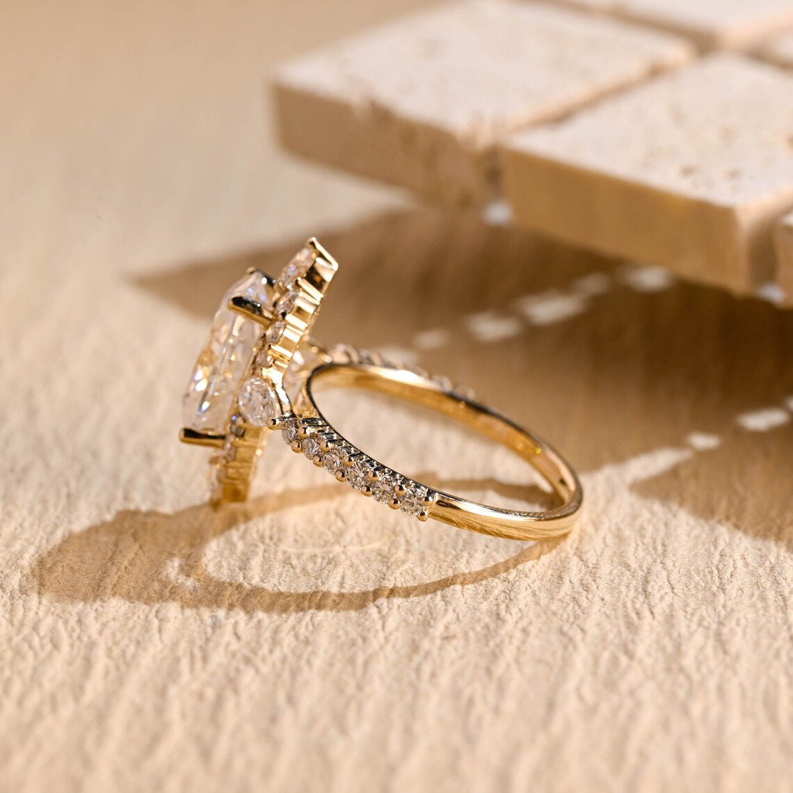 1.0CT Oval Diamond Cluster Moissanite Engagement Ring