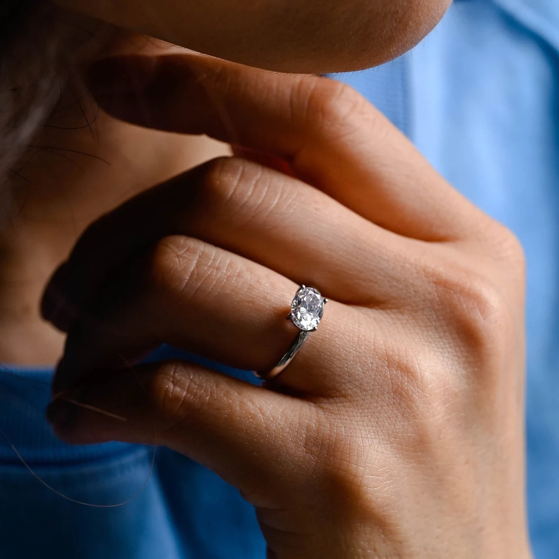 1.0CT Oval Diamond East West Solitaire Moissanite Engagement Ring