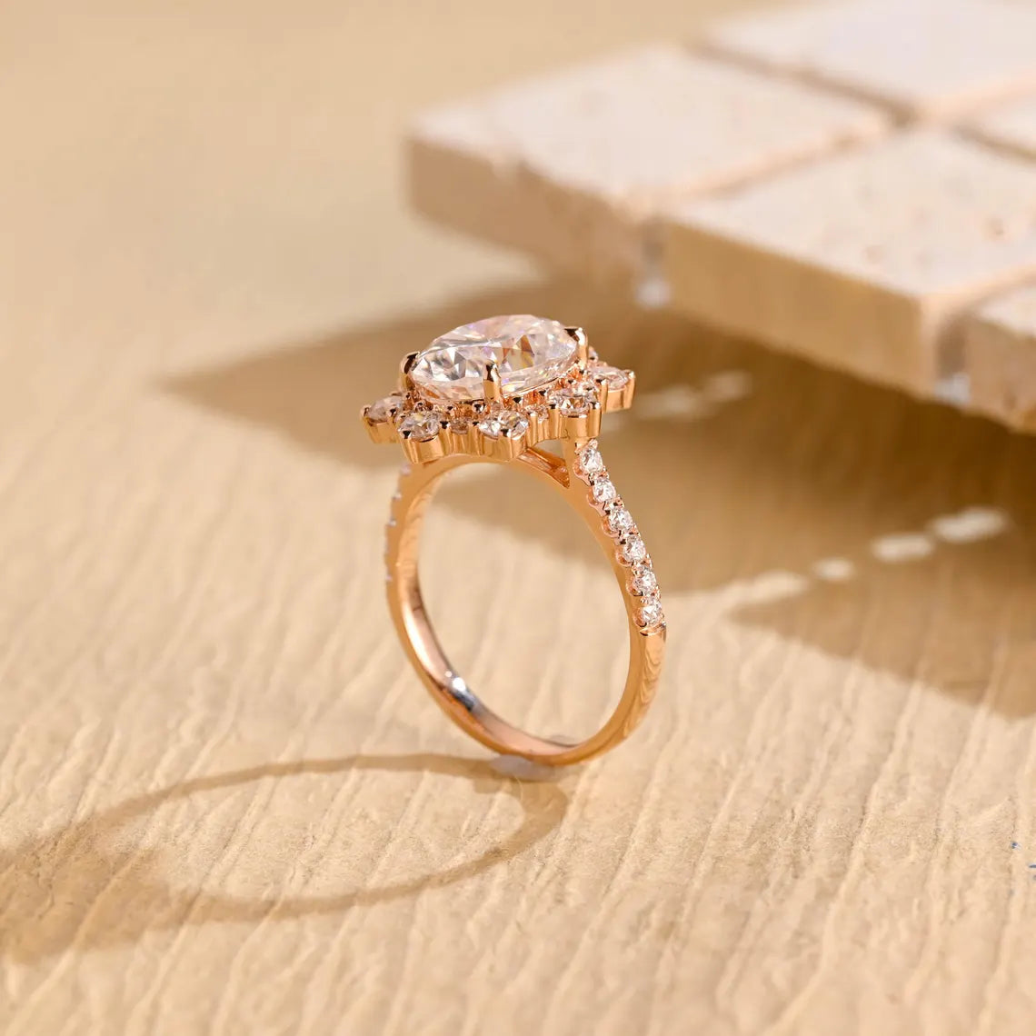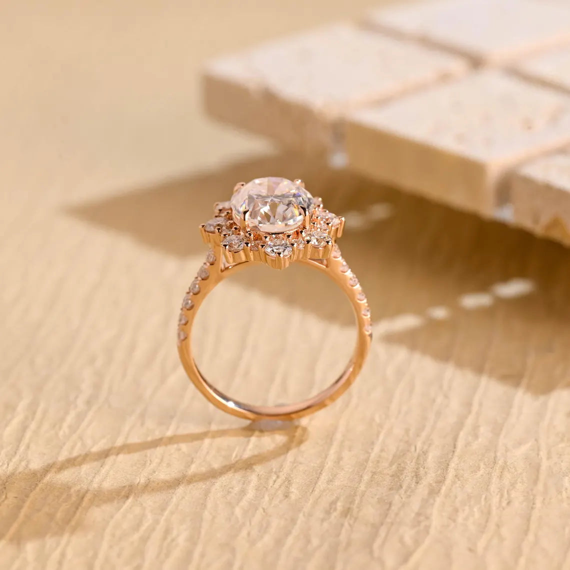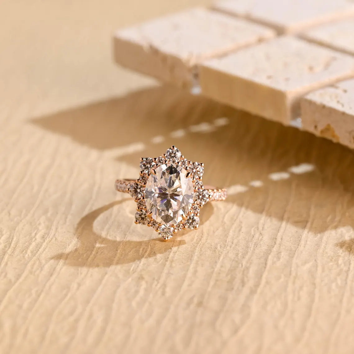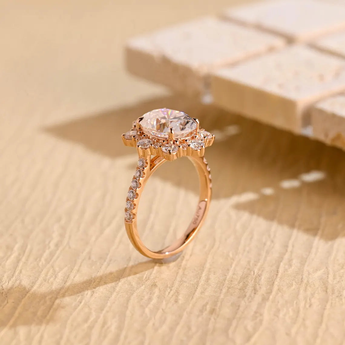 1.0CT Oval Diamond Halo Cluster Setting Moissanite Engagement Ring