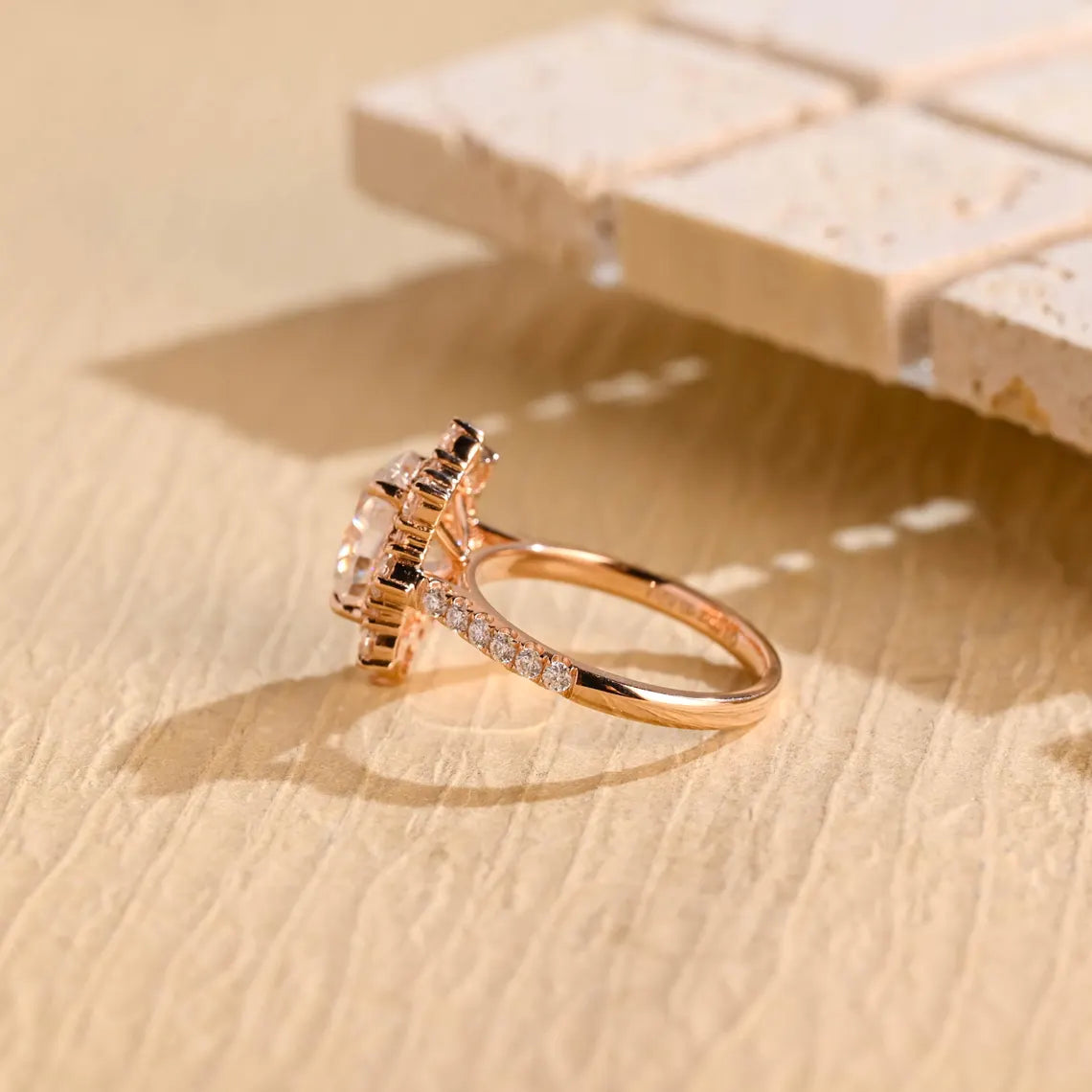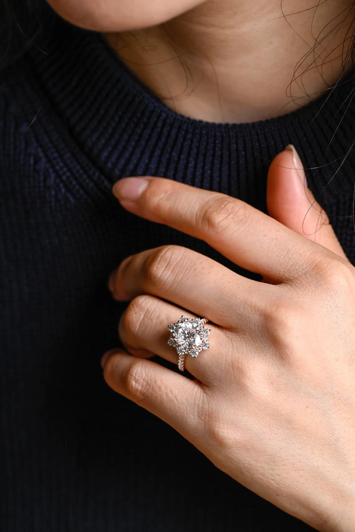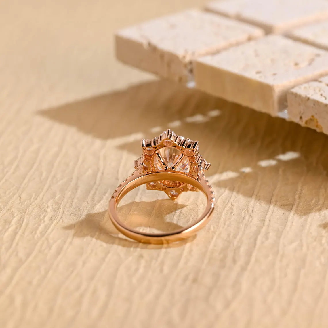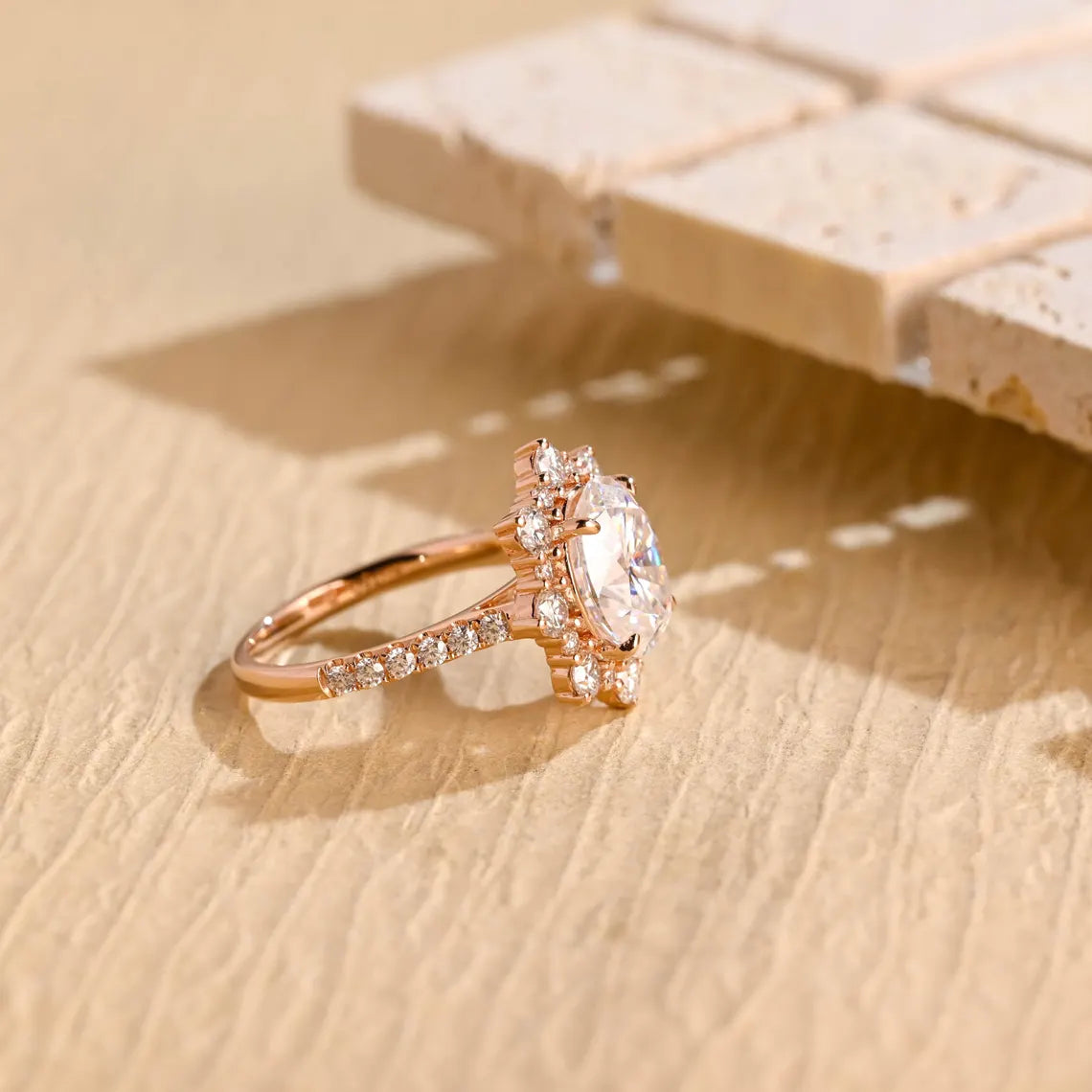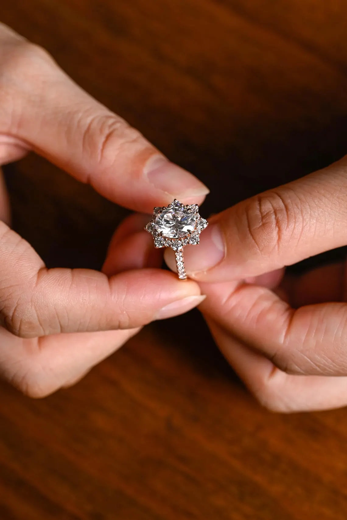 1.0CT Oval Diamond Halo Cluster Setting Moissanite Engagement Ring