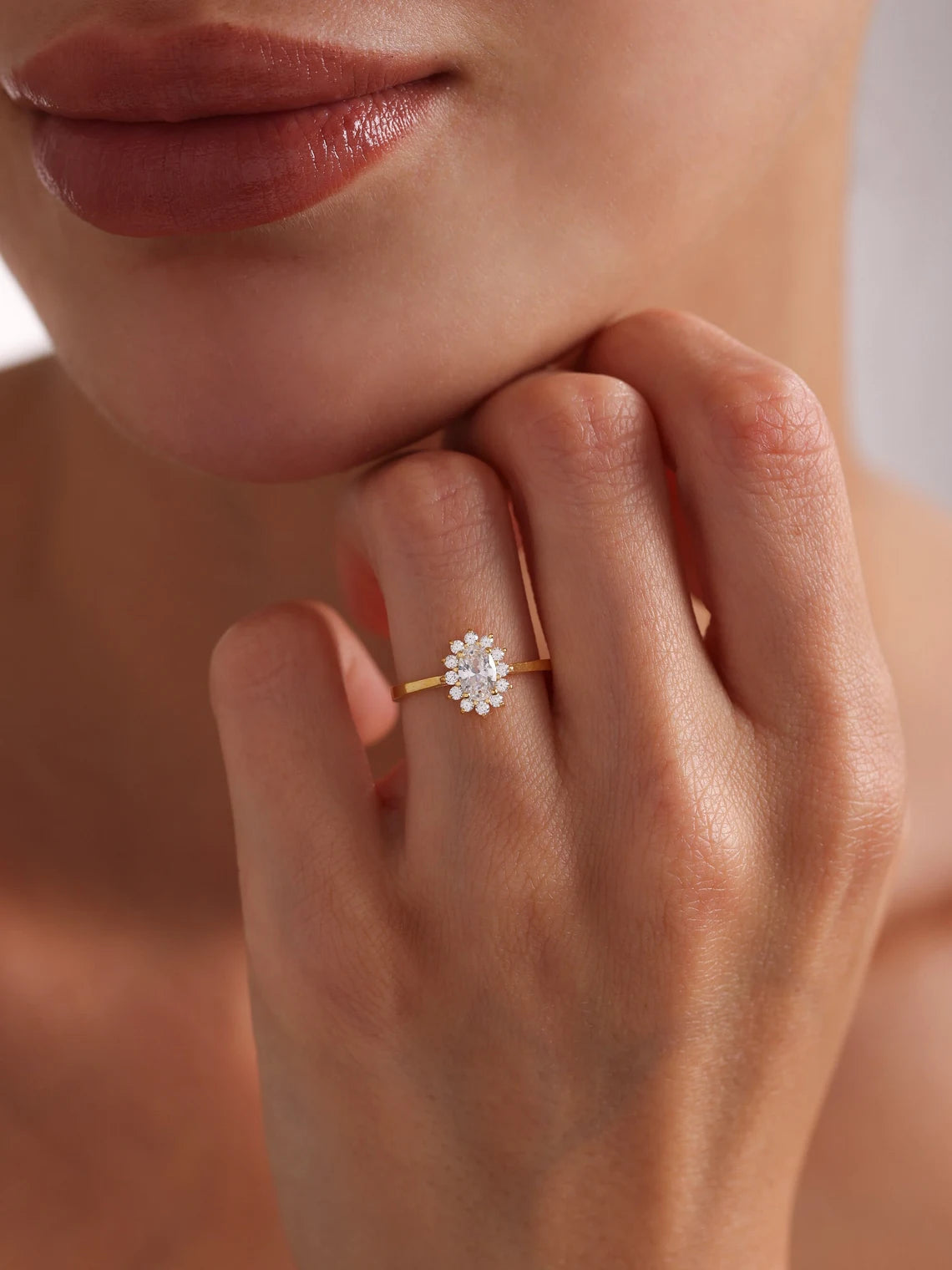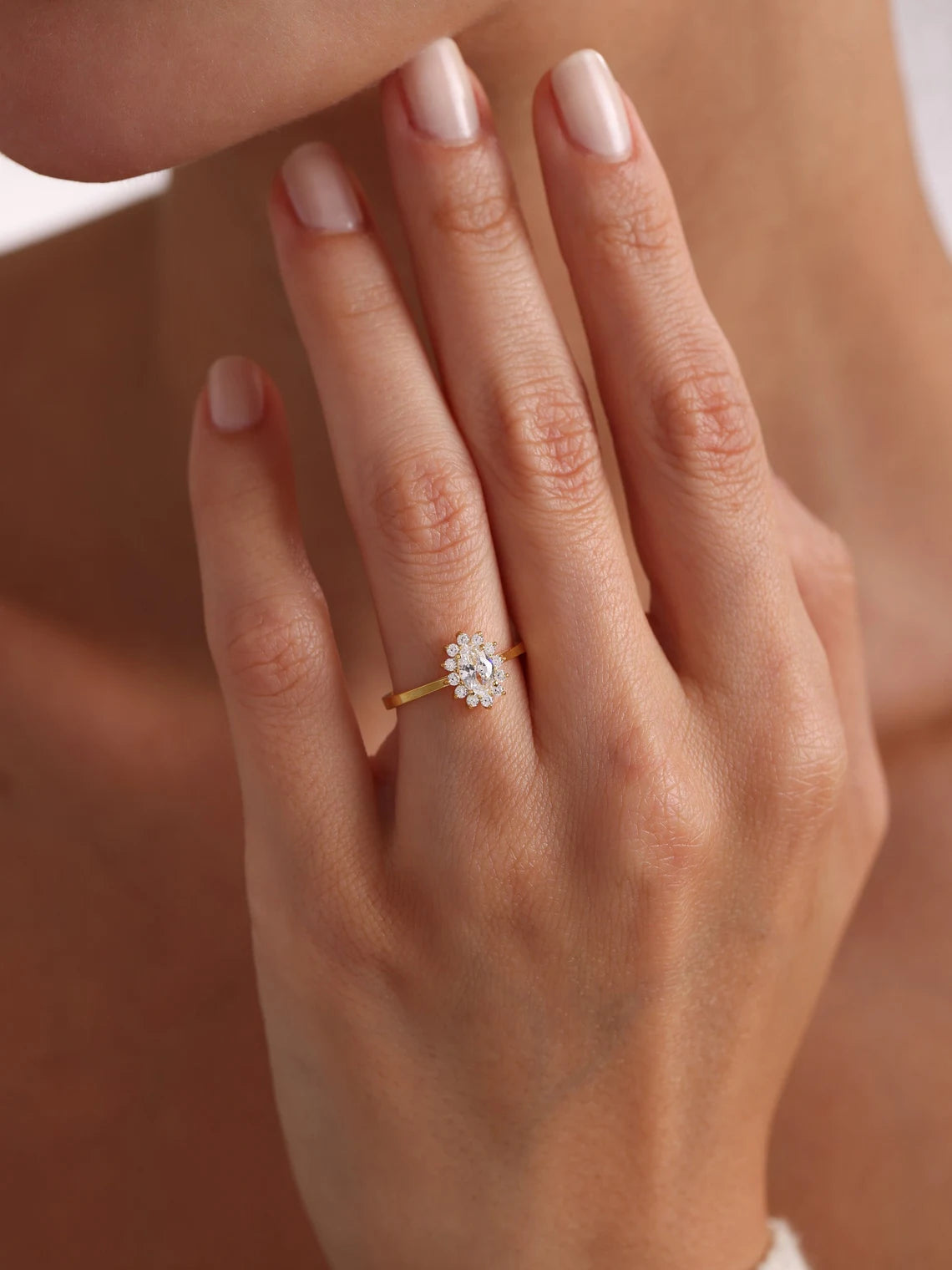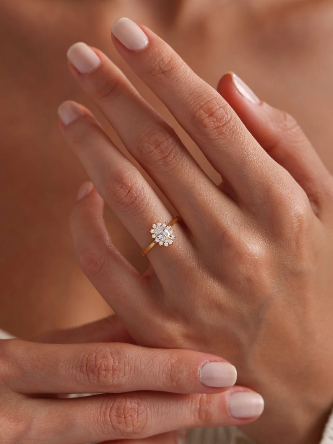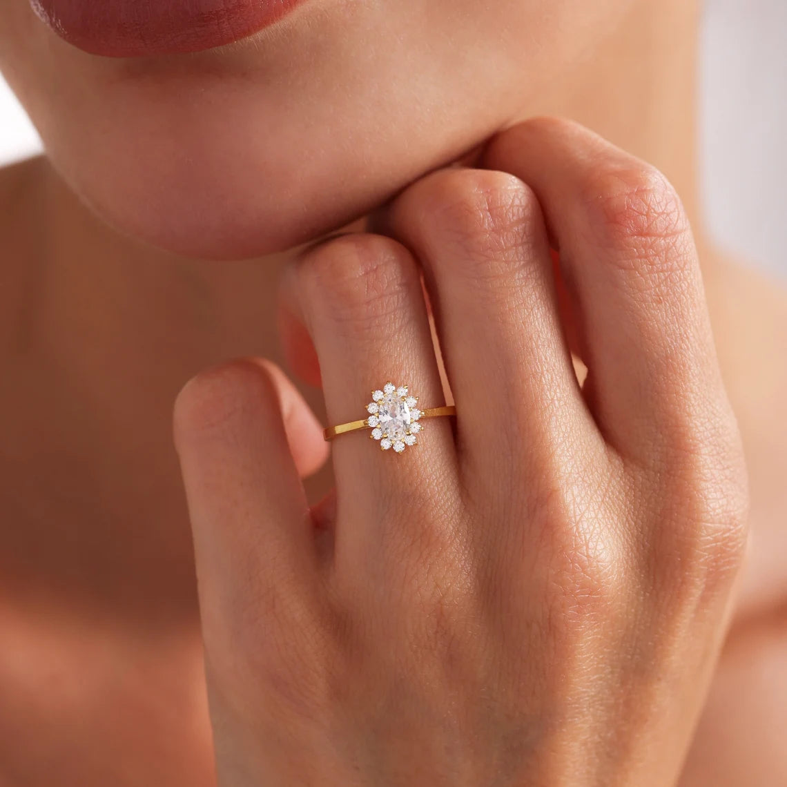 1.0CT Oval Diamond Halo Setting Moissanite Engagement Ring