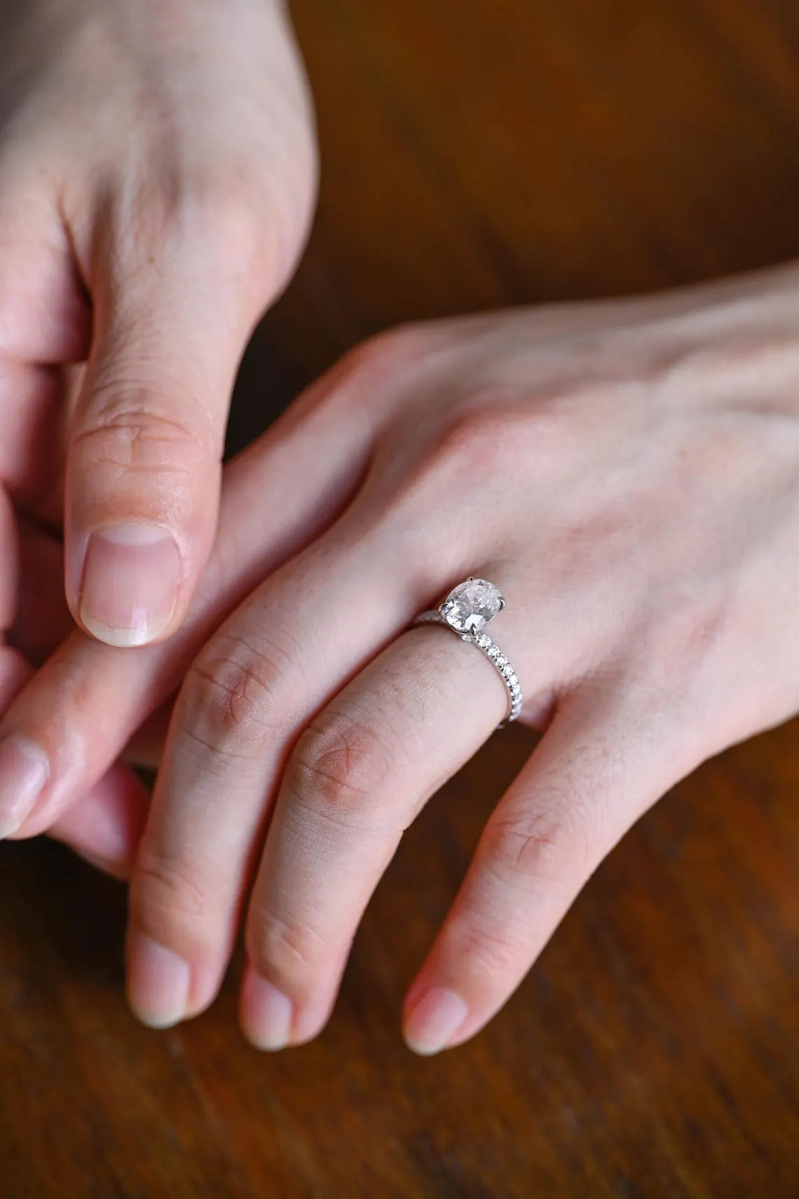 1.0CT Oval Diamond Pave Setting Moissanite Engagement Ring
