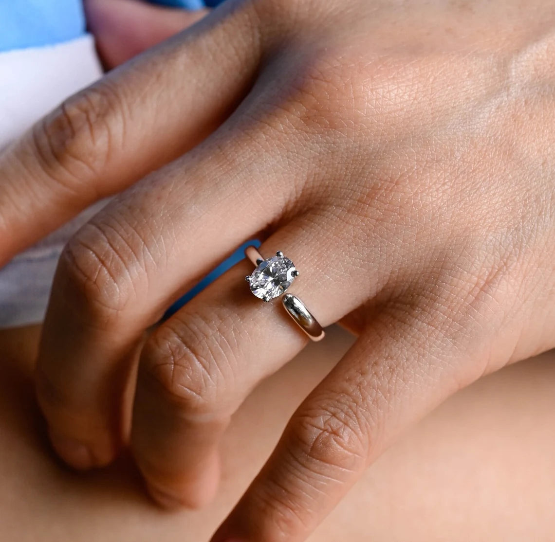 1.0CT Oval Diamond Unique Solitaire Moissanite Engagement Ring