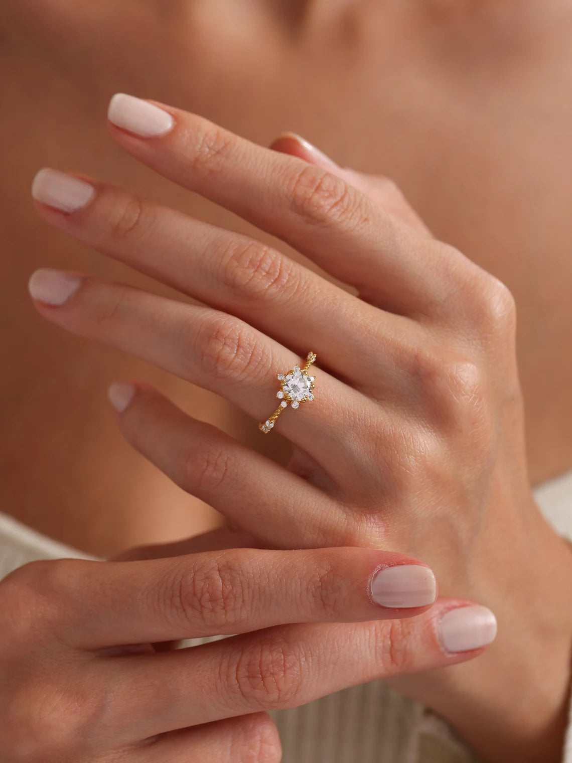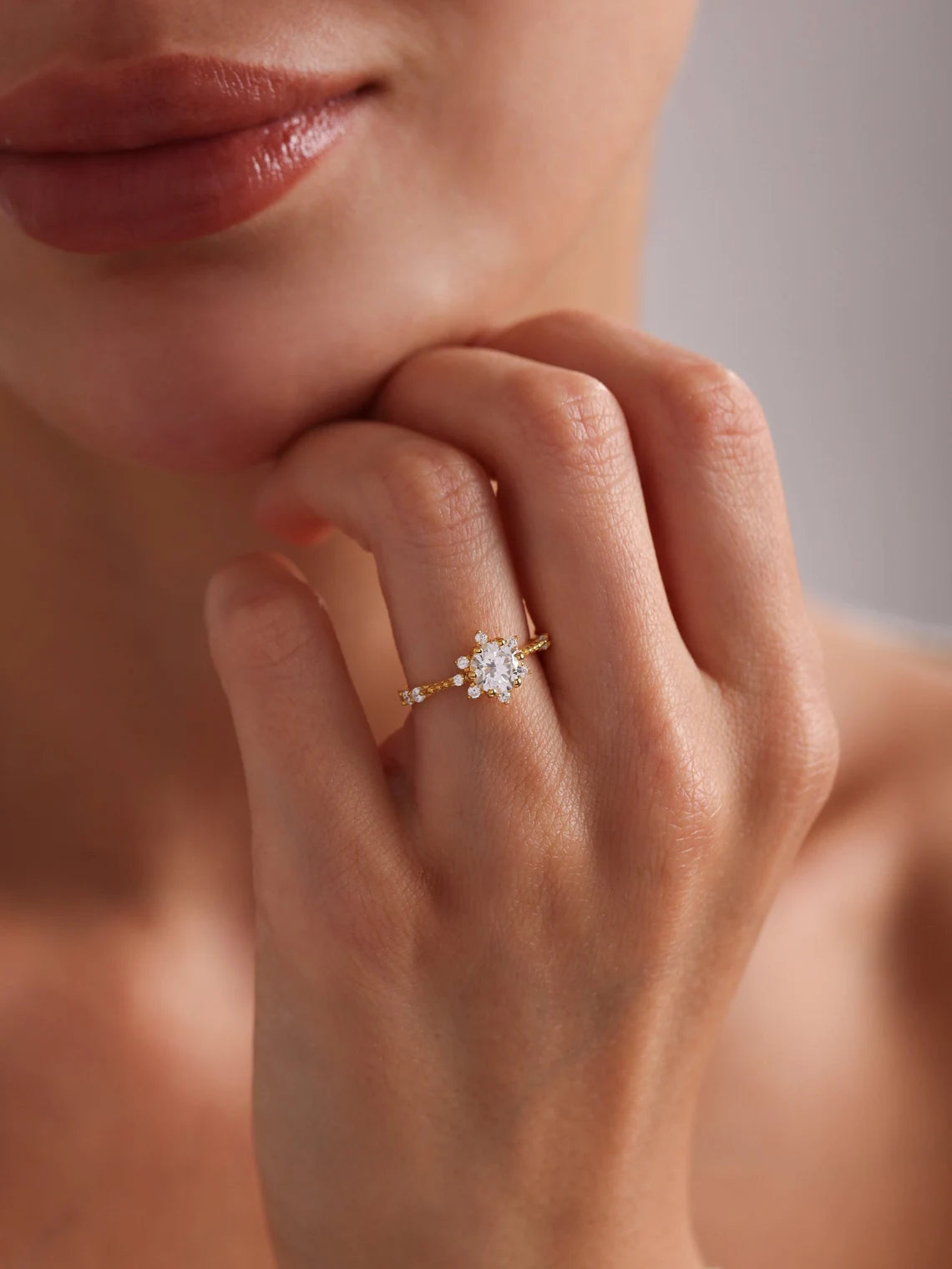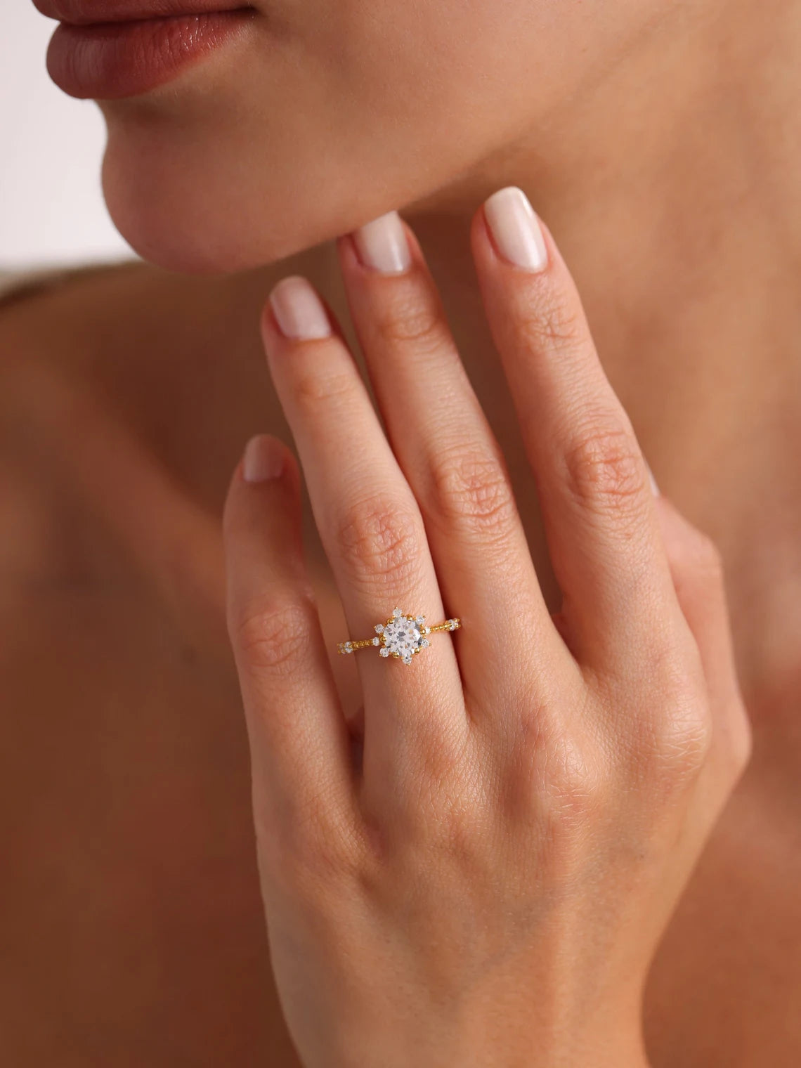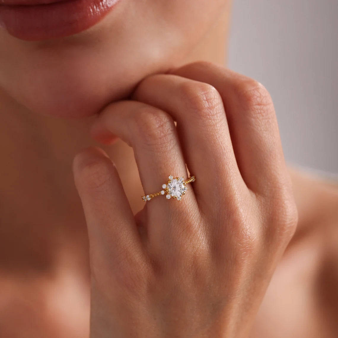 1.0CT Round Cut Cluster Setting Moissanite Engagement Ring