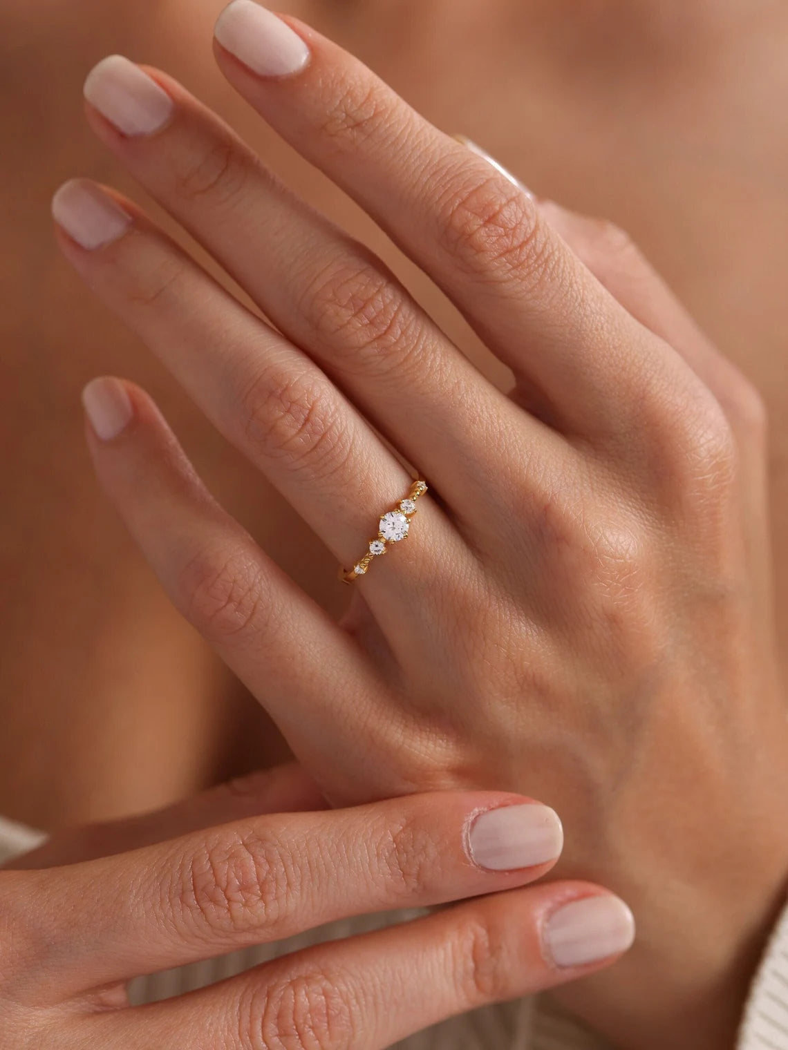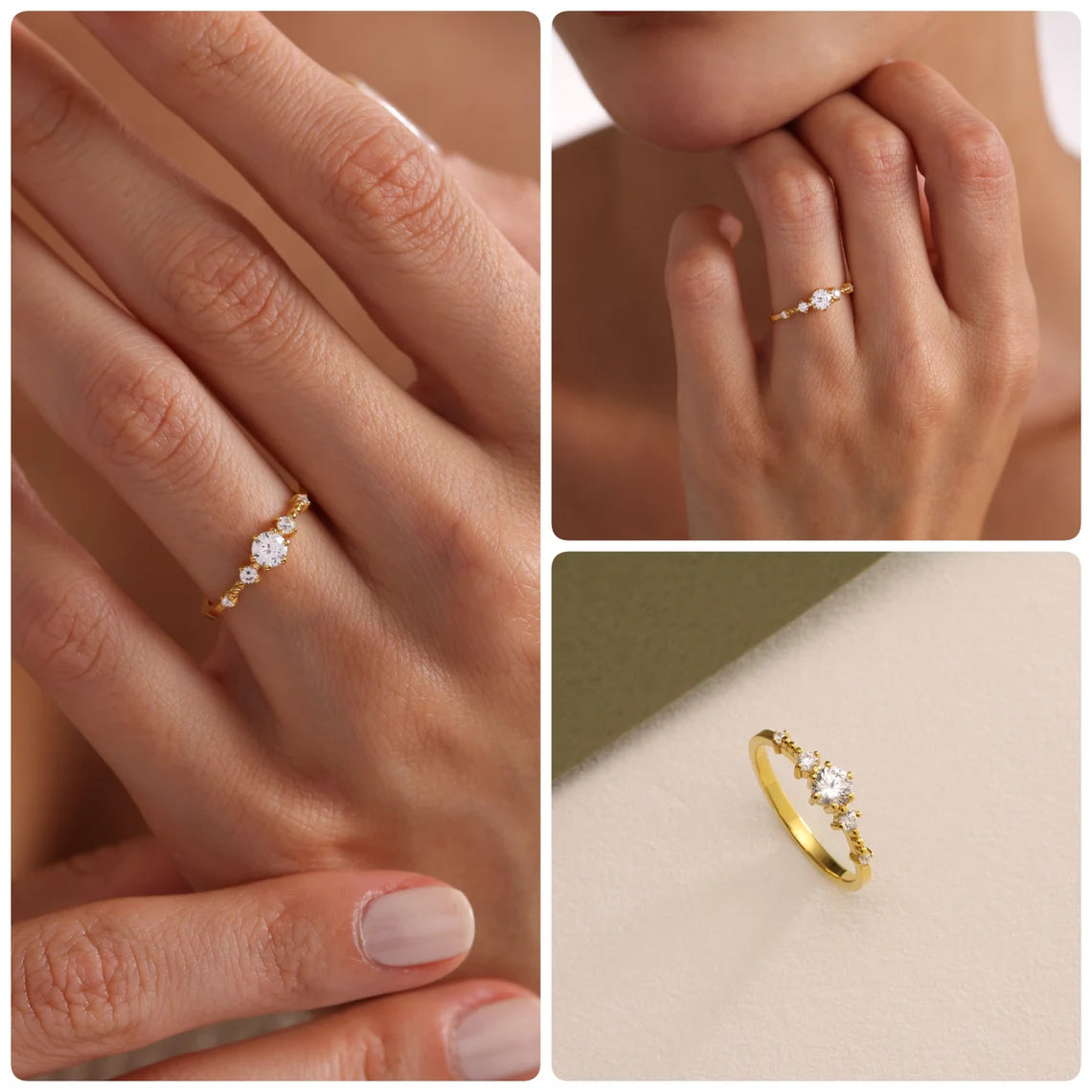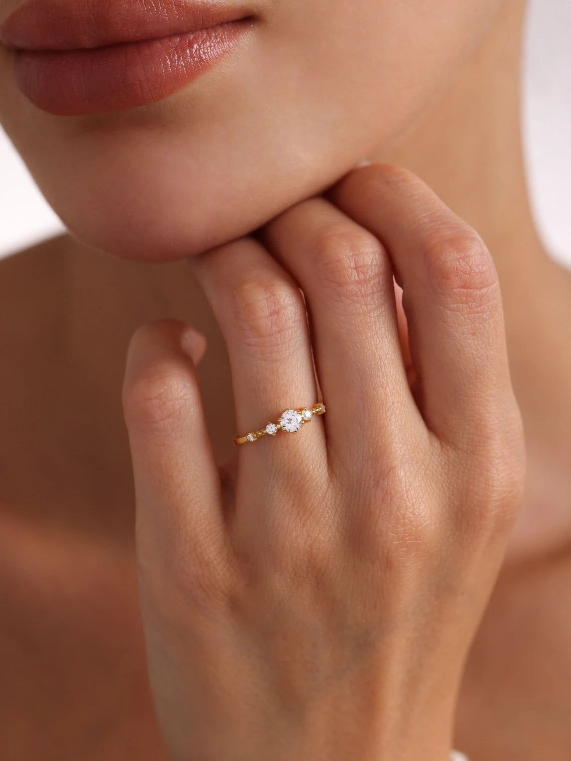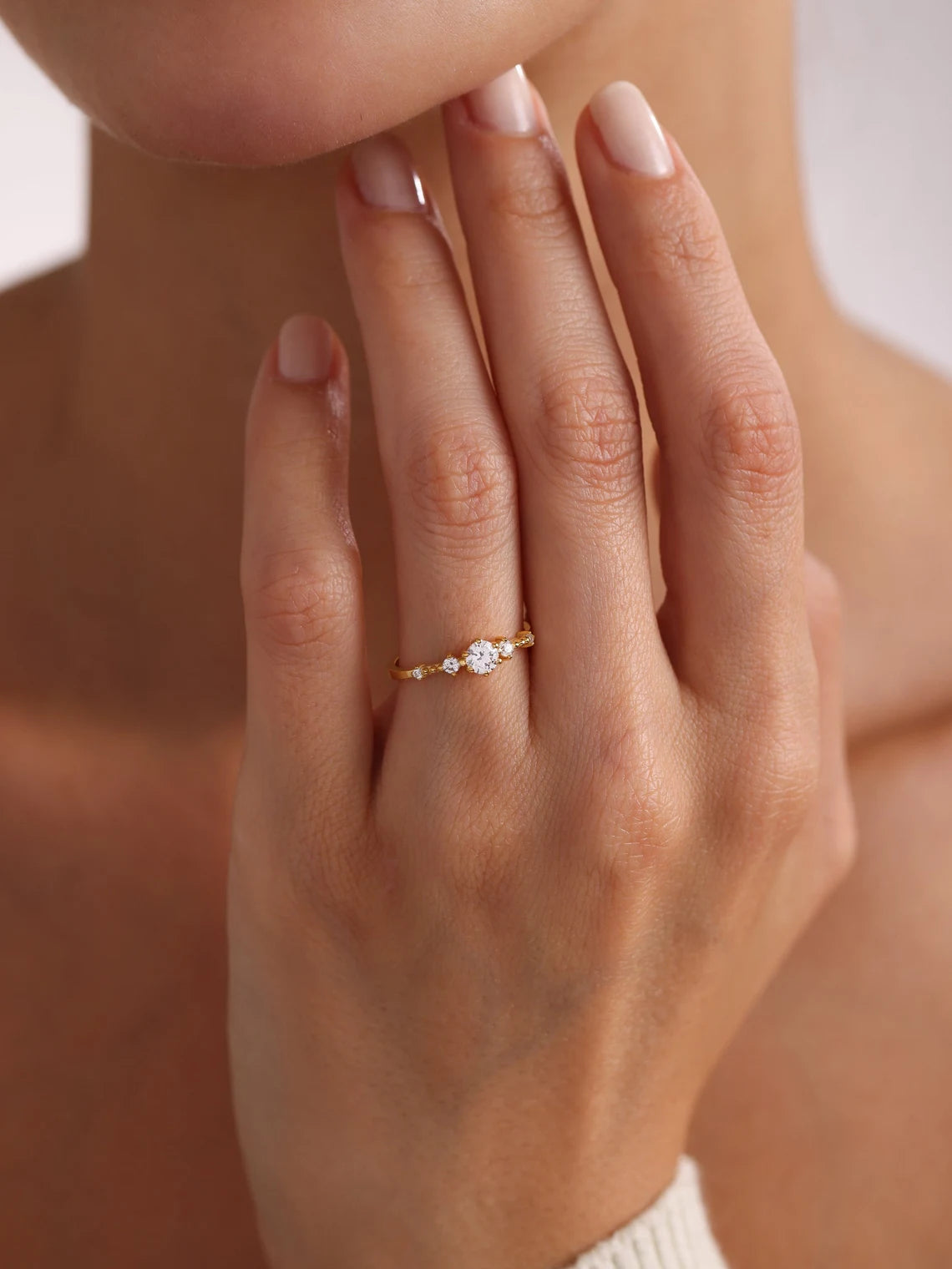 1.0CT Round Cut Cluster Setting Moissanite Engagement Ring