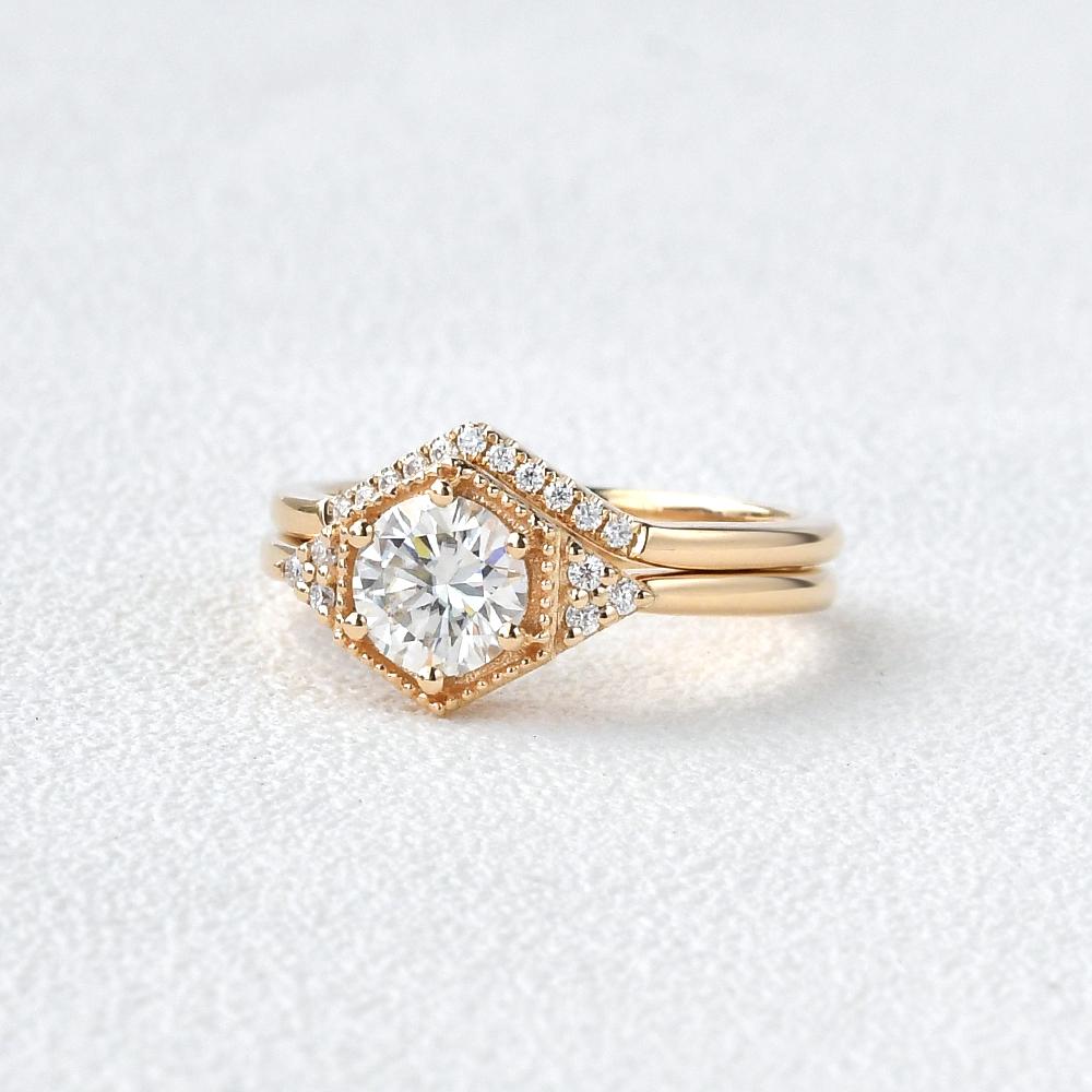 1.0CT Round Brilliant Cut Moissanite Hexagon Shape Bridal Engagement Ring Set