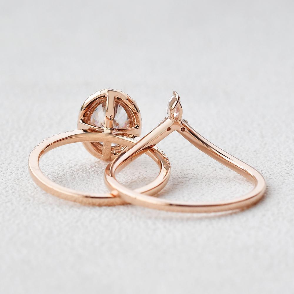 2.54CT Oval Moissanite Halo Engagement Ring with Curved Stacking Band
