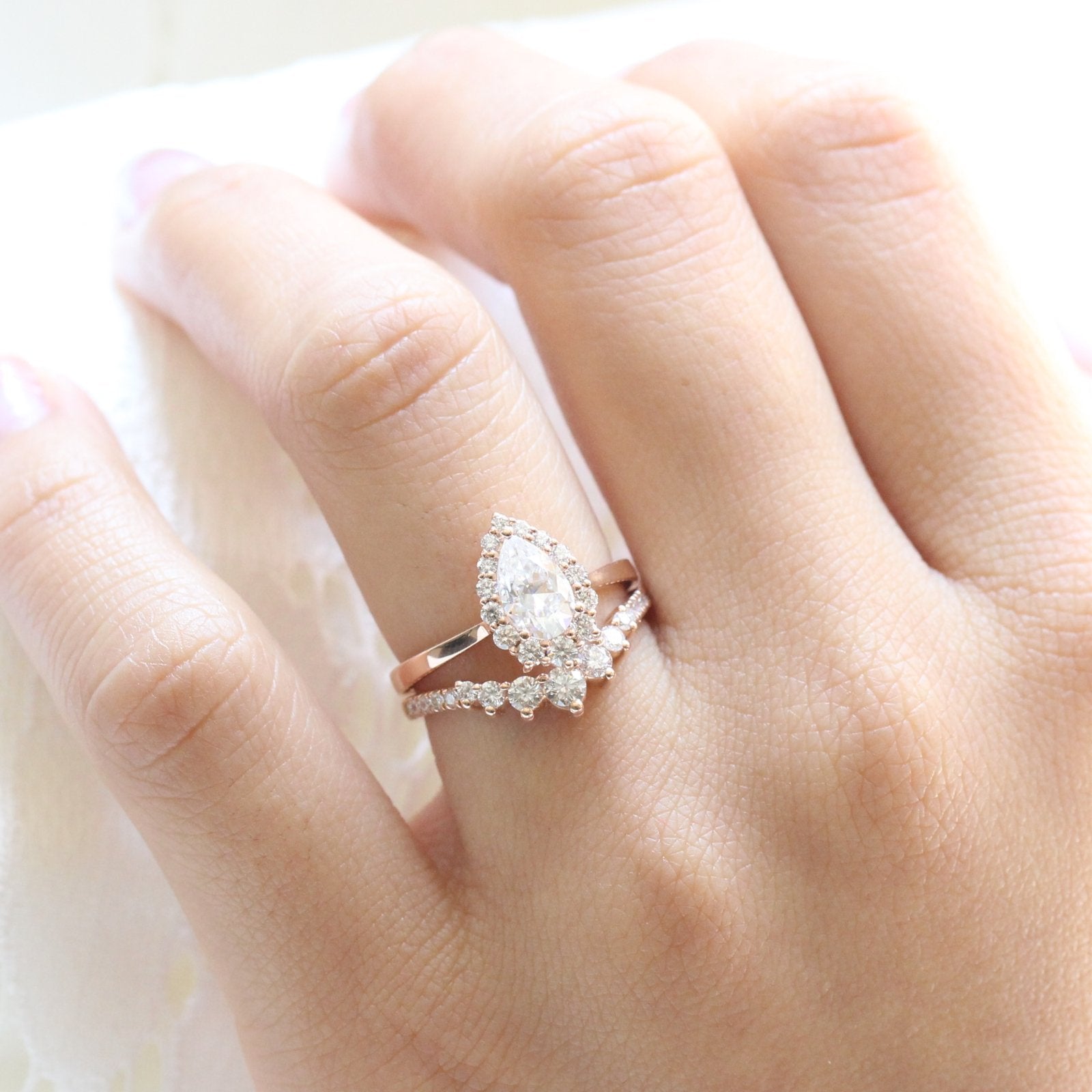 1.0CT Pear Cut Moissanite Halo Bridal Engagement Ring Set