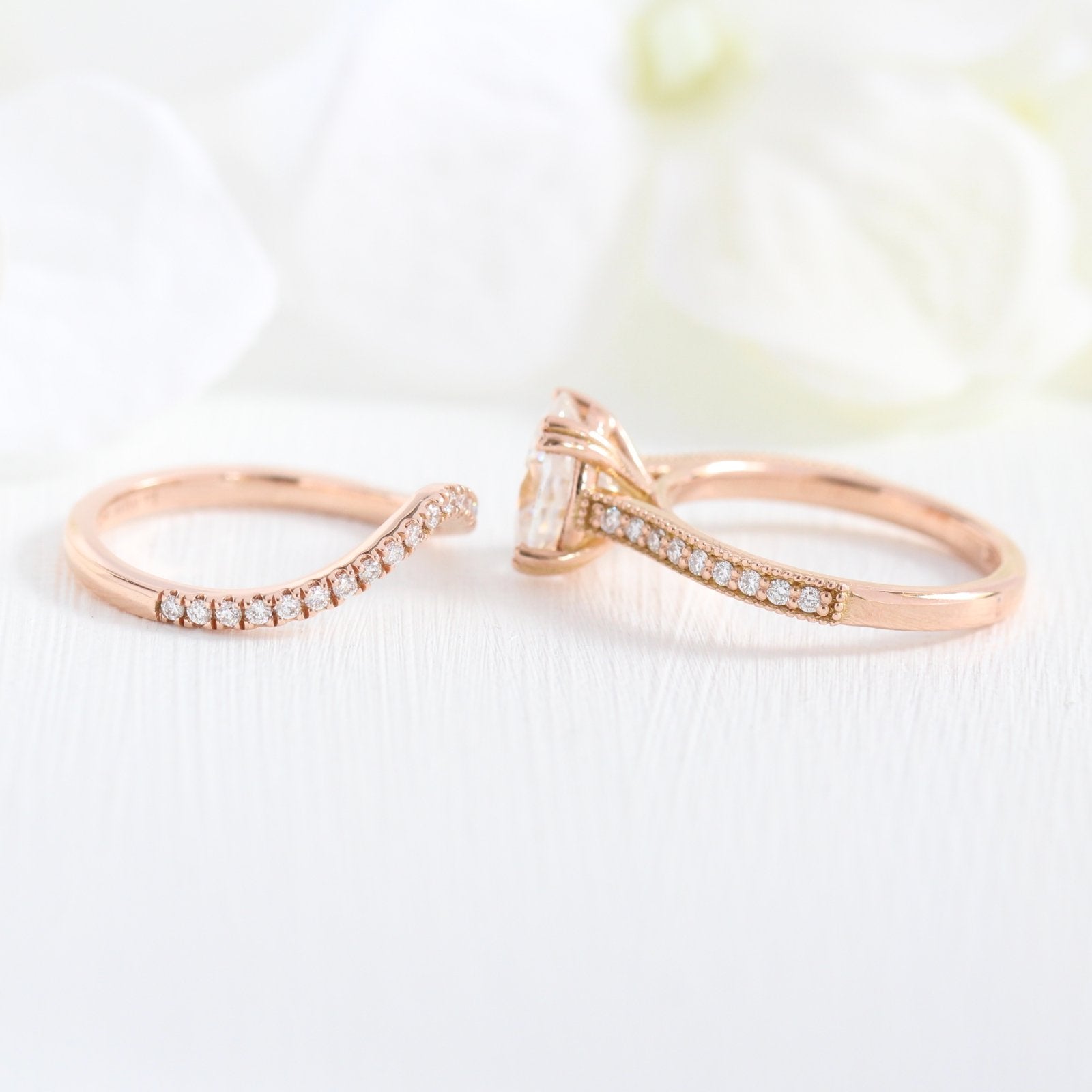 2.0CT Oval Cut Moissanite Halo Bridal Engagement Ring Set