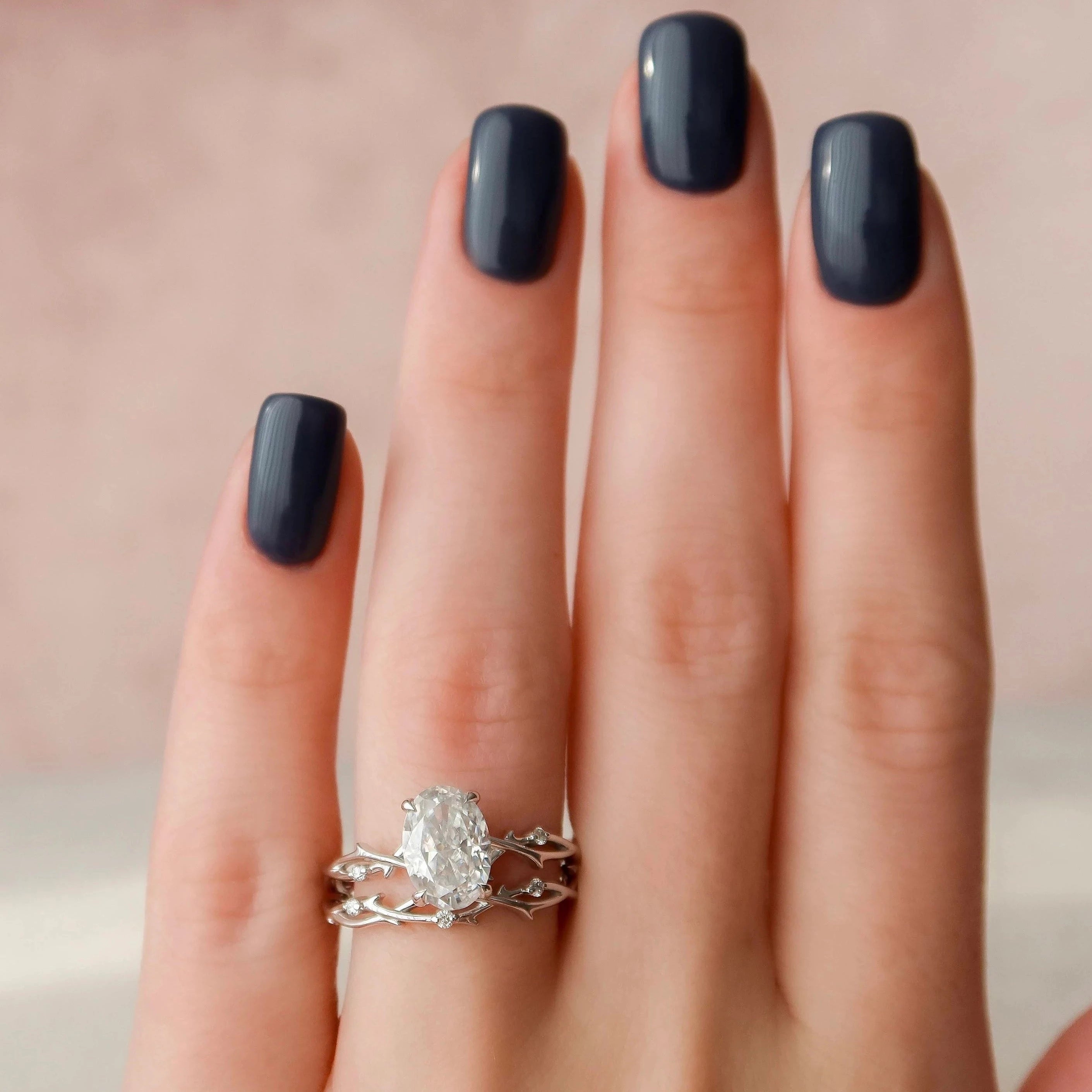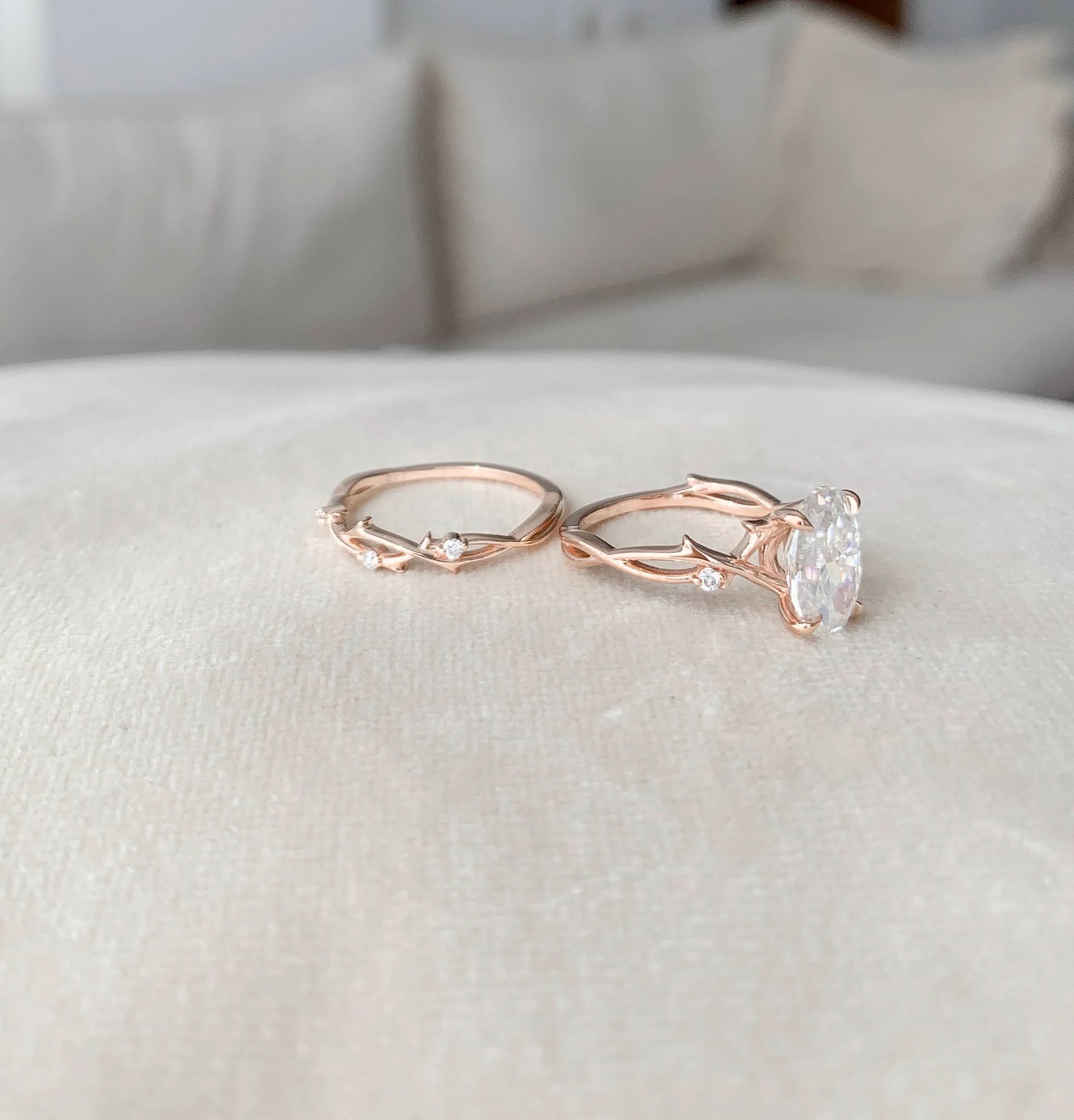 2.0CT Oval Cut Moissanite Twing Halo Bridal Engagement Ring Set
