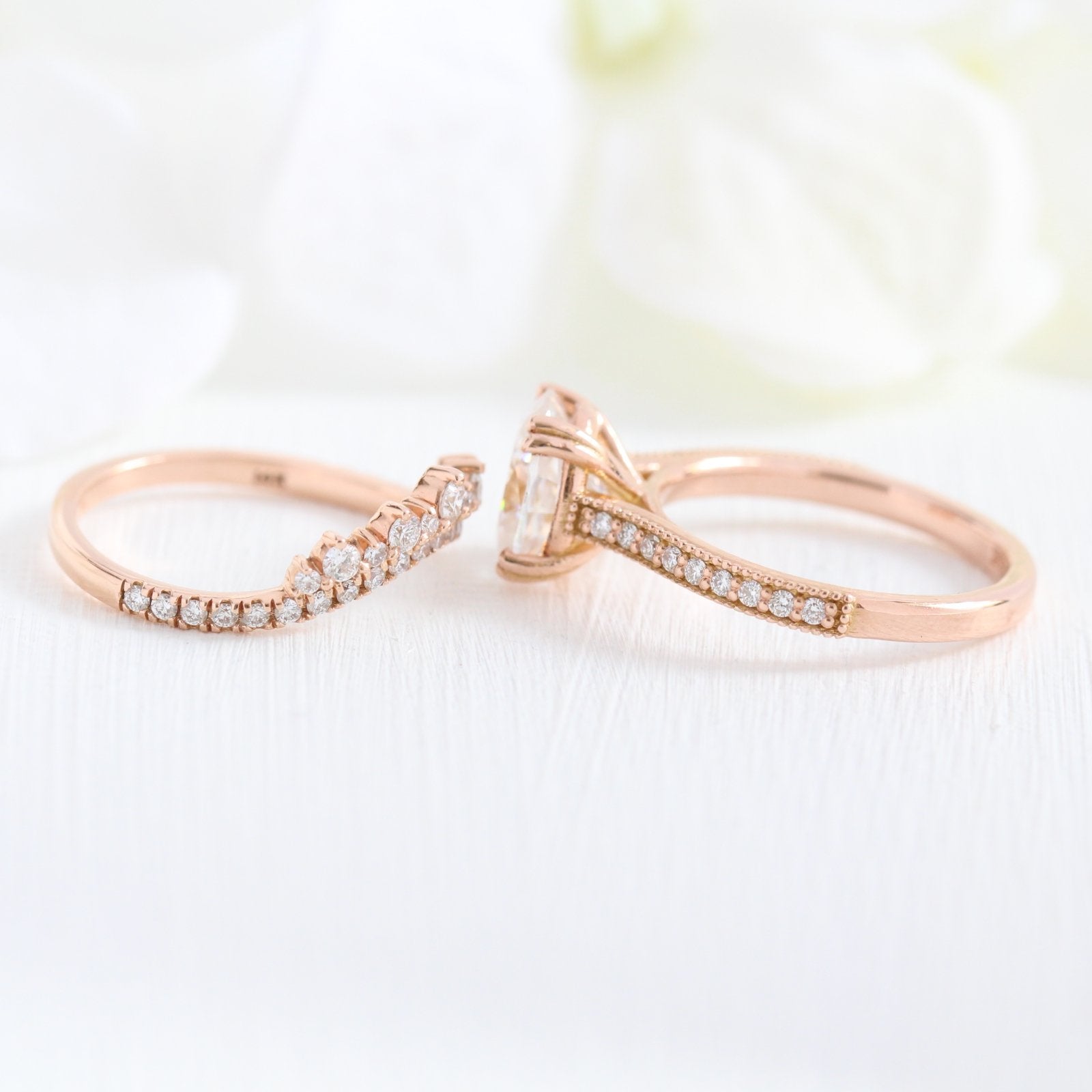 2.0CT Oval Solitaire Cut Moissanite Halo Bridal Engagement Ring Set