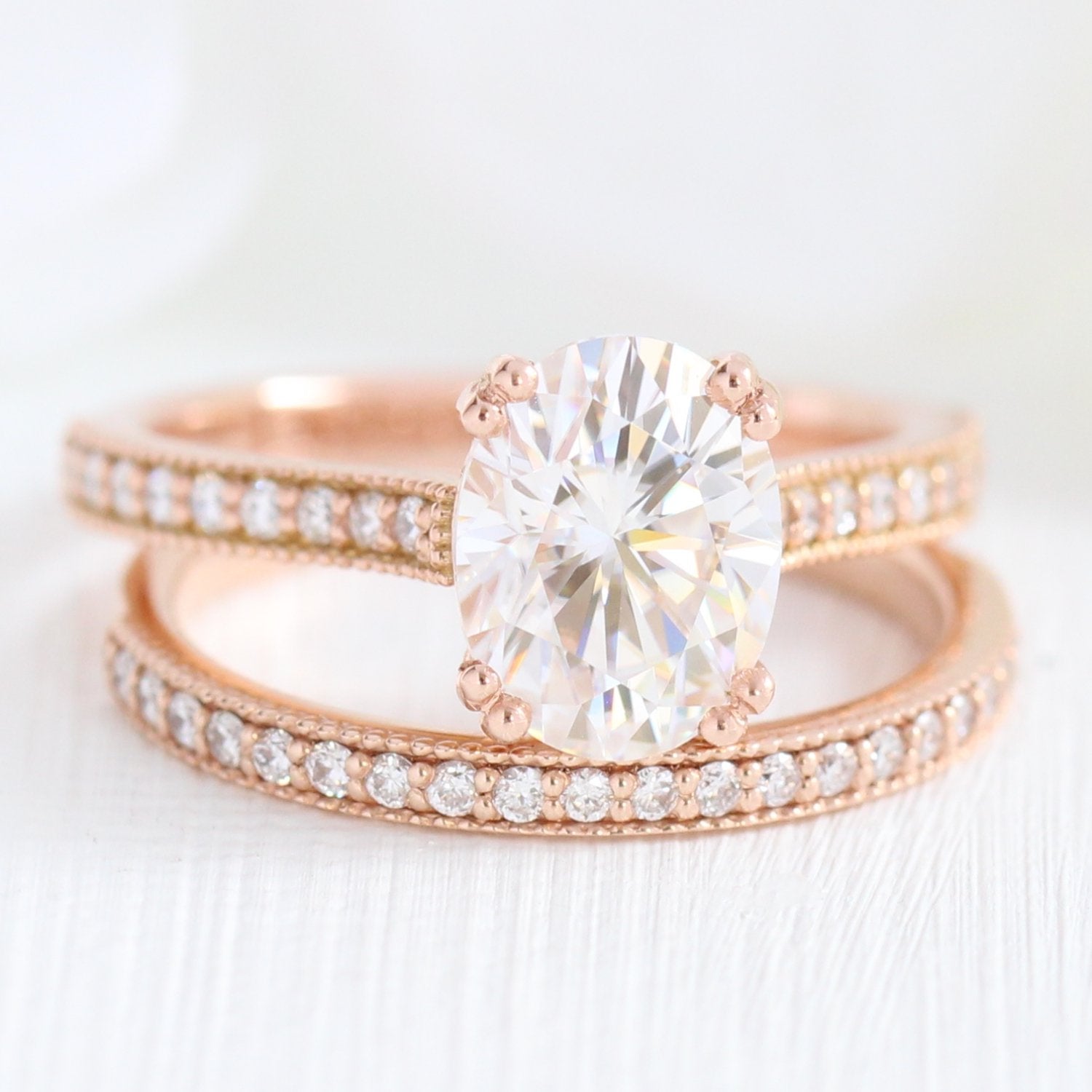 2.0CT Solitaire Oval Cut Moissanite Halo Bridal Engagement Ring Set