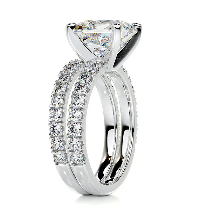 3.0CT Princess Cut Moissanite Diamond Pave Matching Bridal Wedding Ring Set