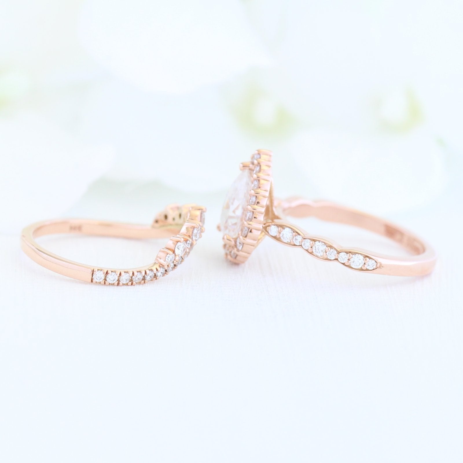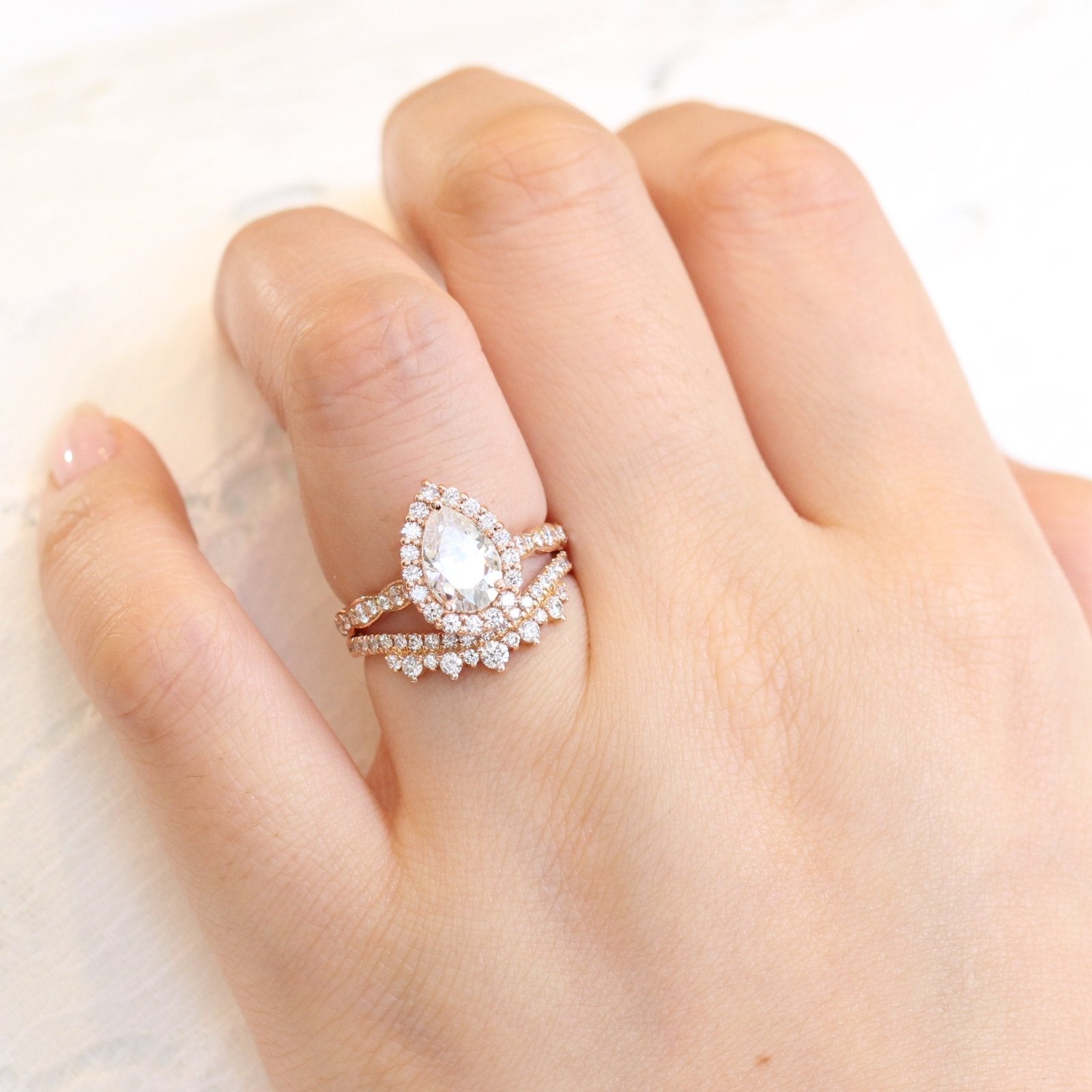 1.50CT Pear Cut Solitaire Moissanite Halo Bridal Engagement Ring Set