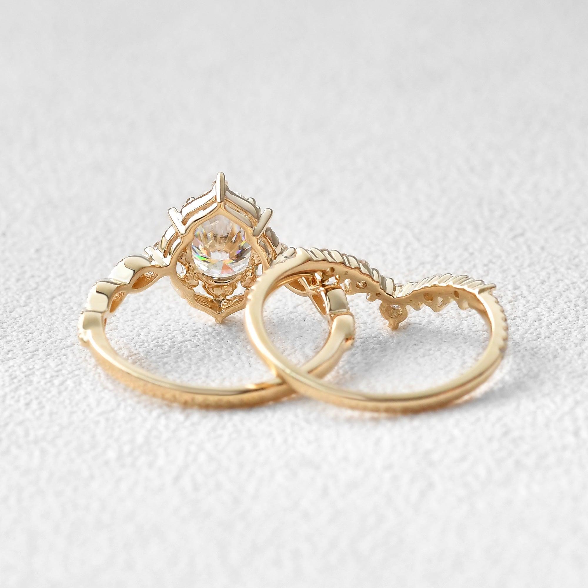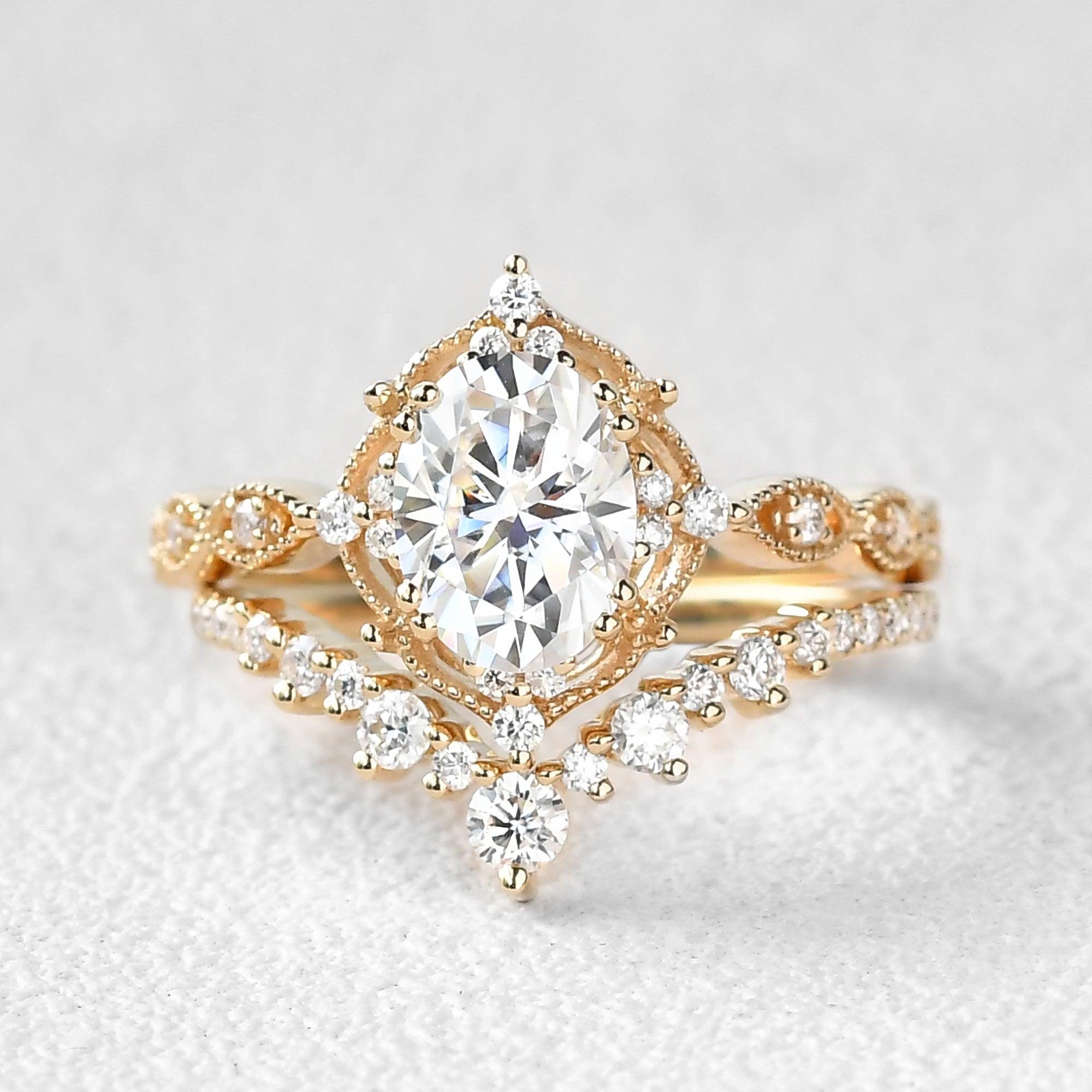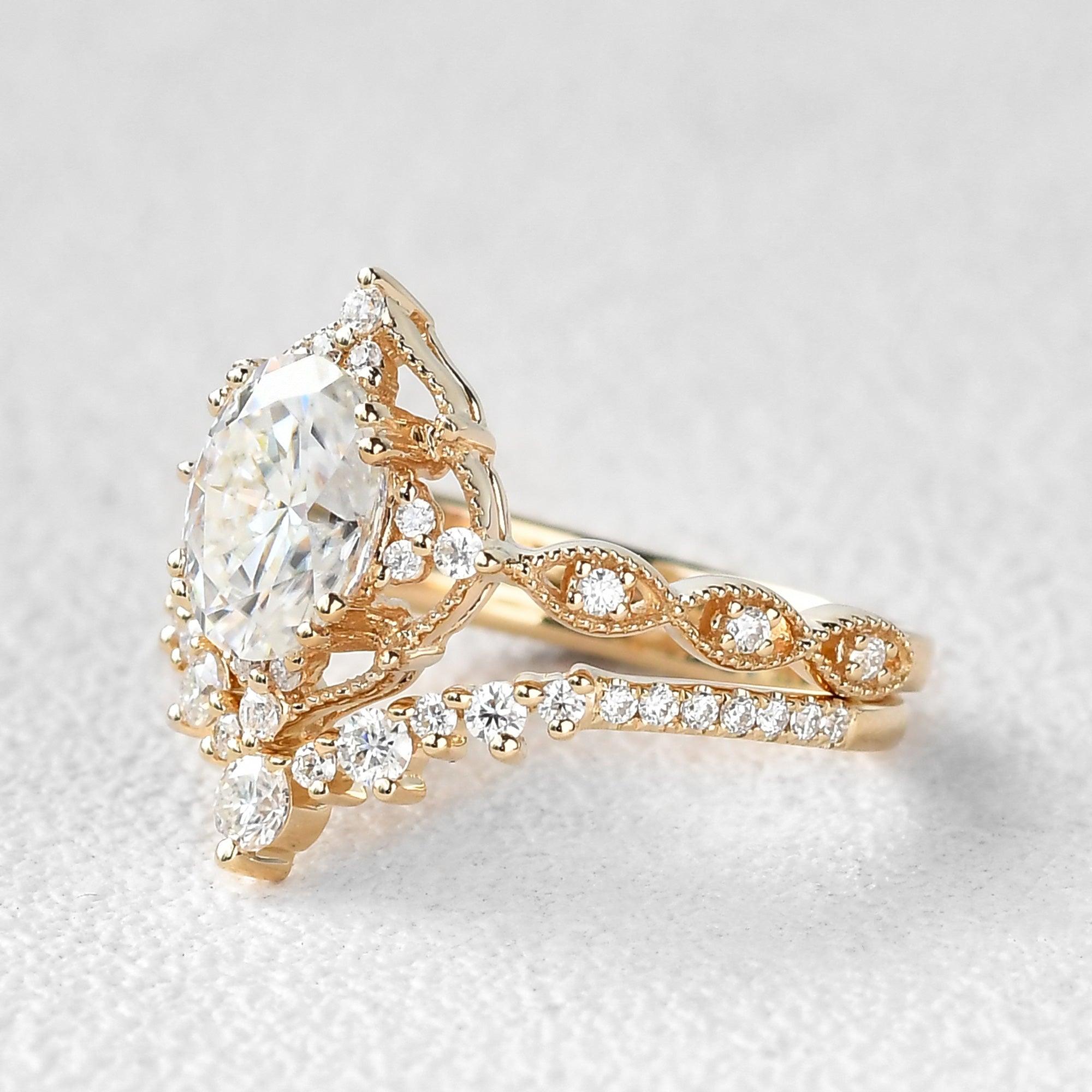 1.50ct Oval Cut Vintage Signature Bridal Ring Sets in 18K Solid Gold