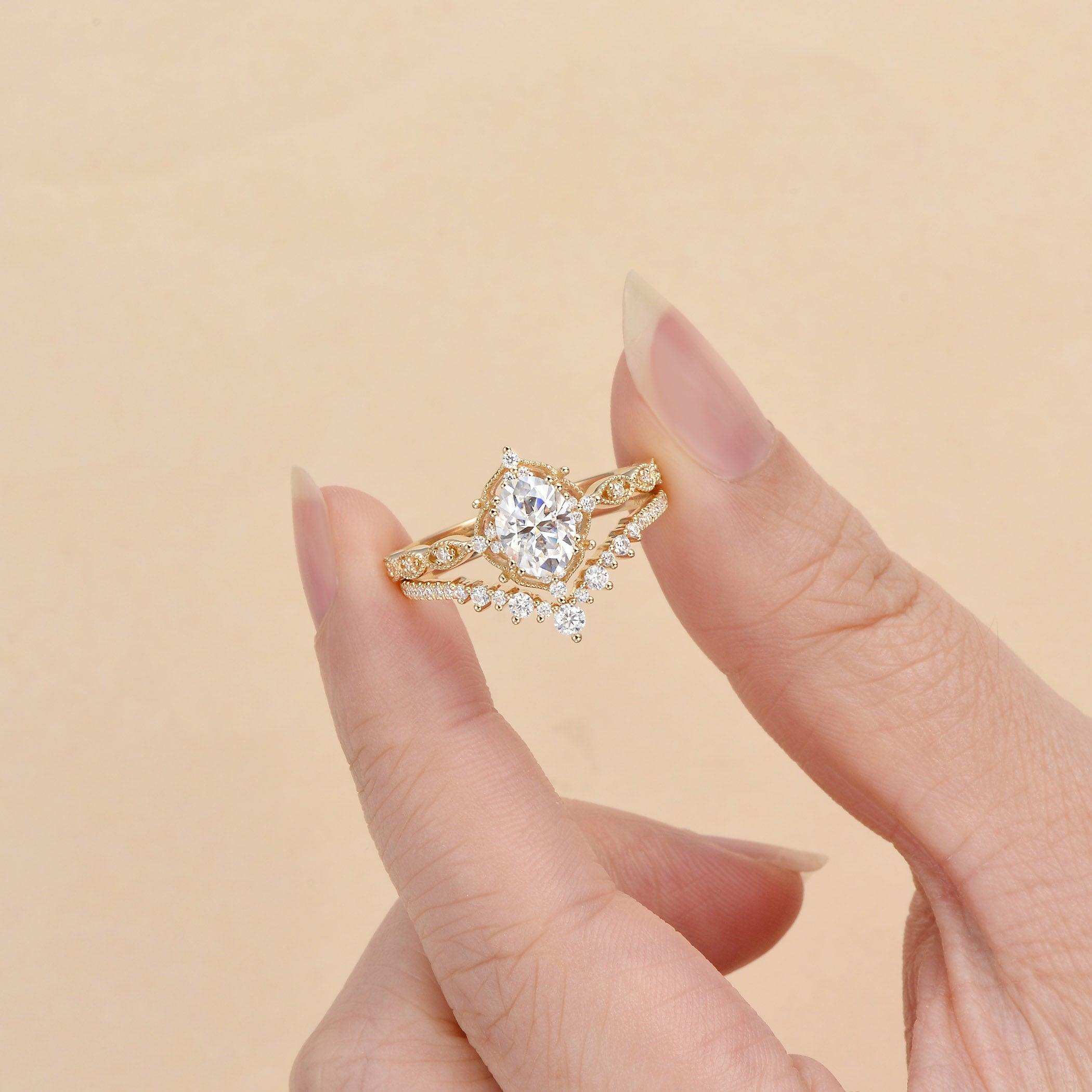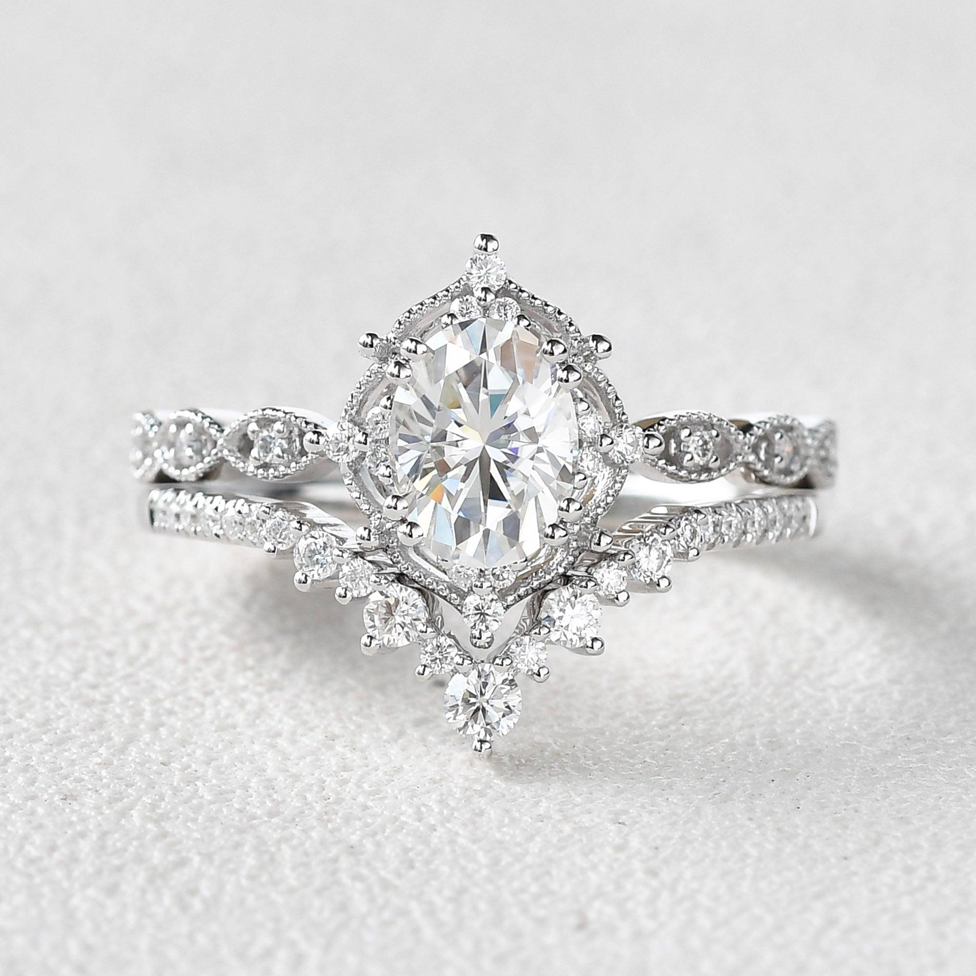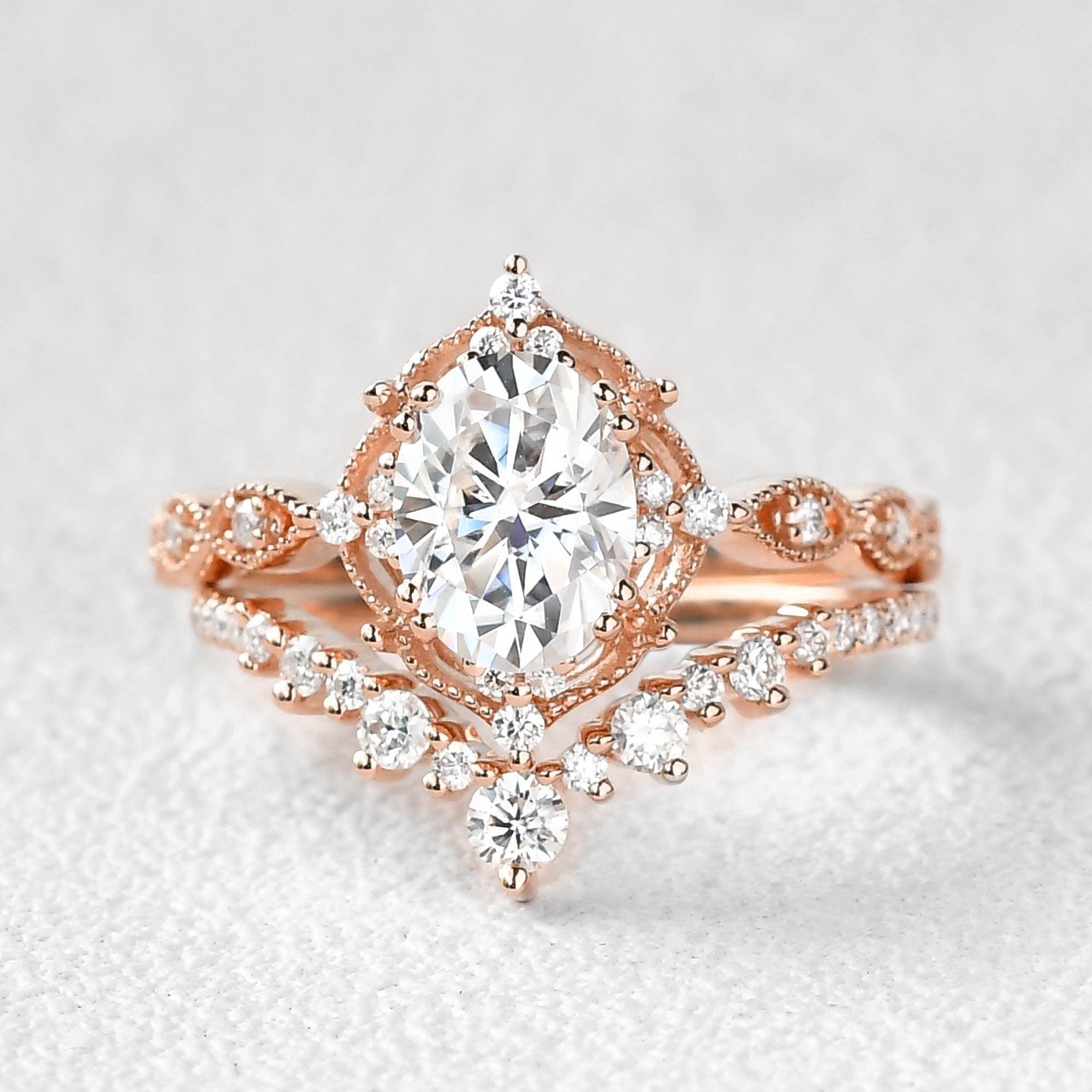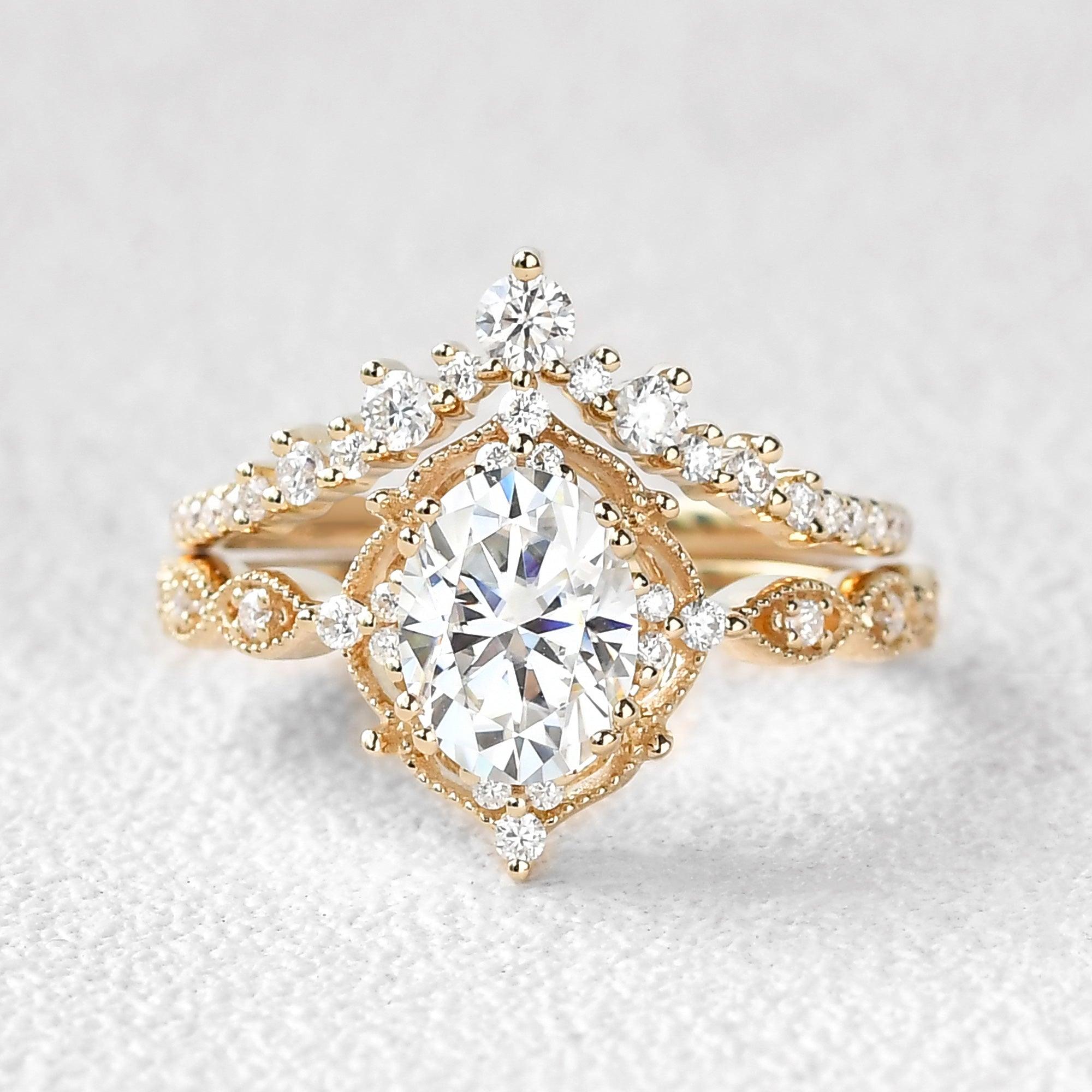 1.50ct Oval Cut Vintage Signature Bridal Ring Sets in 18K Solid Gold