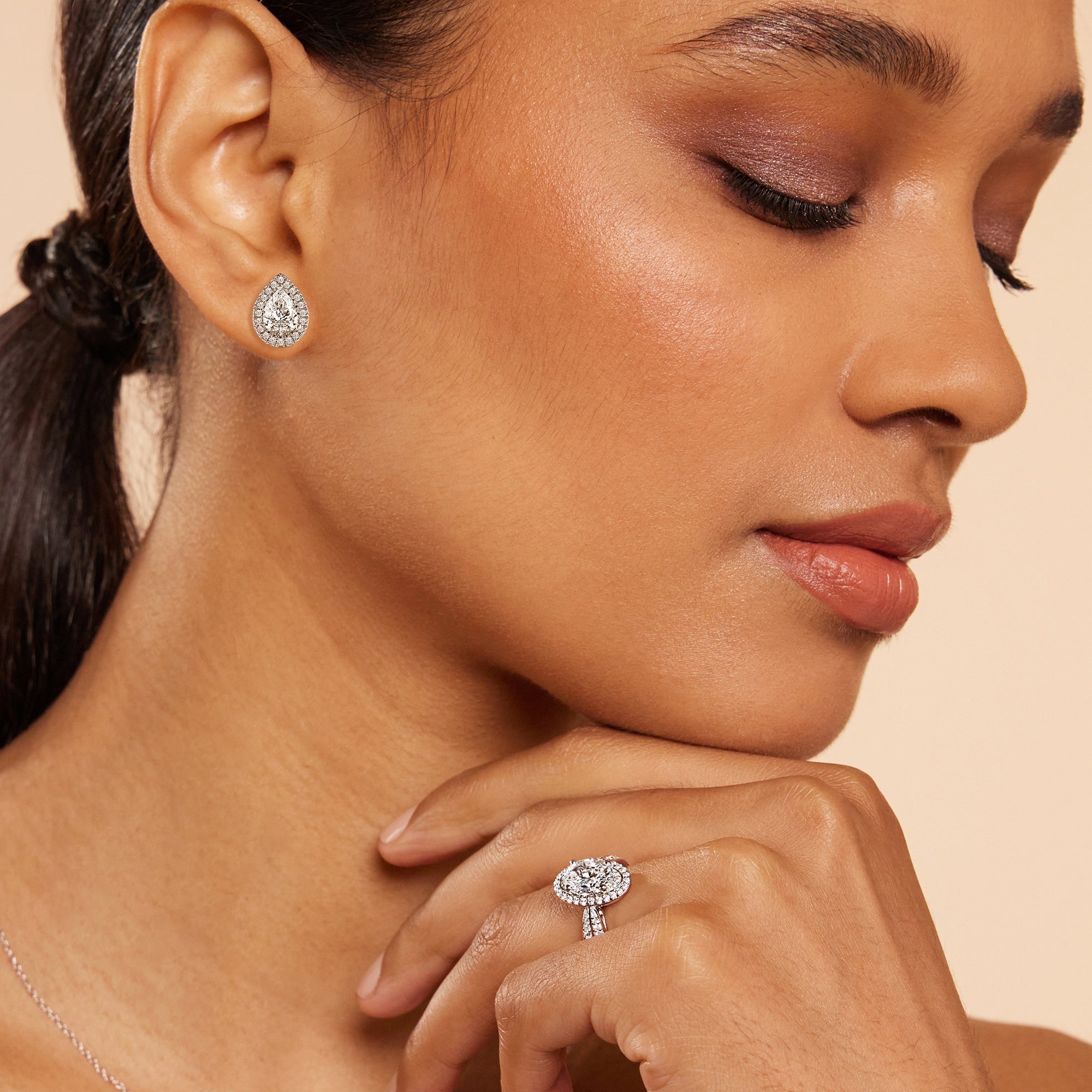 Pear Cut Moissanite Diamond Halo Stud Earrings for Women
