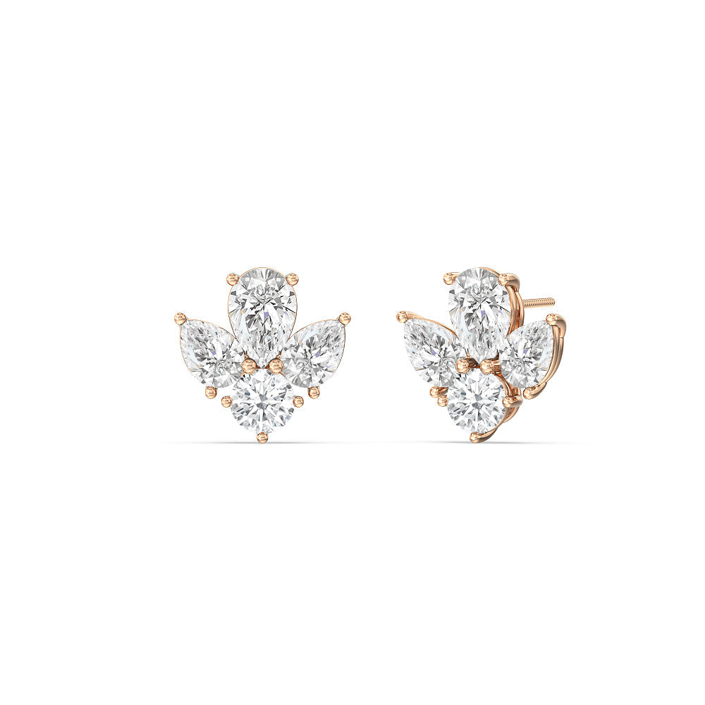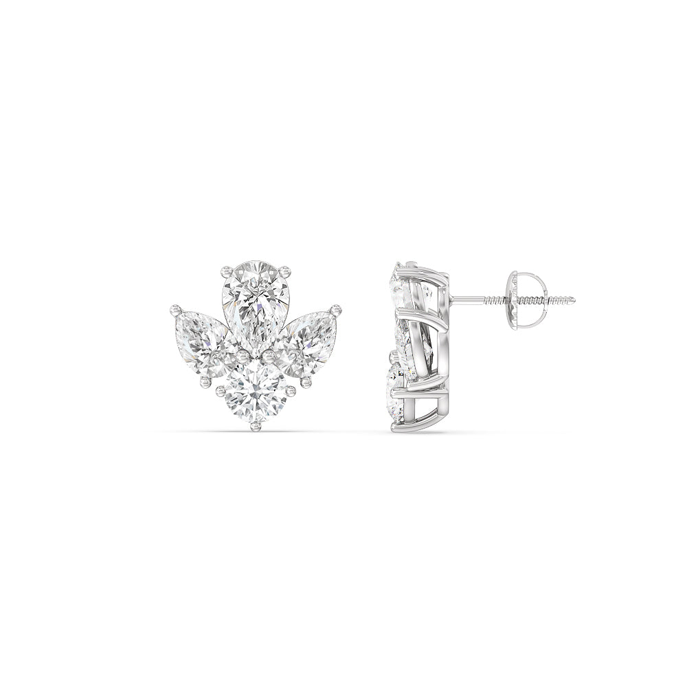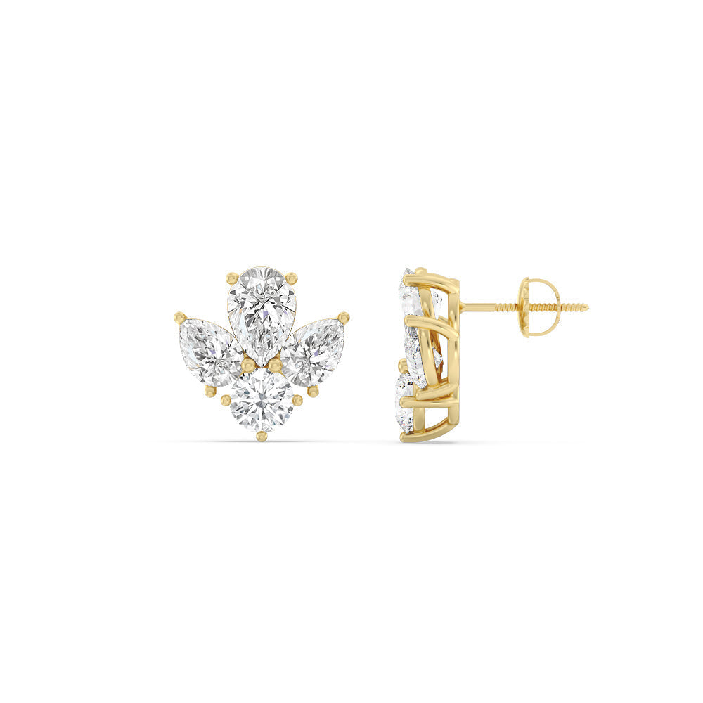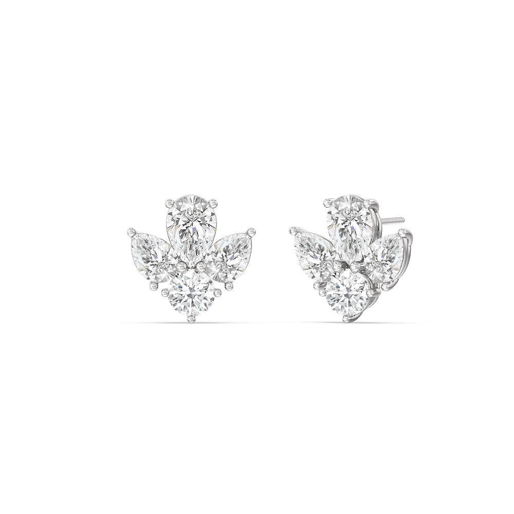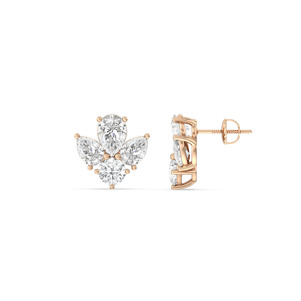 Pear & Round Moissanite Diamond Cluster Stud Earrings for Her