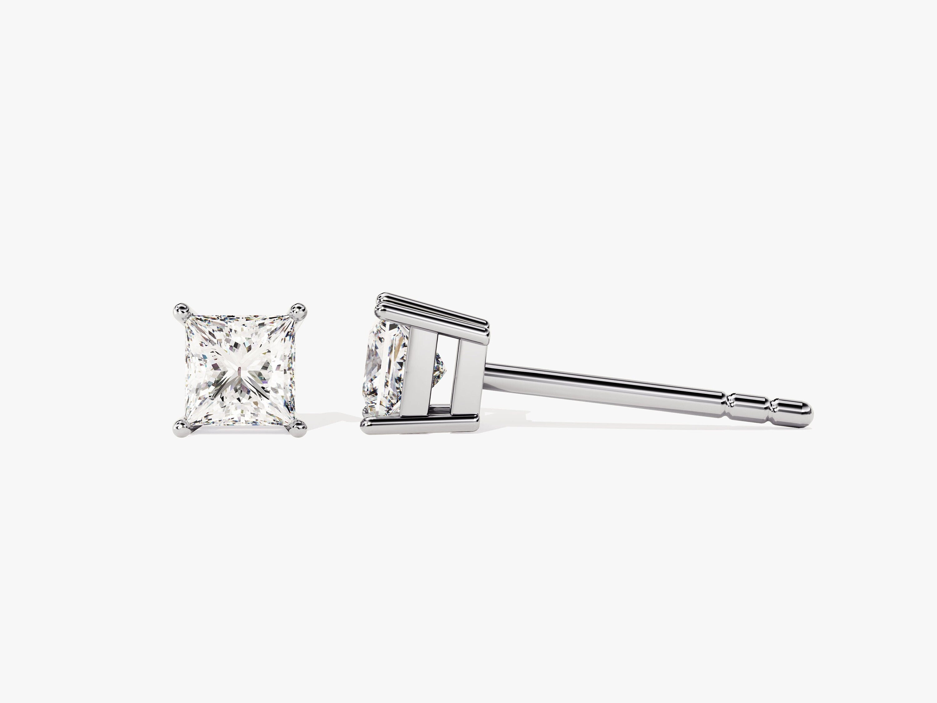 Princess Cut Moissanite Diamond Stud Earrings for Women in Yellow Gold