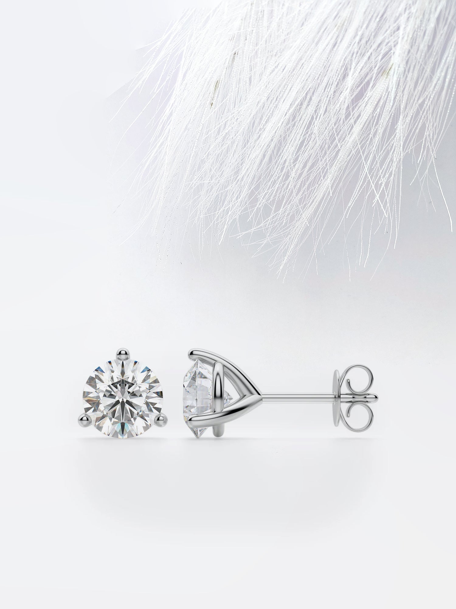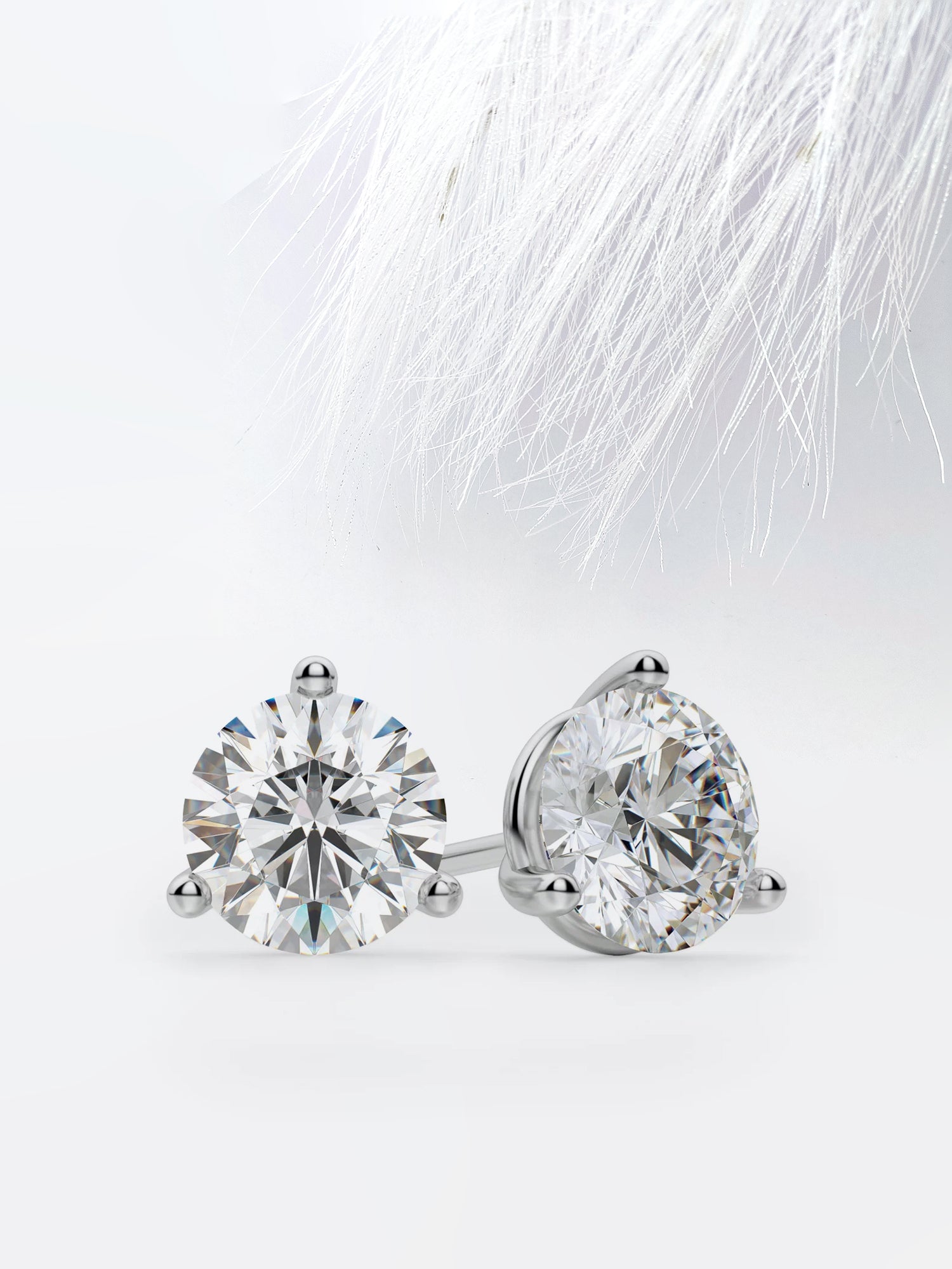 Round Cut Moissanite Diamond Stud Earrings in 14K White Gold
