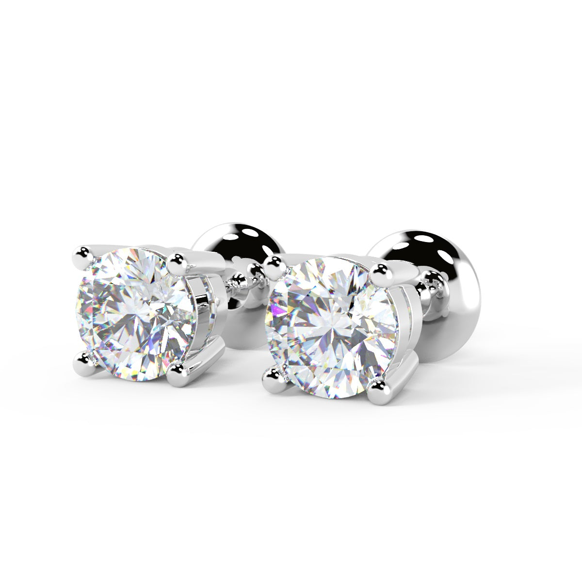Round Cut Moissanite Diamond Stud Earrings in White Gold
