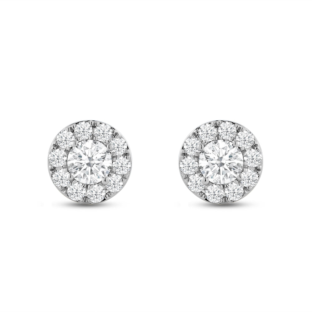 Round Cut Moissanite Halo Diamond Stud Earrings for Women
