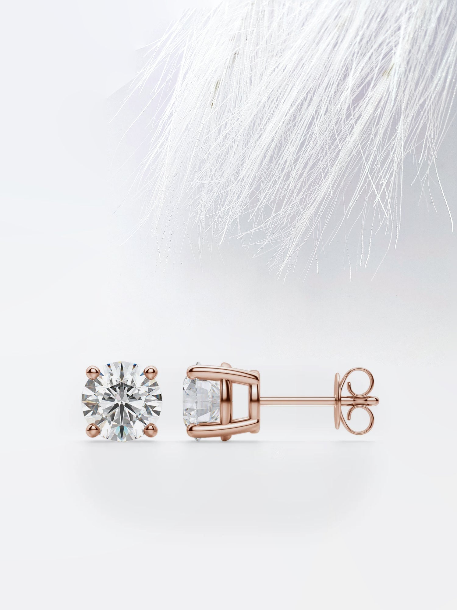 Round Cut Moissanite Stud Diamond Earrings in Rose Gold