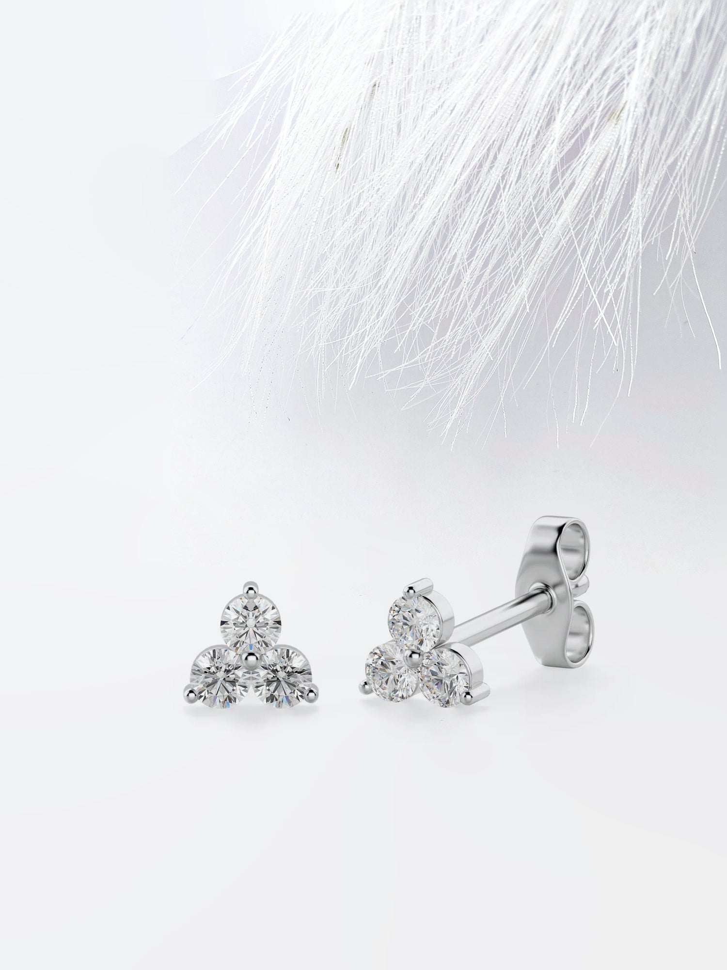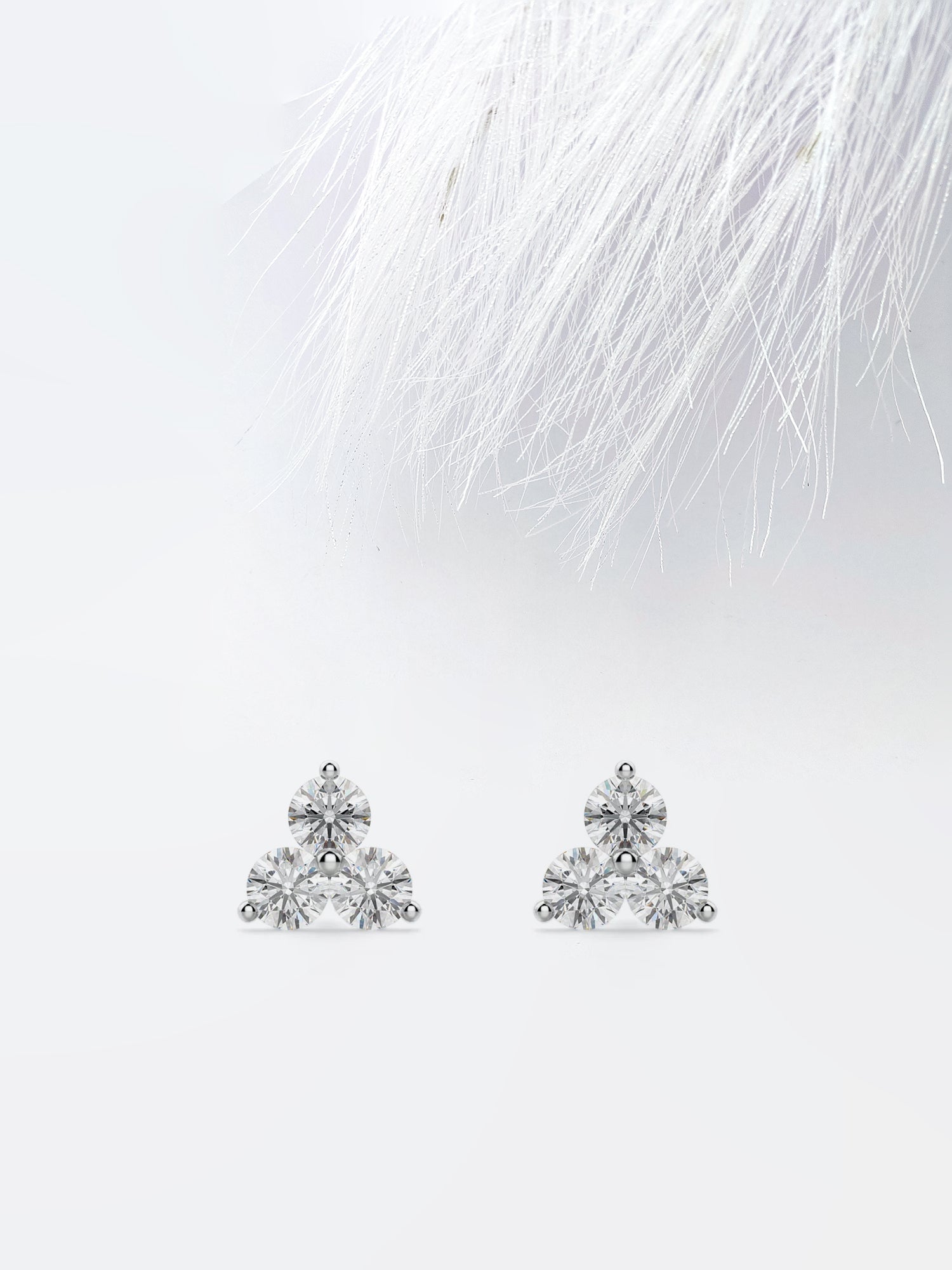 Round Cut Moissanite Three Stone Diamond Earrings in 18K Gold