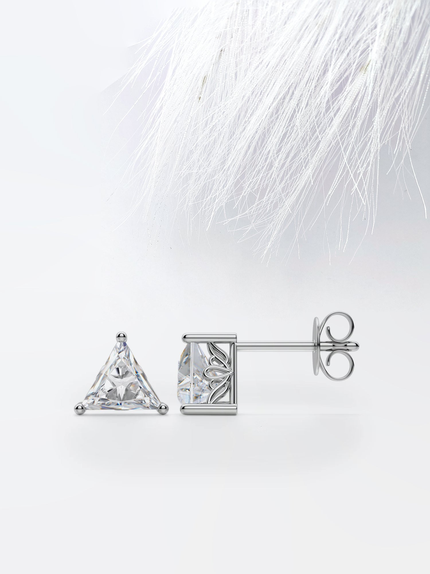 ✥ Add a touch of modern elegance to your jewelry collection with these Triangle Cut Moissanite Diamond Stud Earrings. Featuring a unique triangular shape, these earrings are a contemporary twist on the classic stud design. Each earring is adorned with a dazzling triangle-cut moissanite diamond that sparkles brilliantly in the light. The geometric shape of the diamonds adds a sophisticated edge to these earrings, making them a stylish choice for any occasion. Whether you're dressing up for a night out or adding a touch of glamour to your everyday look, these earrings are sure to turn heads. Crafted with care and precision, these earrings are a timeless addition to any jewelry collection. Treat yourself or surprise a loved one with these stunning Triangle Cut Moissanite Diamond Stud Earrings.