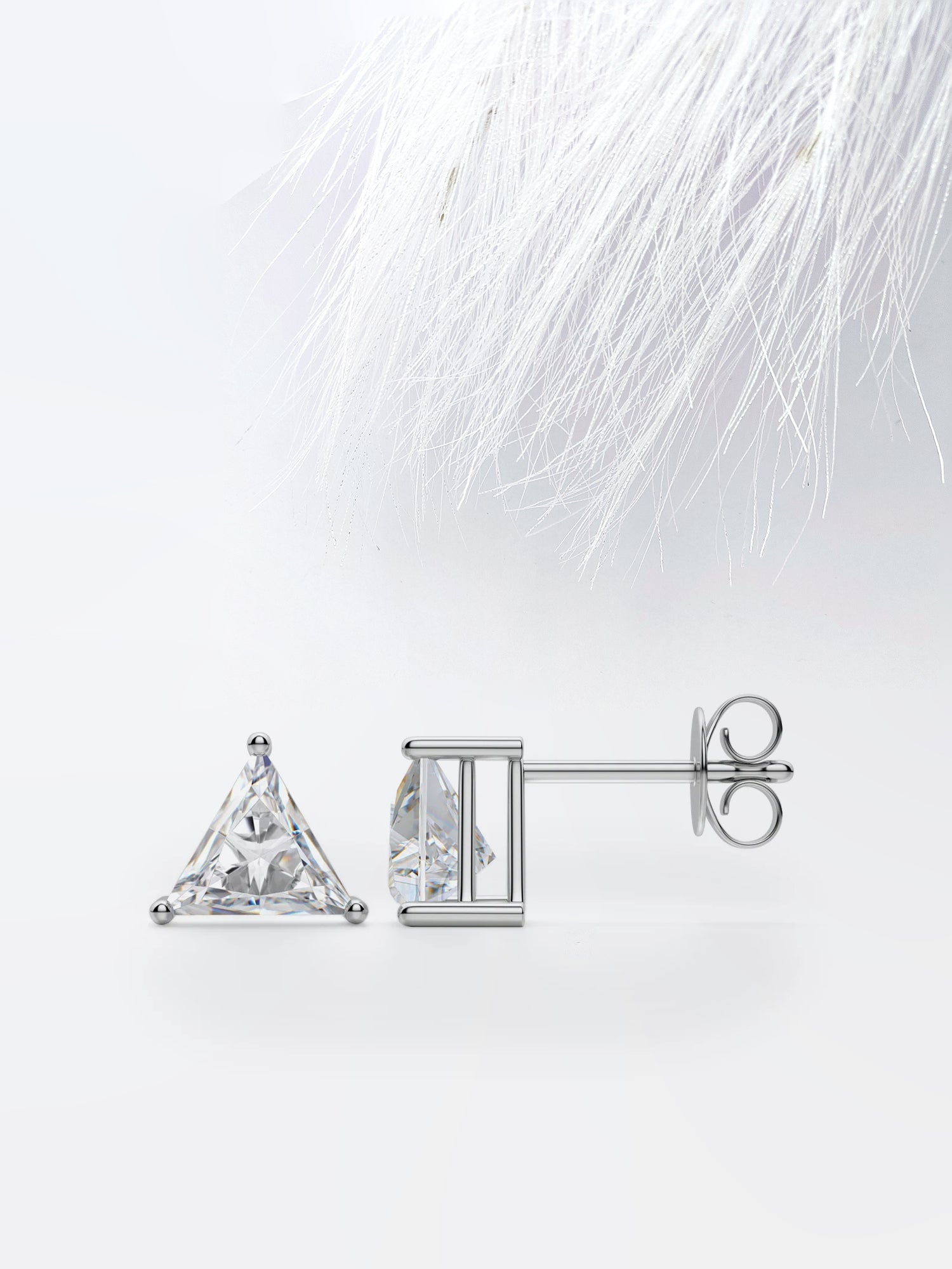 Triangle Cut Moissanite Diamond Studs Earrings in 10K White Gold