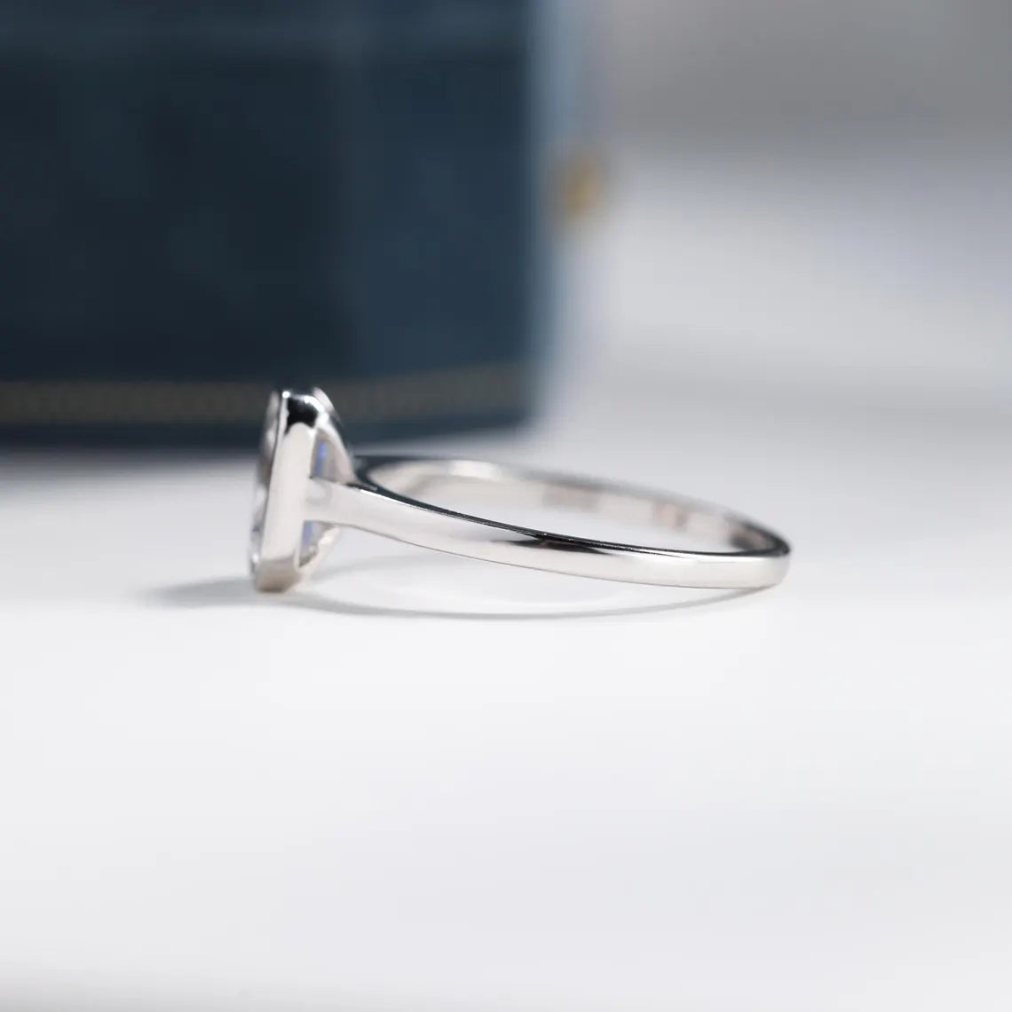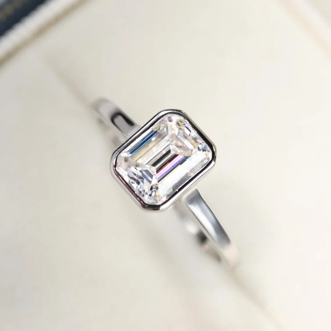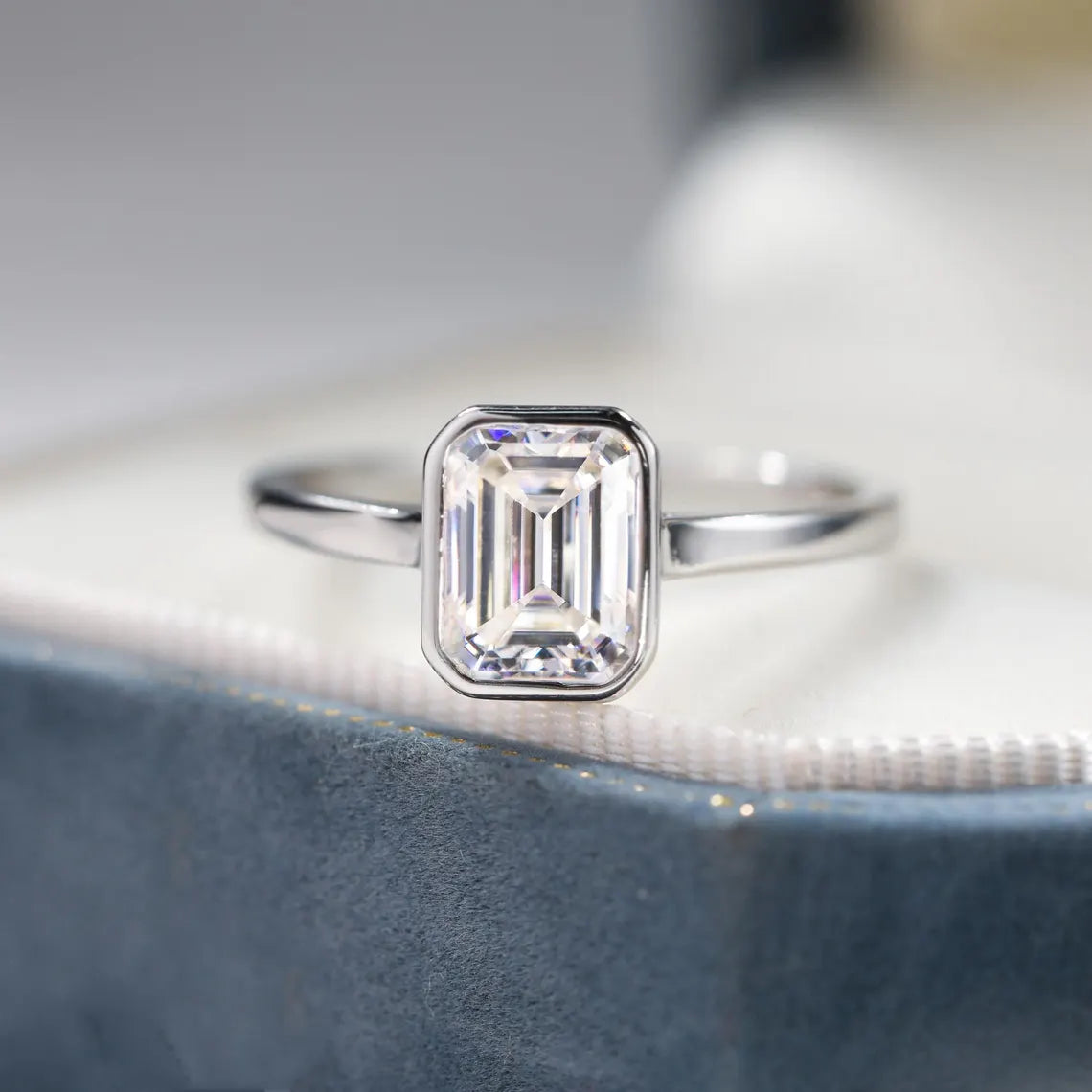 1.0CT Emerald Cut Bezel Solitaire Moissanite Engagement Ring