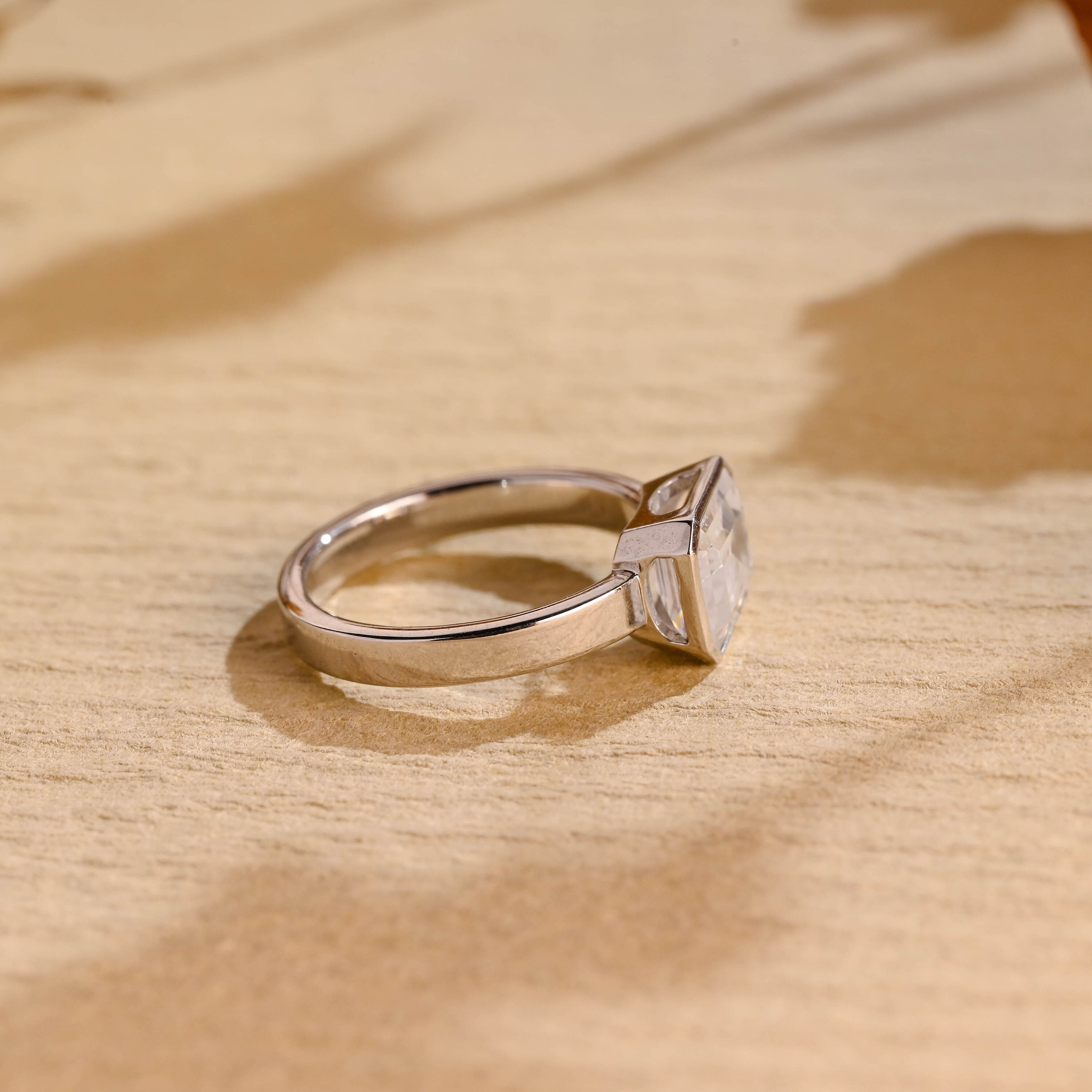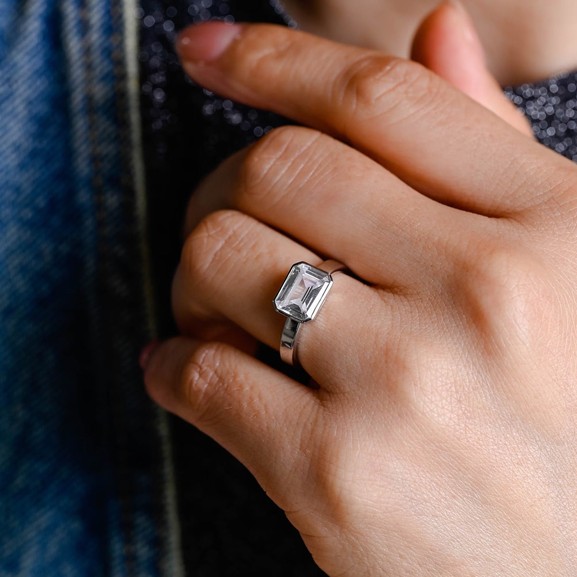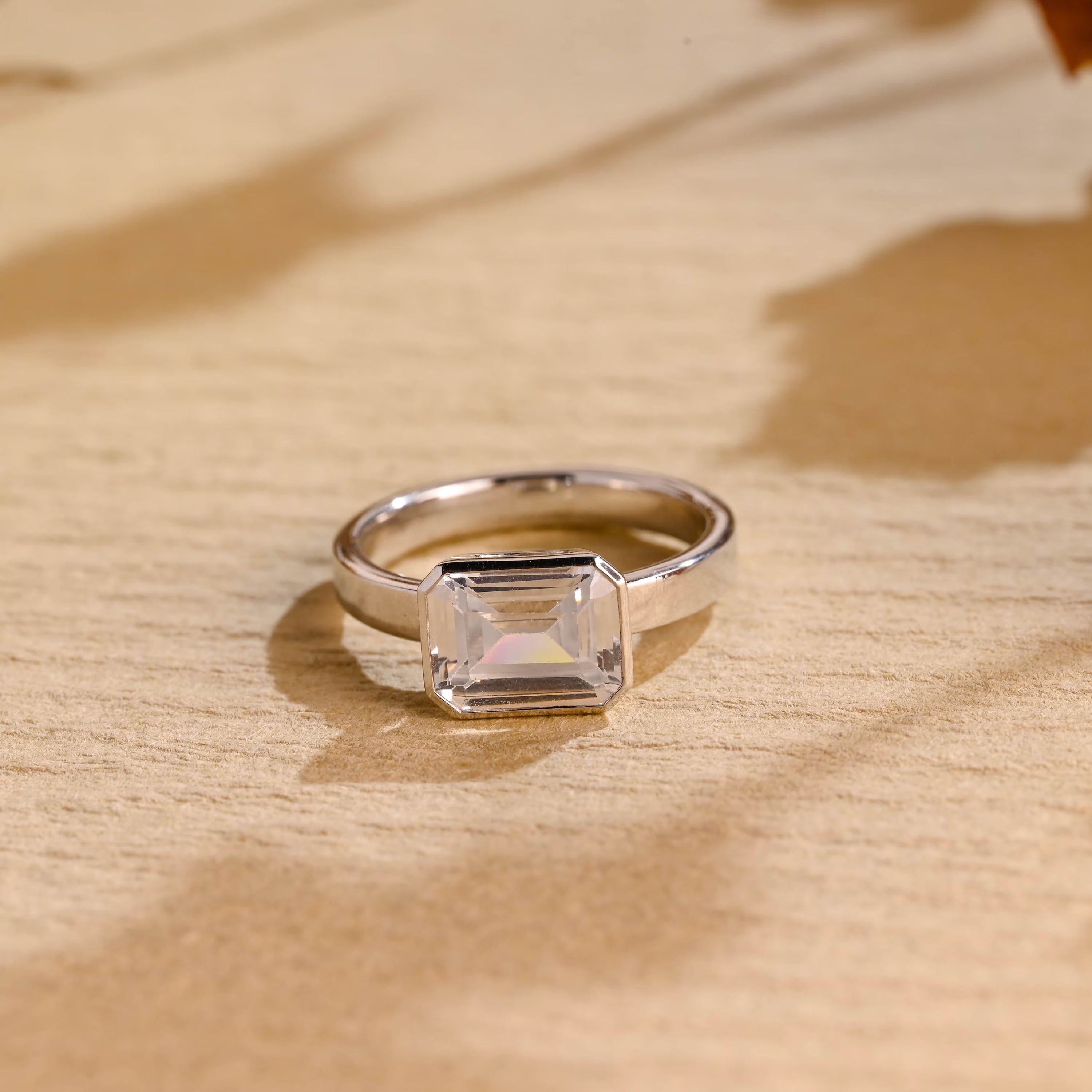 1.0CT Emerald Cut East West Solitaire Moissanite Engagement Ring